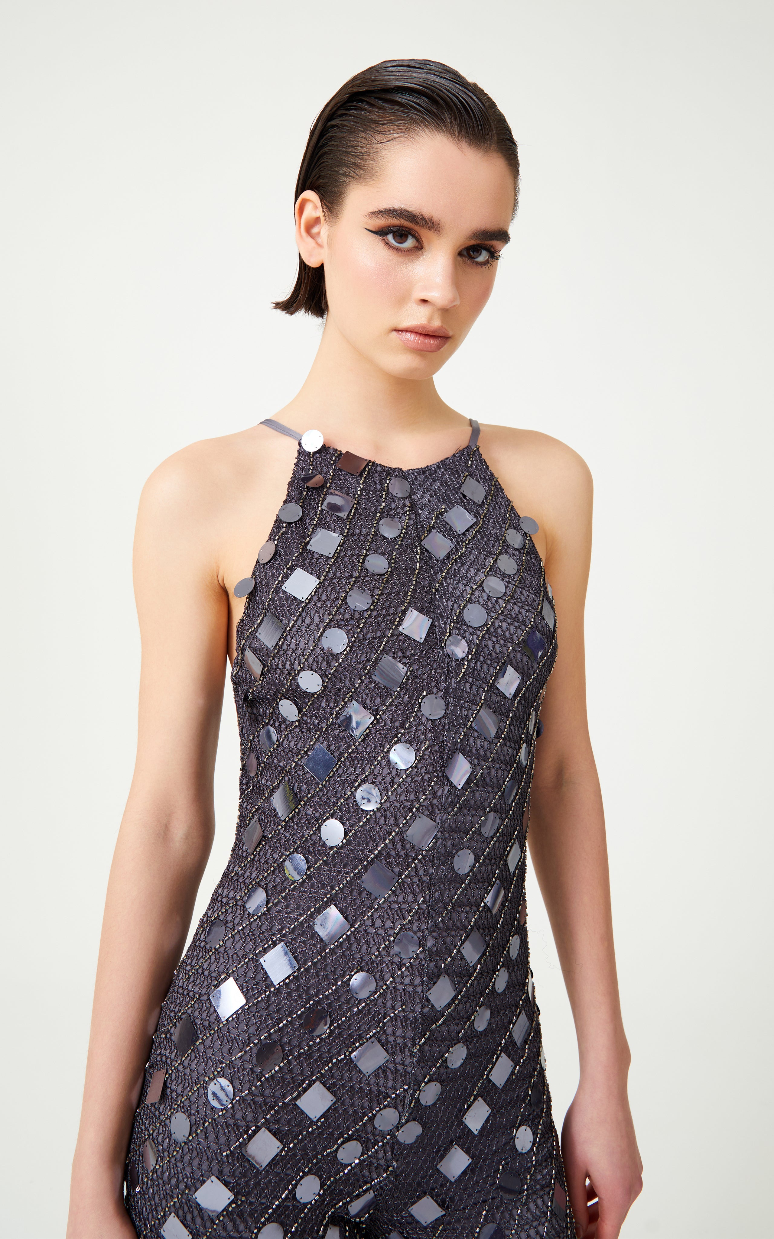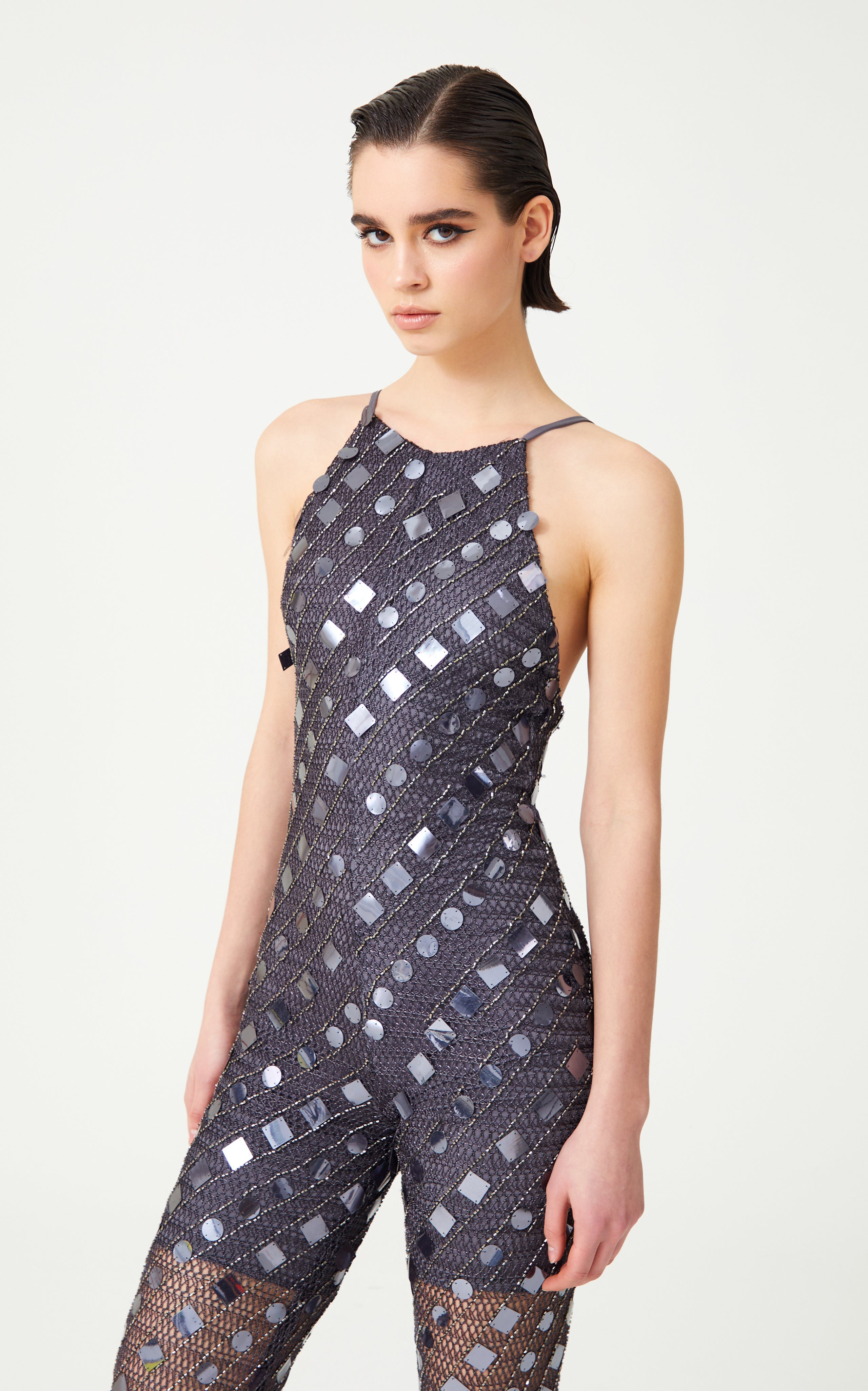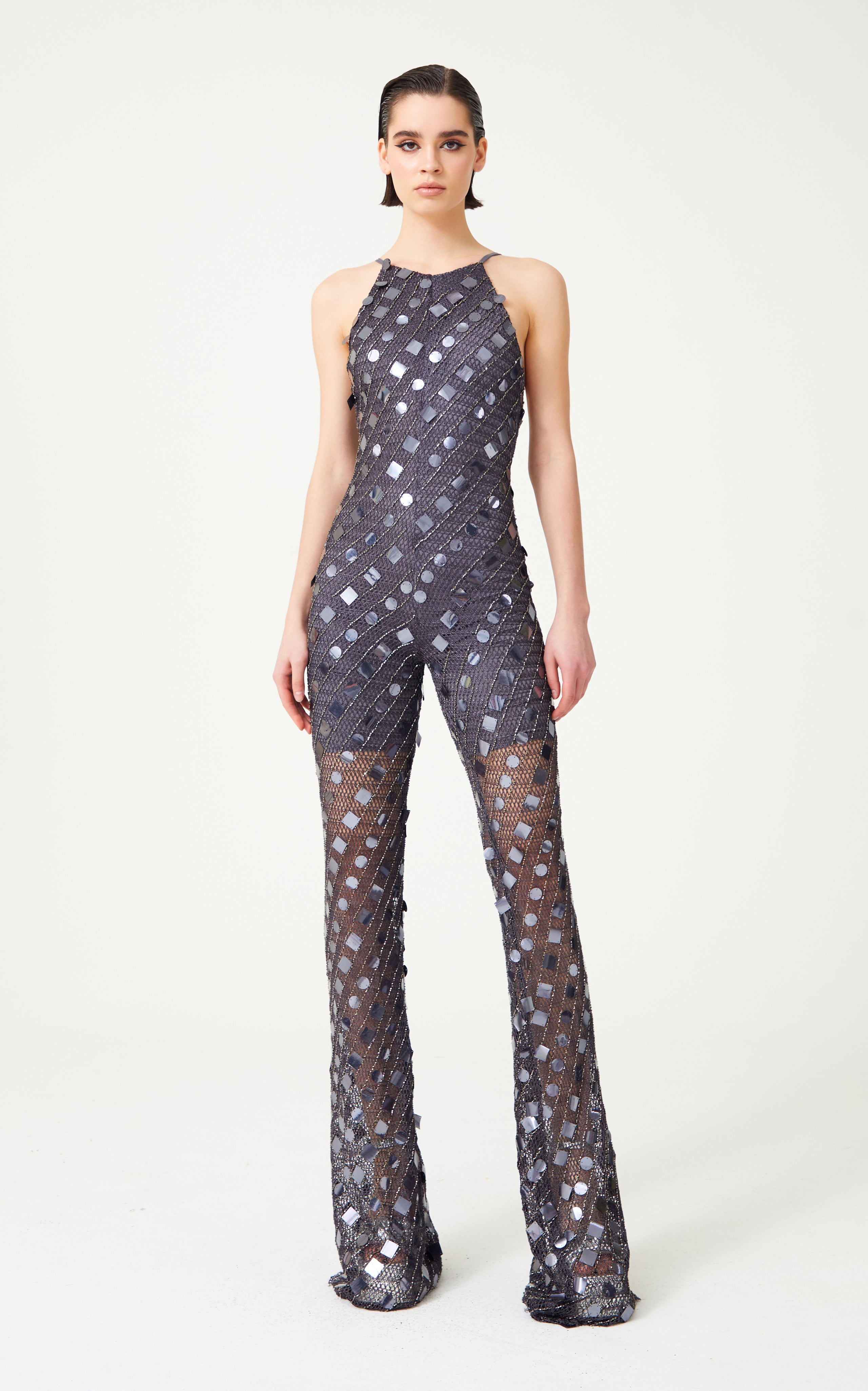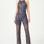 Anthracite Handmade Knitted Sequin Embroidered Halter Neck Jumpsuit