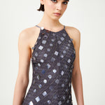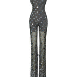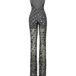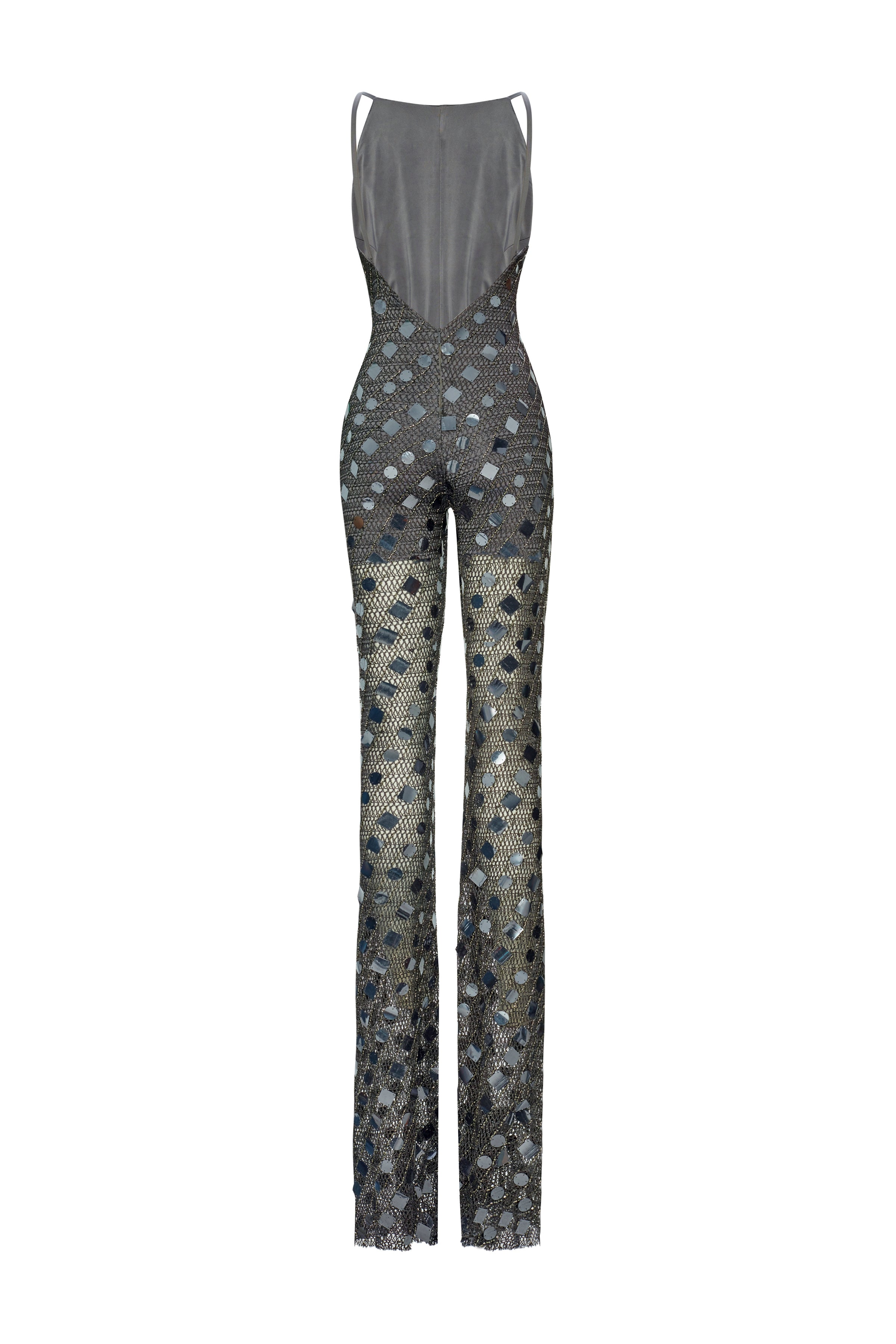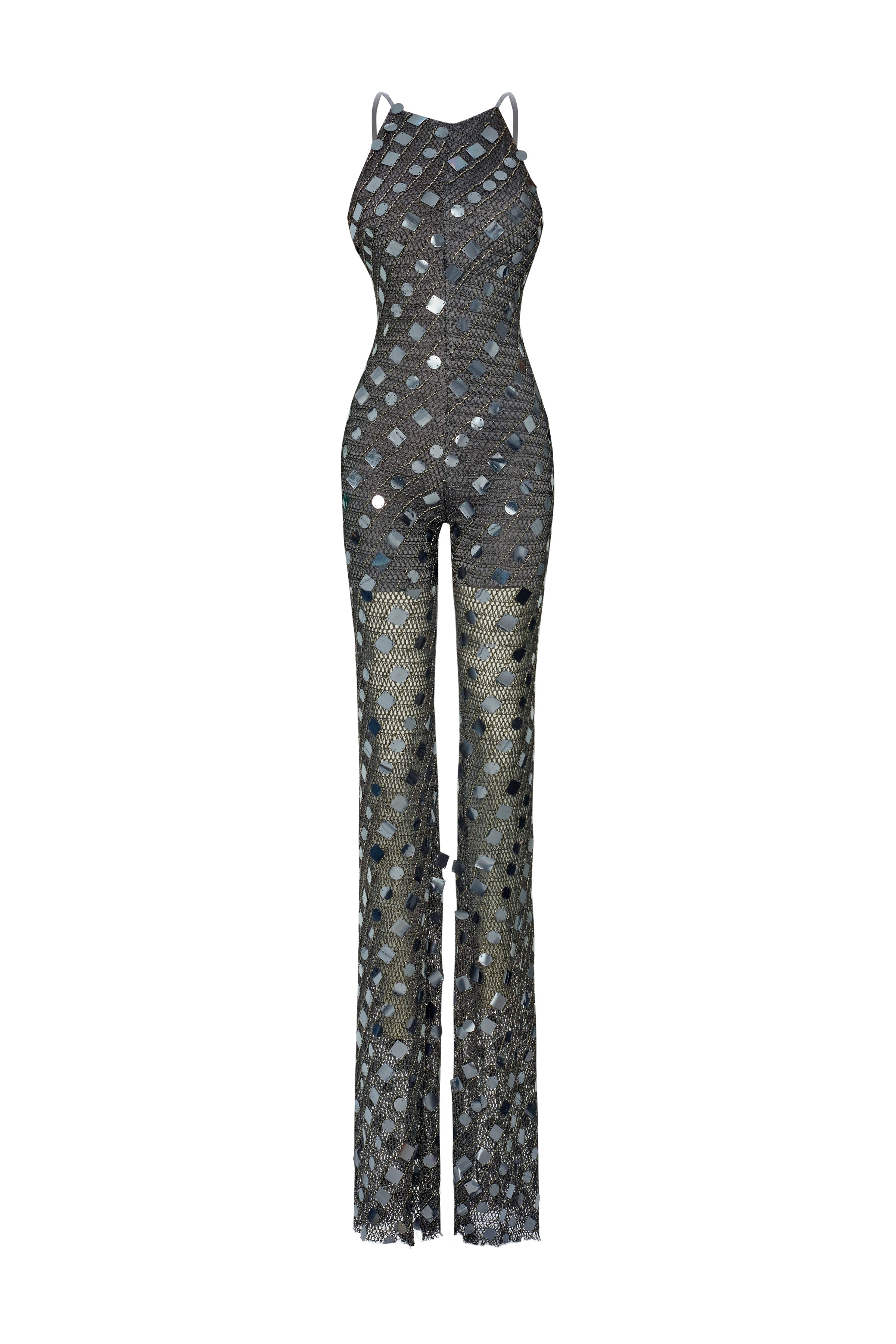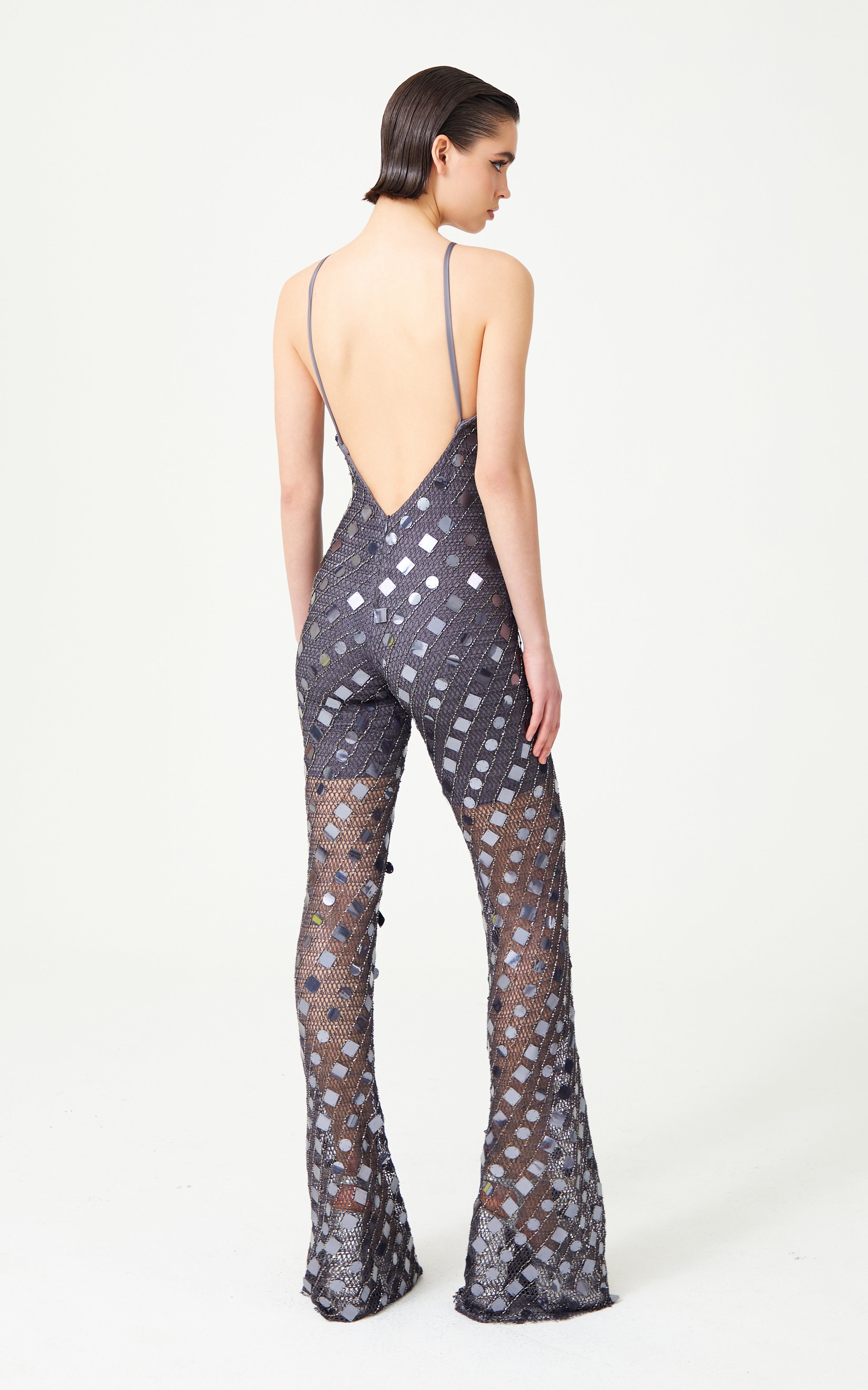 Anthracite Handmade Knitted Sequin Embroidered Halter Neck Jumpsuit