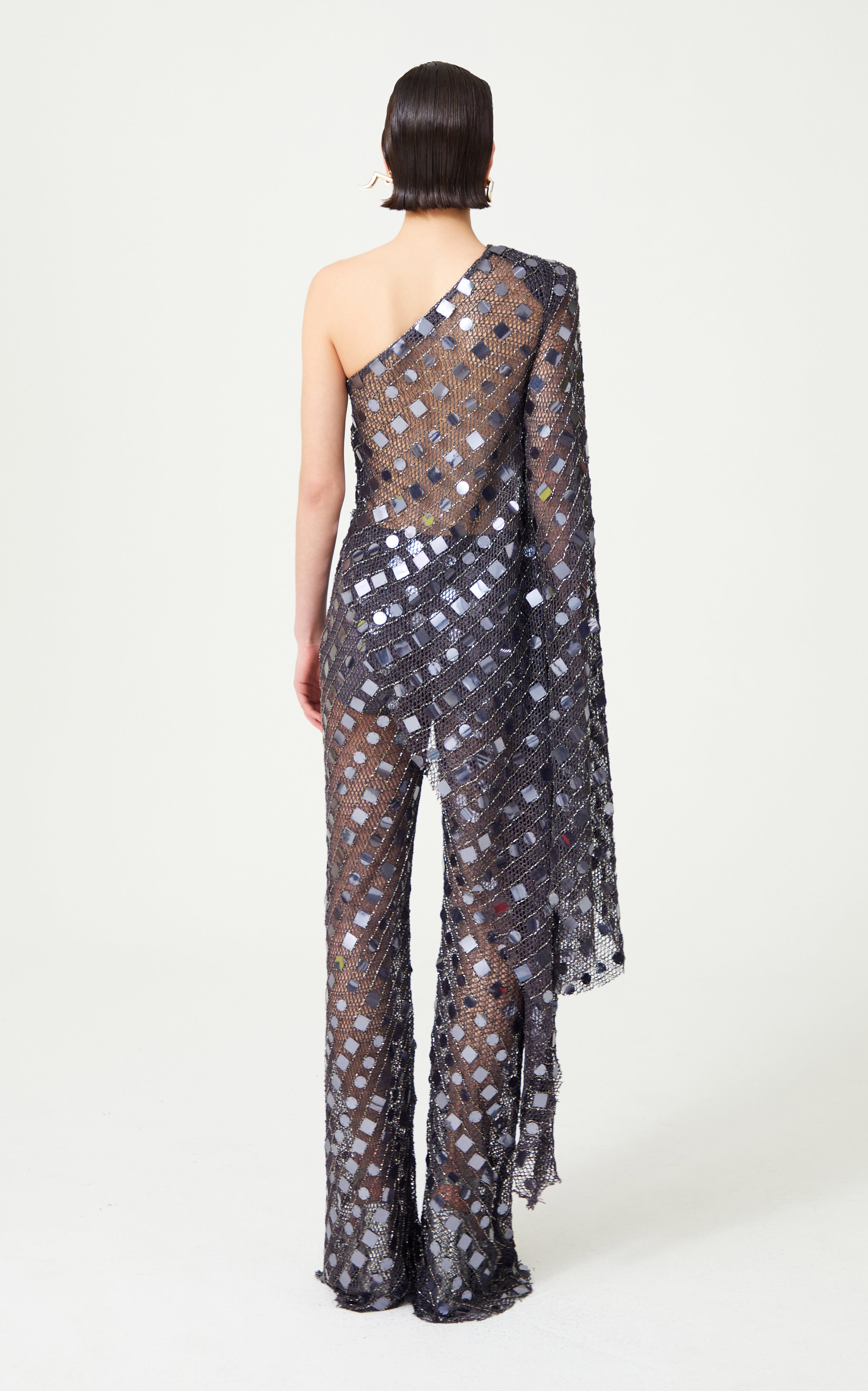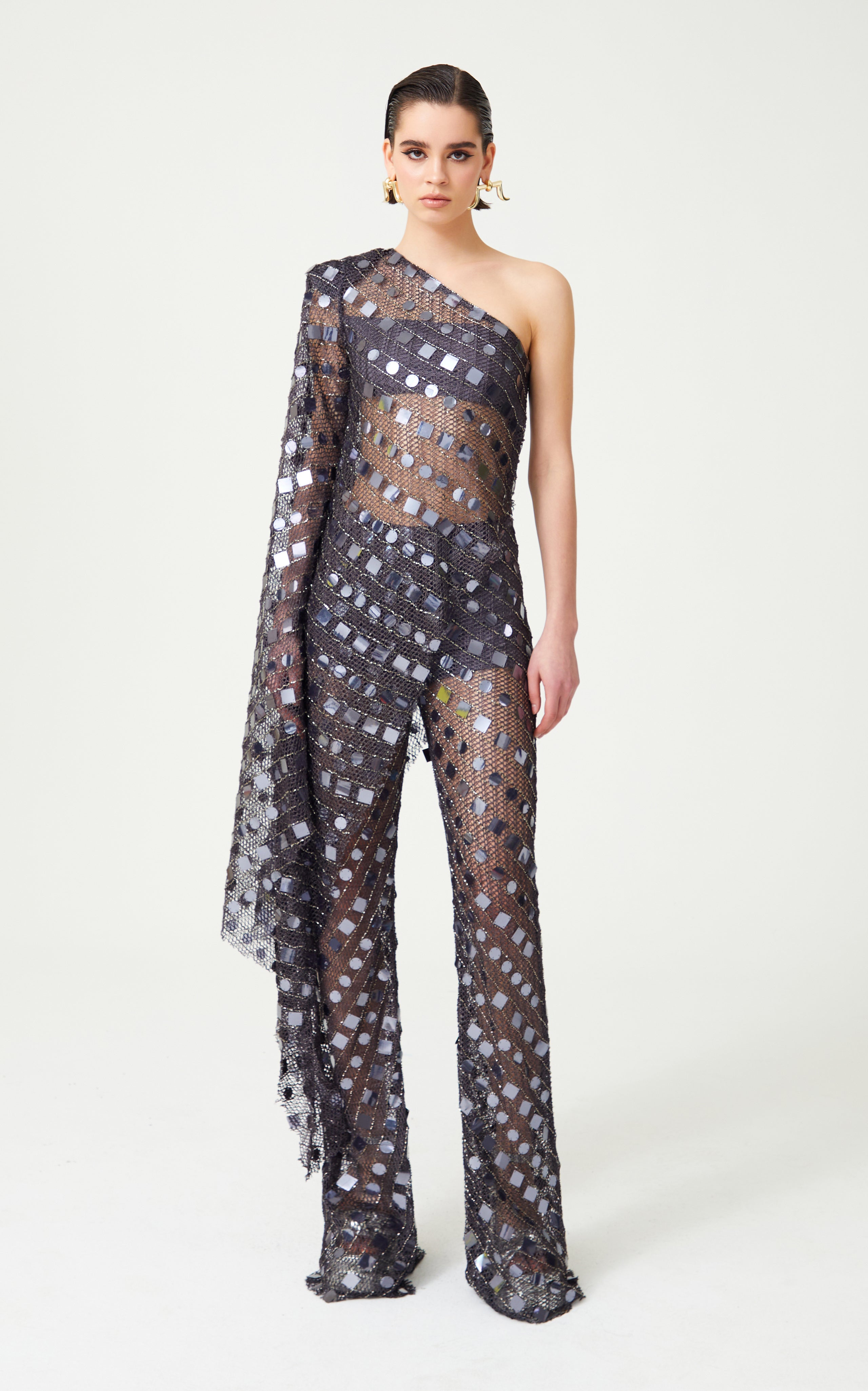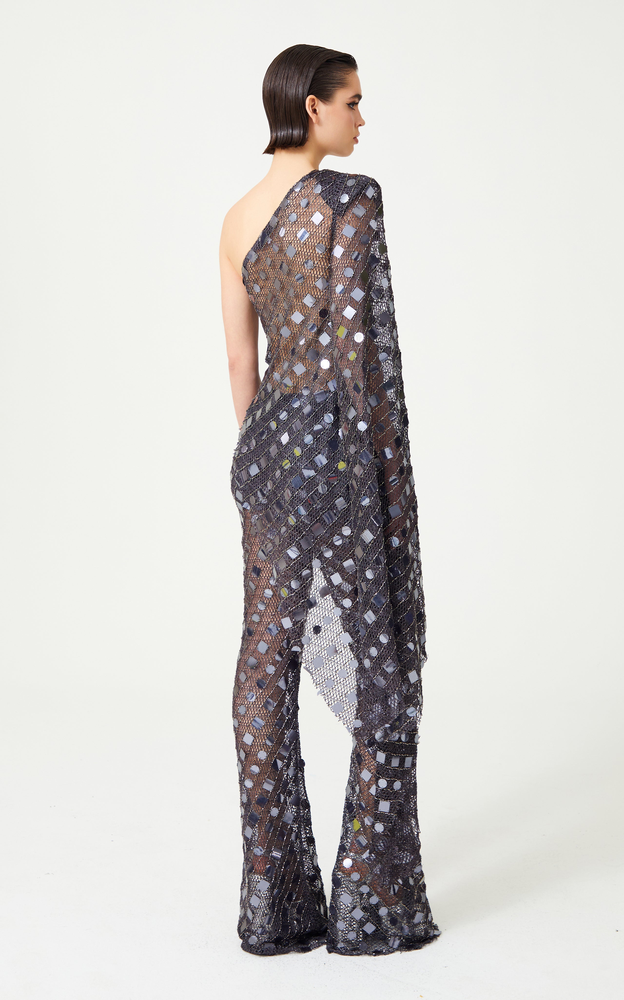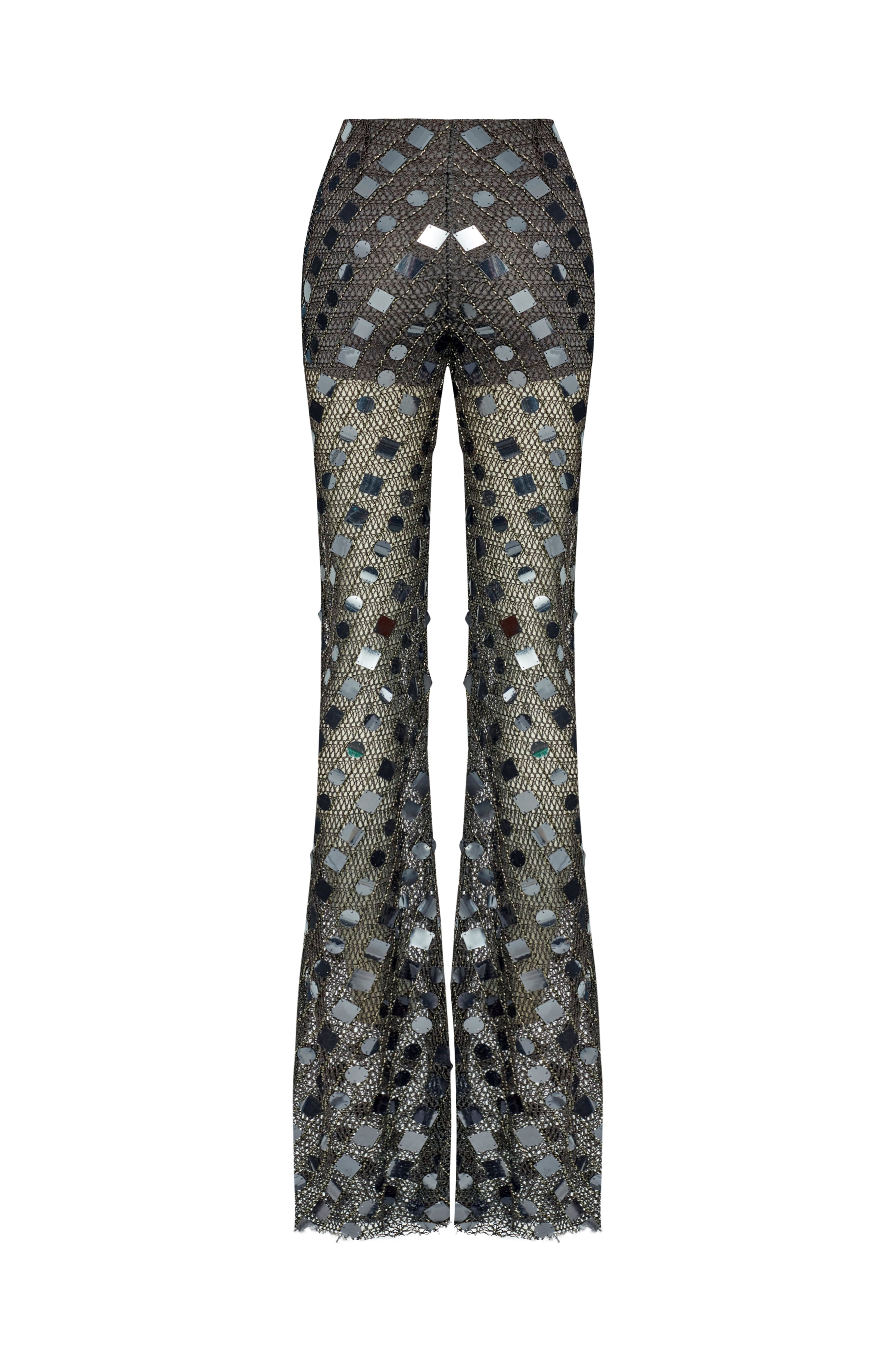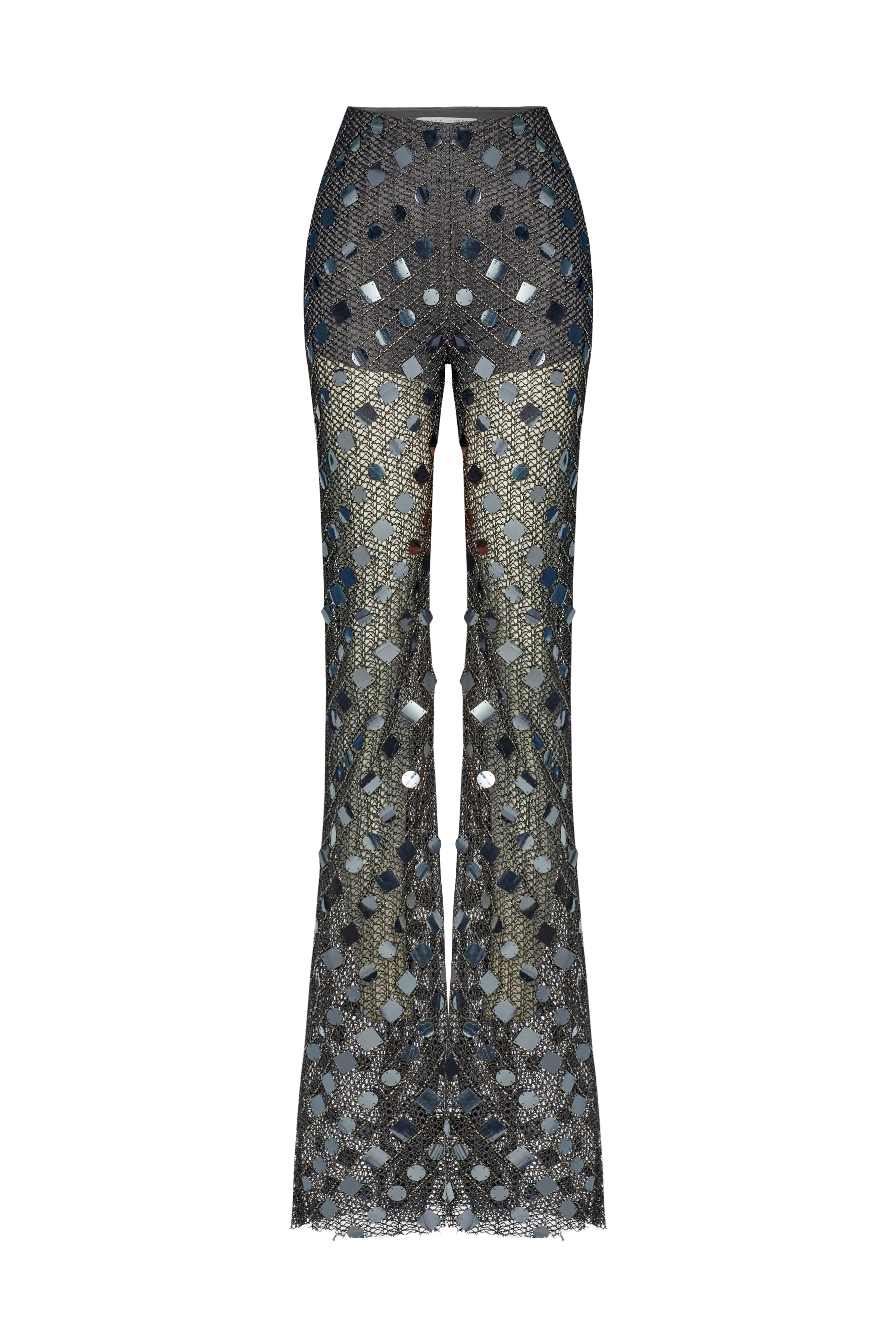 The Anthracite Handmade Knitted Sequin Embroidered Pants, featuring a mini lining, combine intricate detailing with comfortable elegance, offering a stylish choice for any occasion.