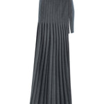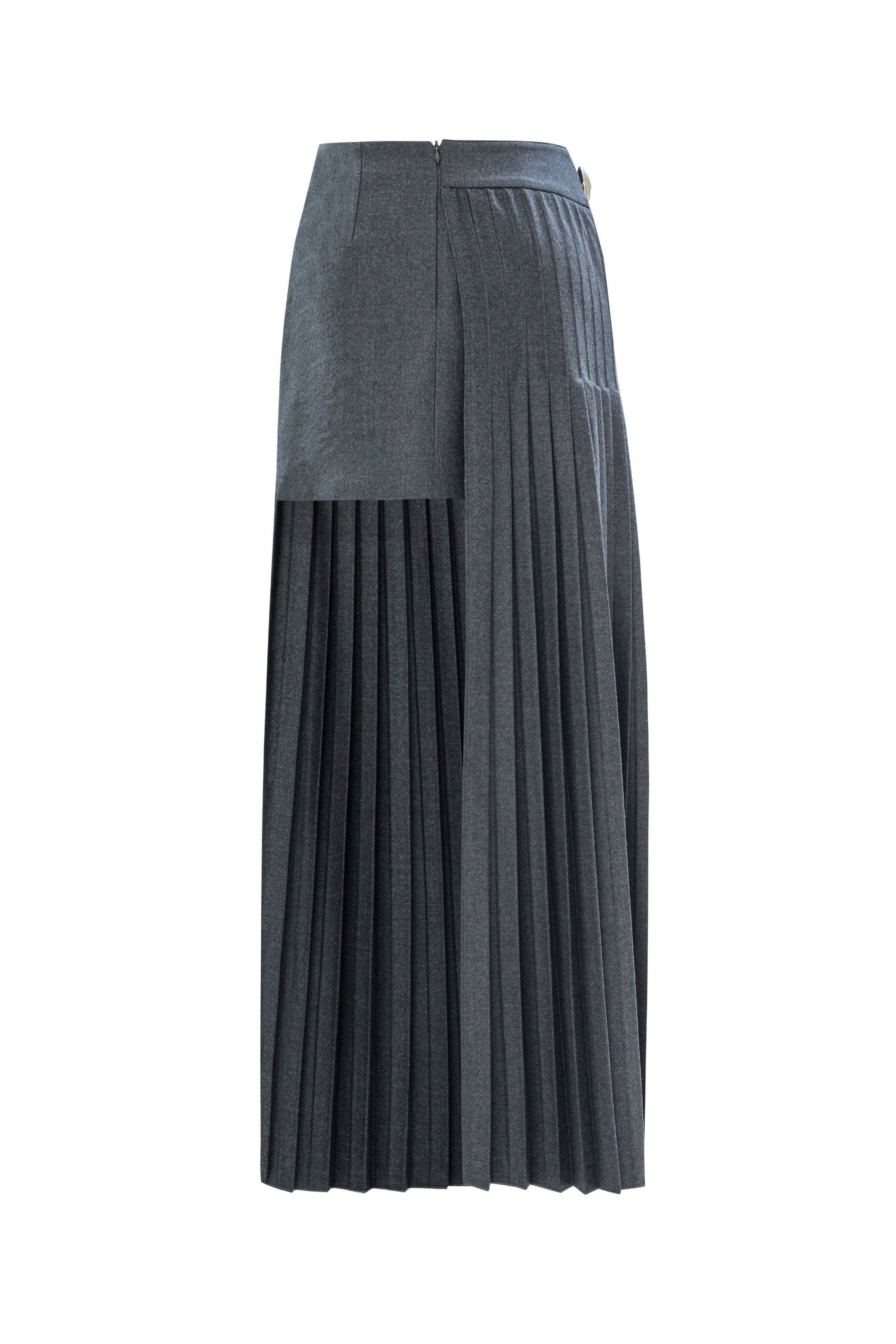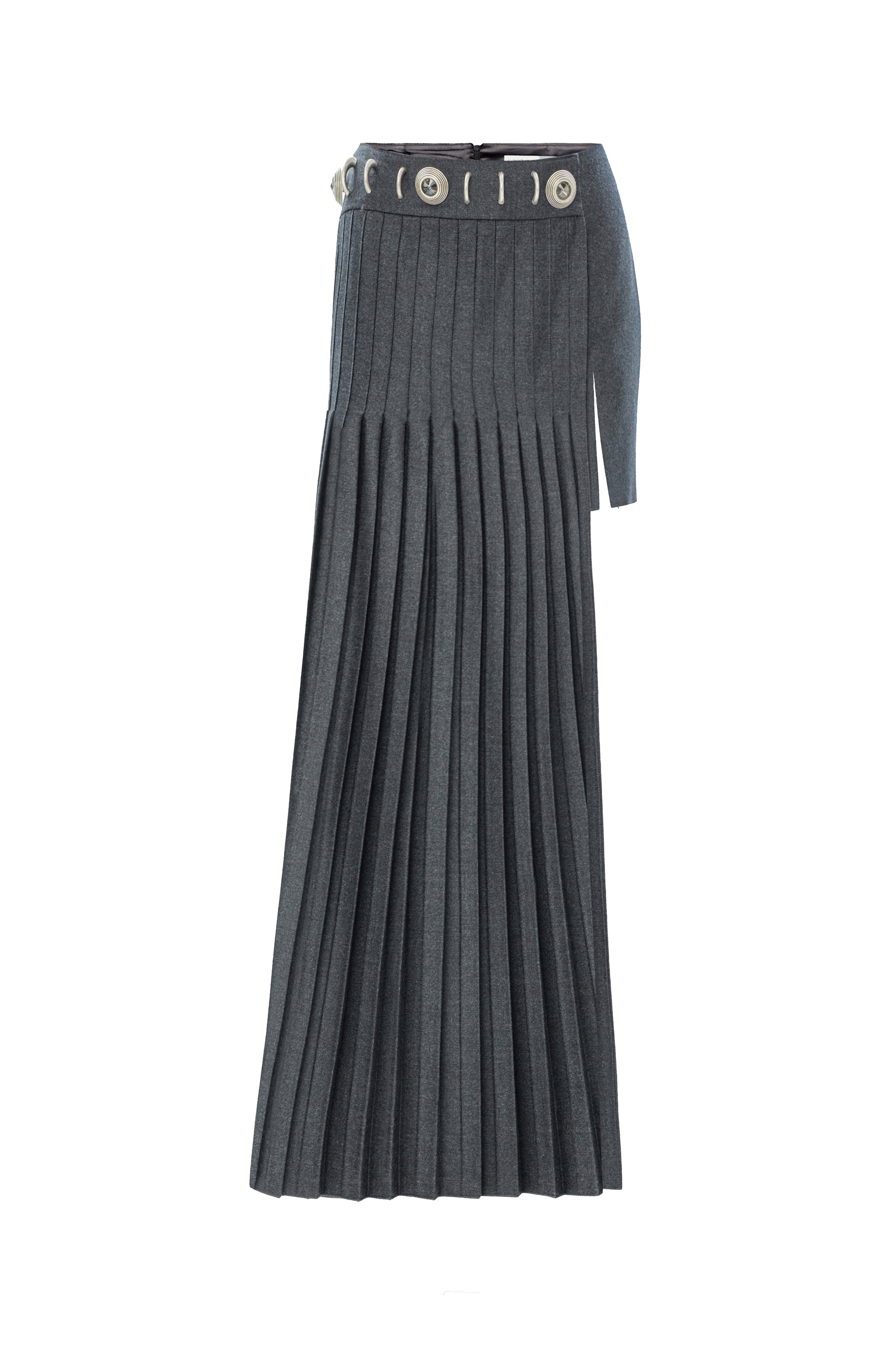 Anthracite Wool Pleated Skirt With Gold Buckle Detailed Belt
