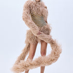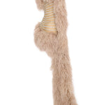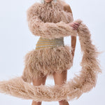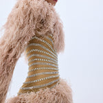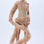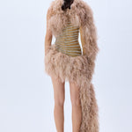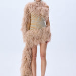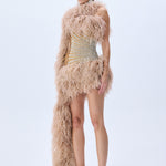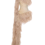 Baguette Crystal Striped Tulle One Shouldered Mini Dress With Feathers