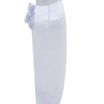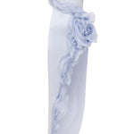 This dress has a strapless neckline and a specially embroidered rose detail on the side.