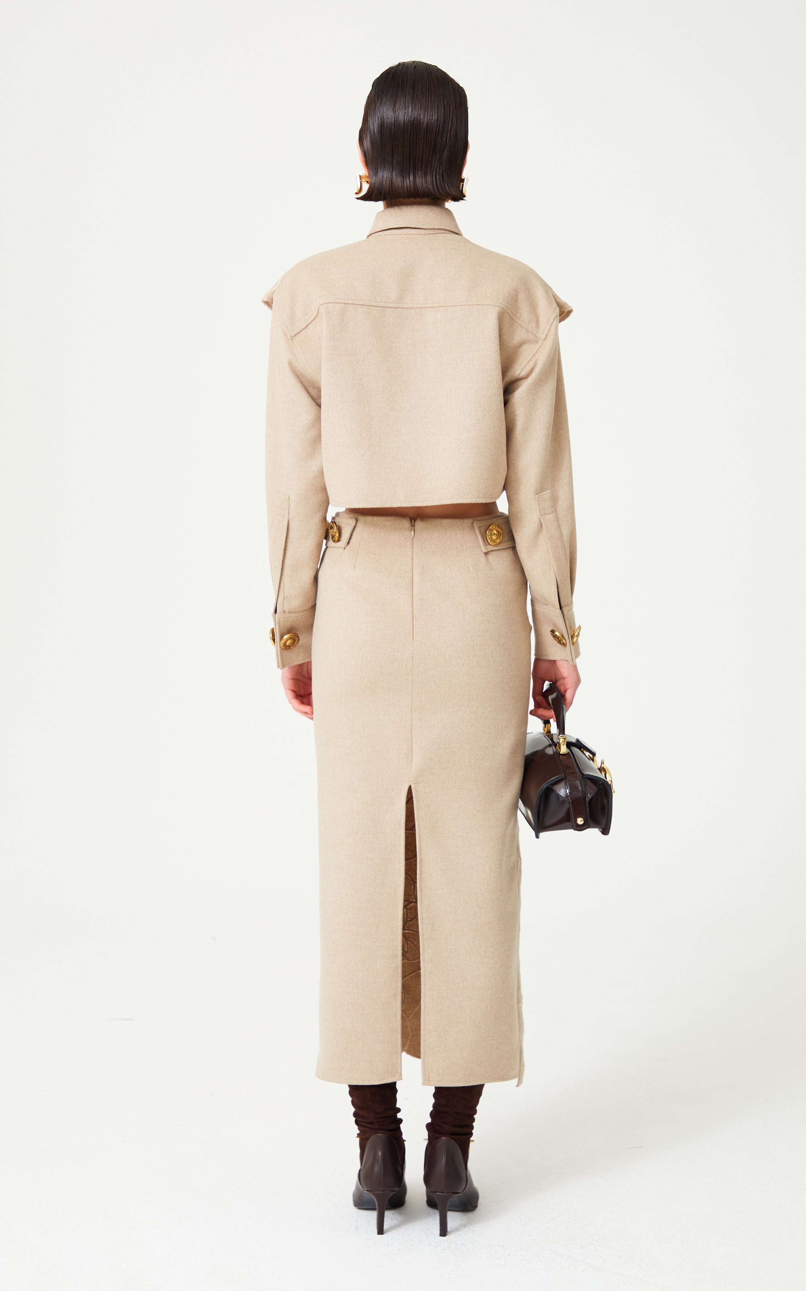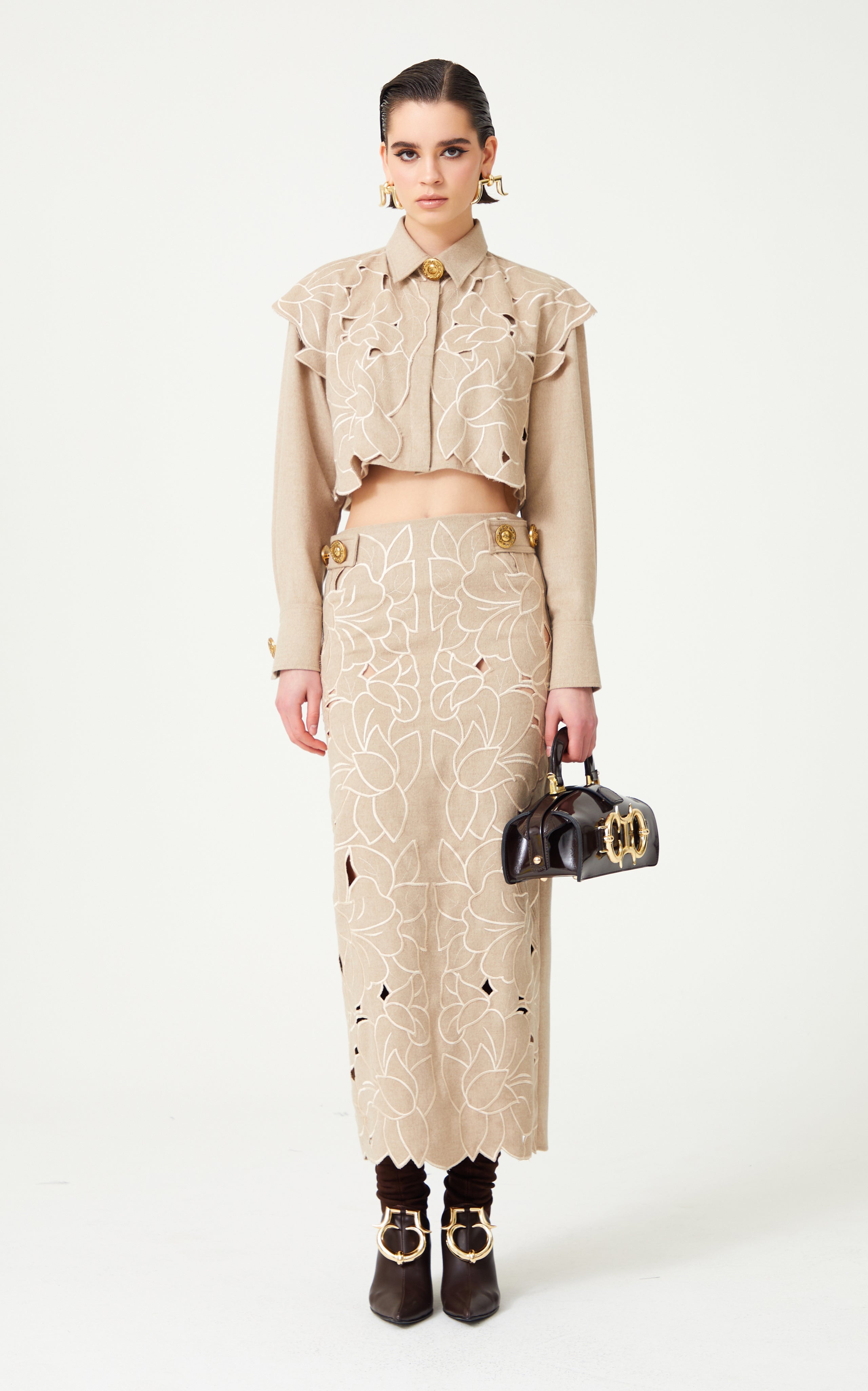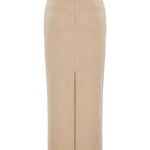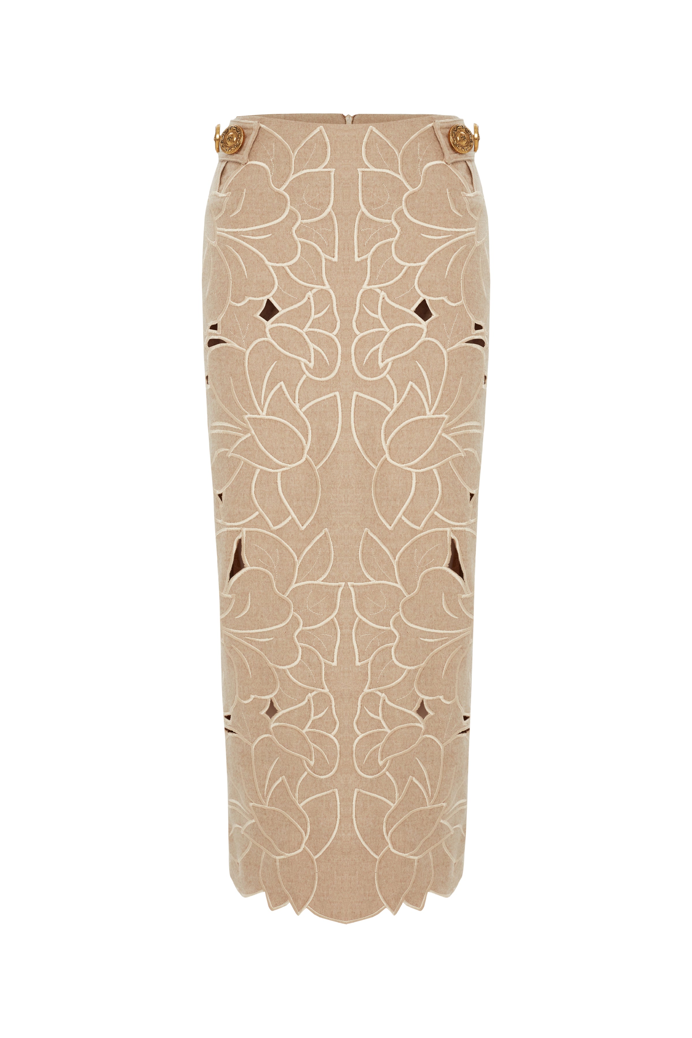 Beige Flower Embroidered Ankle Length Skirt