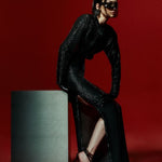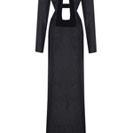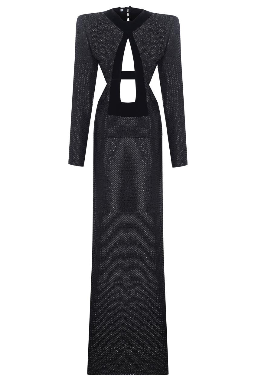 Black Chiffon Maxi Dress with Embroidery and Velvet Open Front Detail