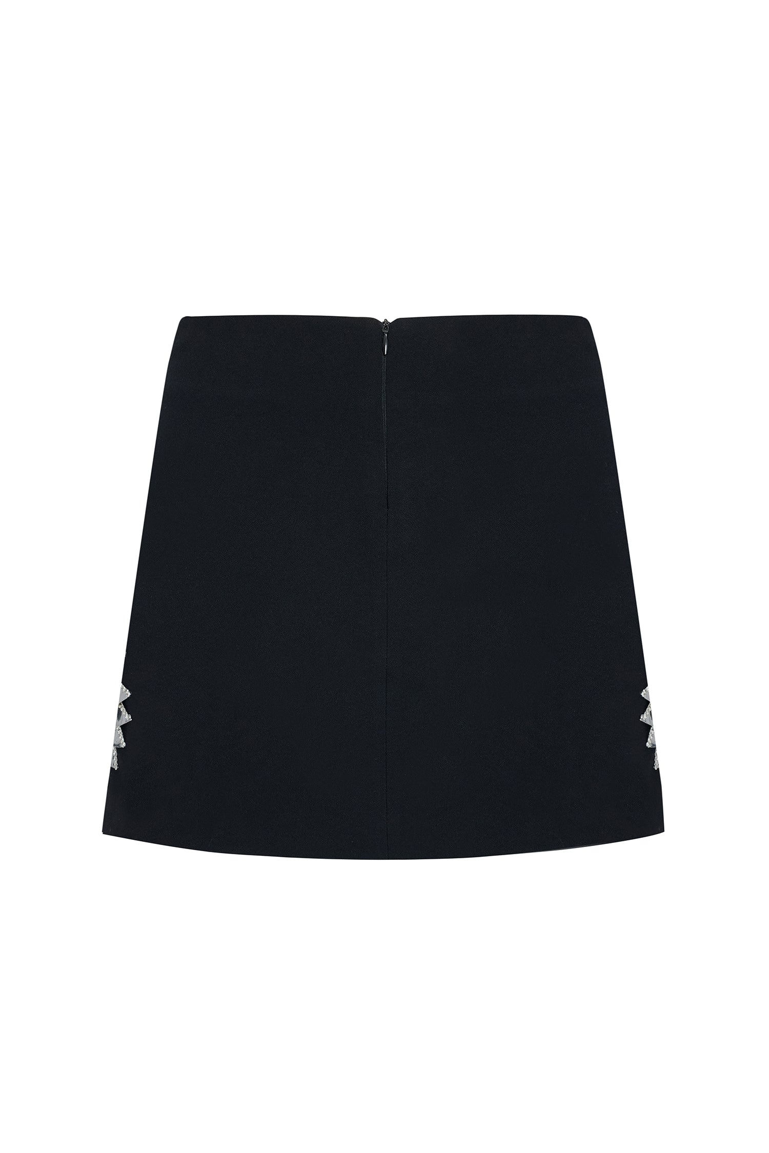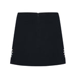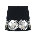 Black Crepe Mini Skirt With Patent Flower Detail