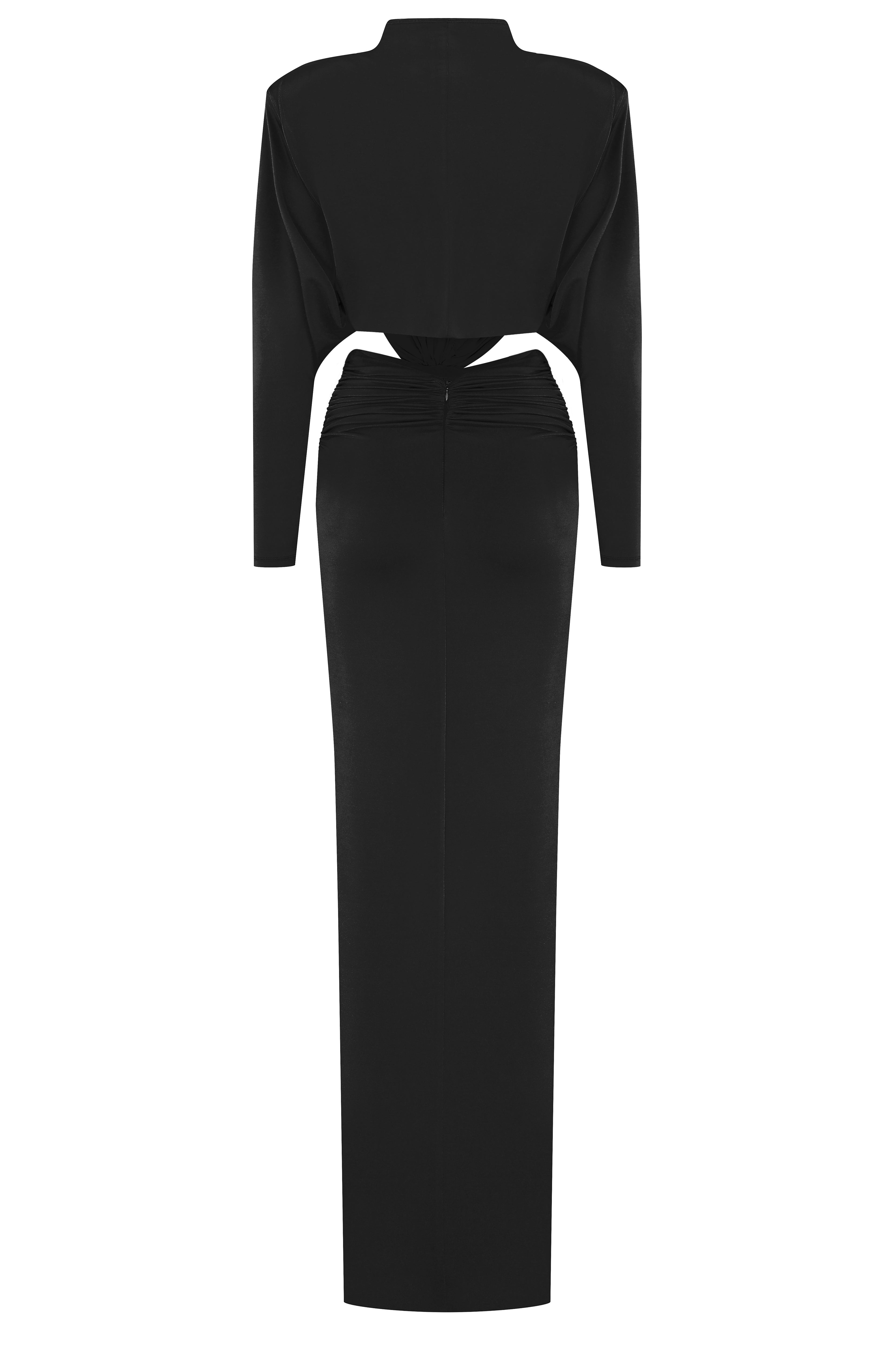 Black Jersey Maxi Dress With Crystal Stone Detail