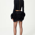 Black Knit Mini Skirt With Organza Puffy Flower Details