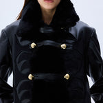 Black Leather Coat With Fur Finishing And Black Velvet Embroidery