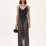 Black Polka Dot Cowl Neckline See Through Chiffon Pareo Dress