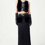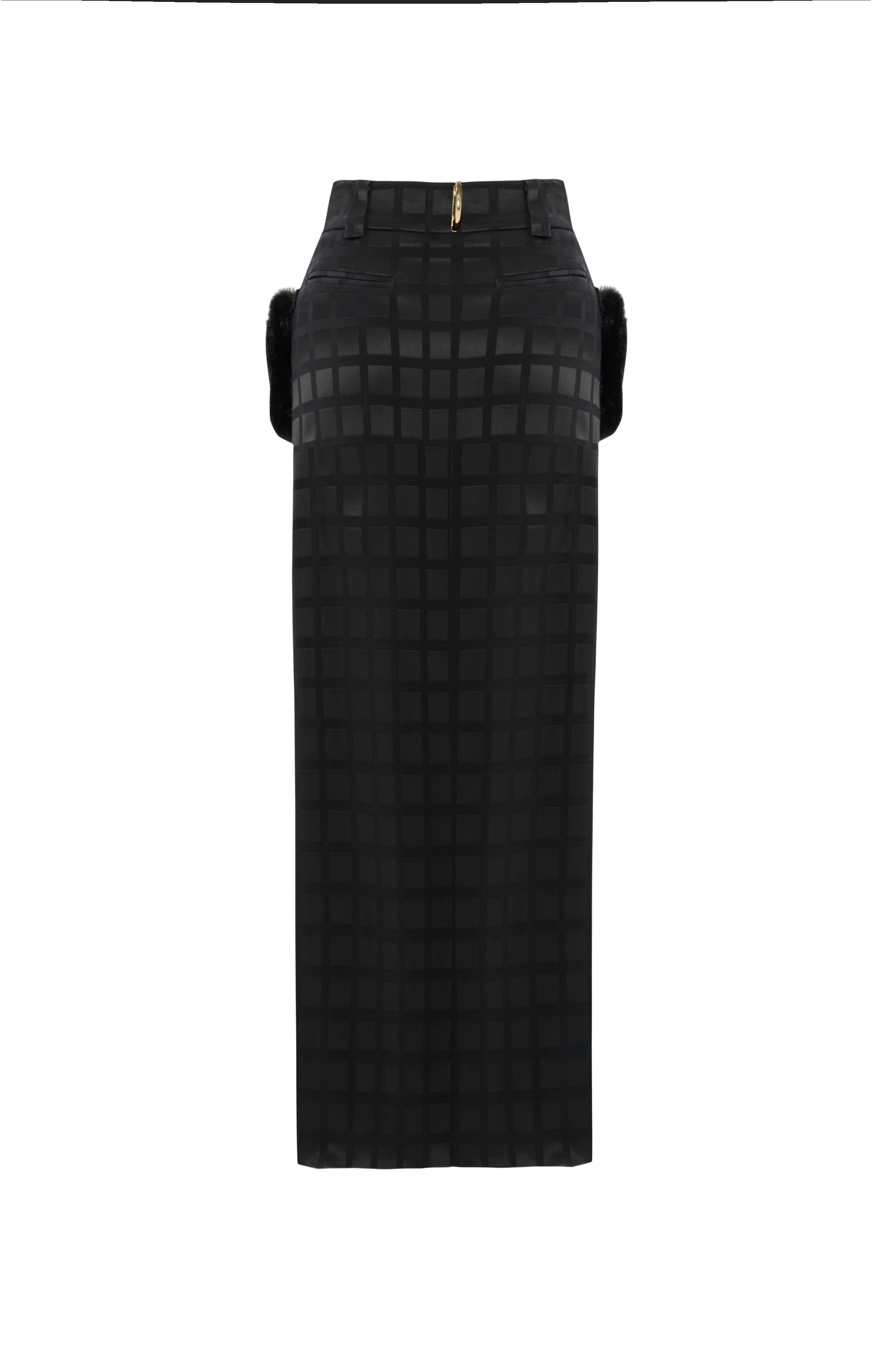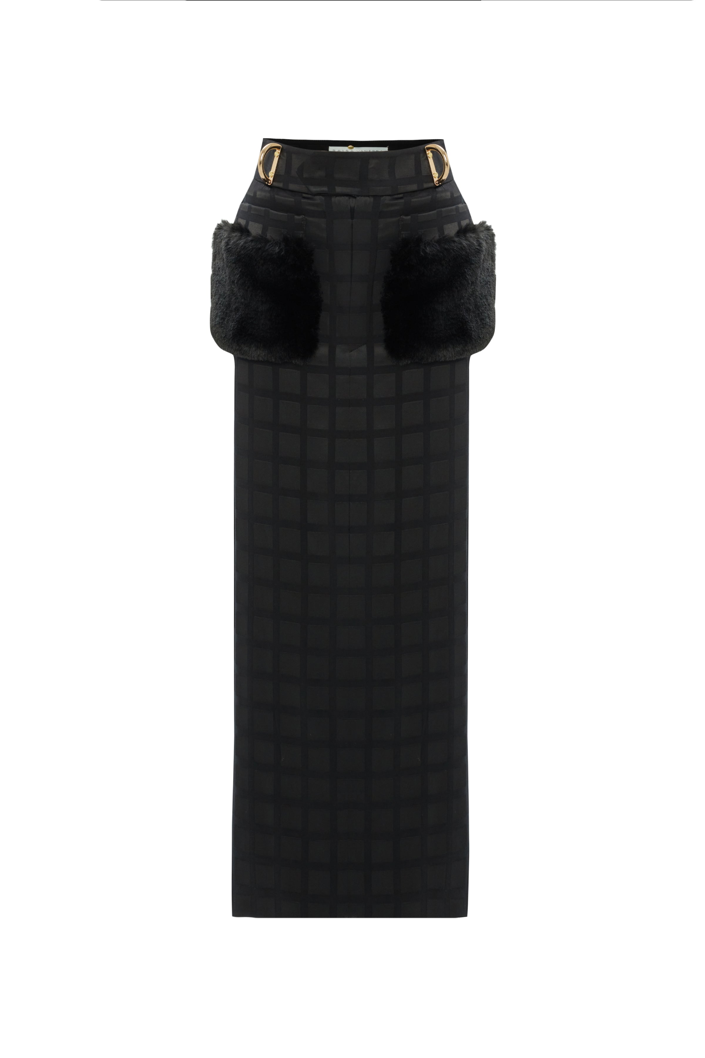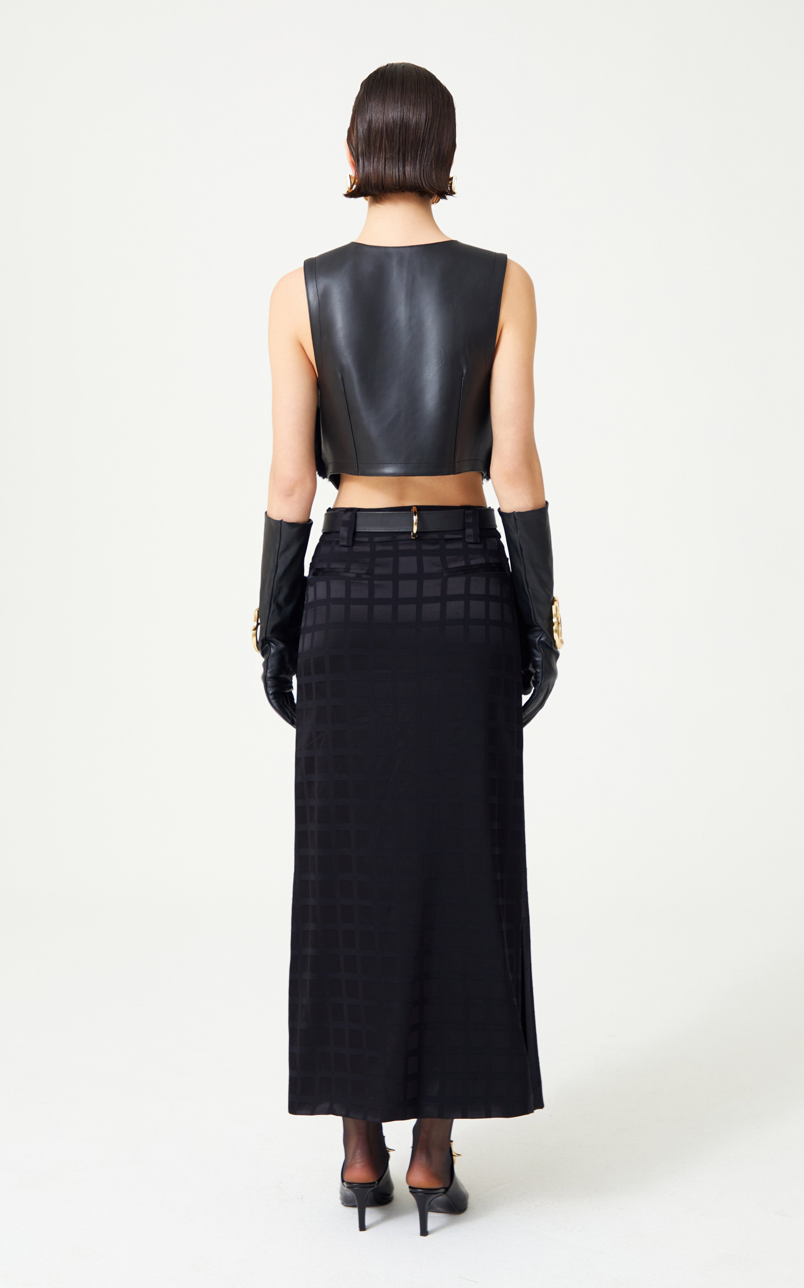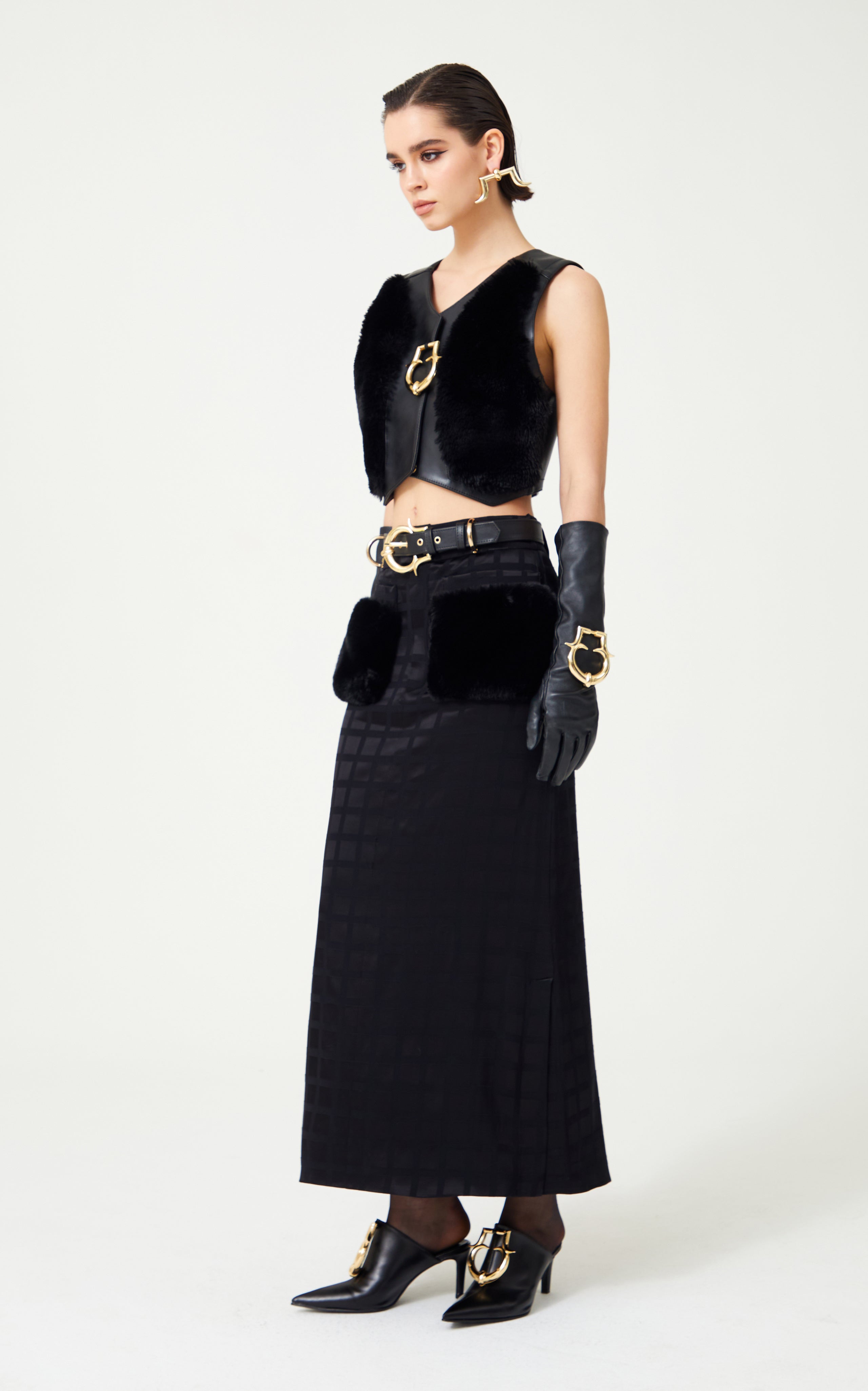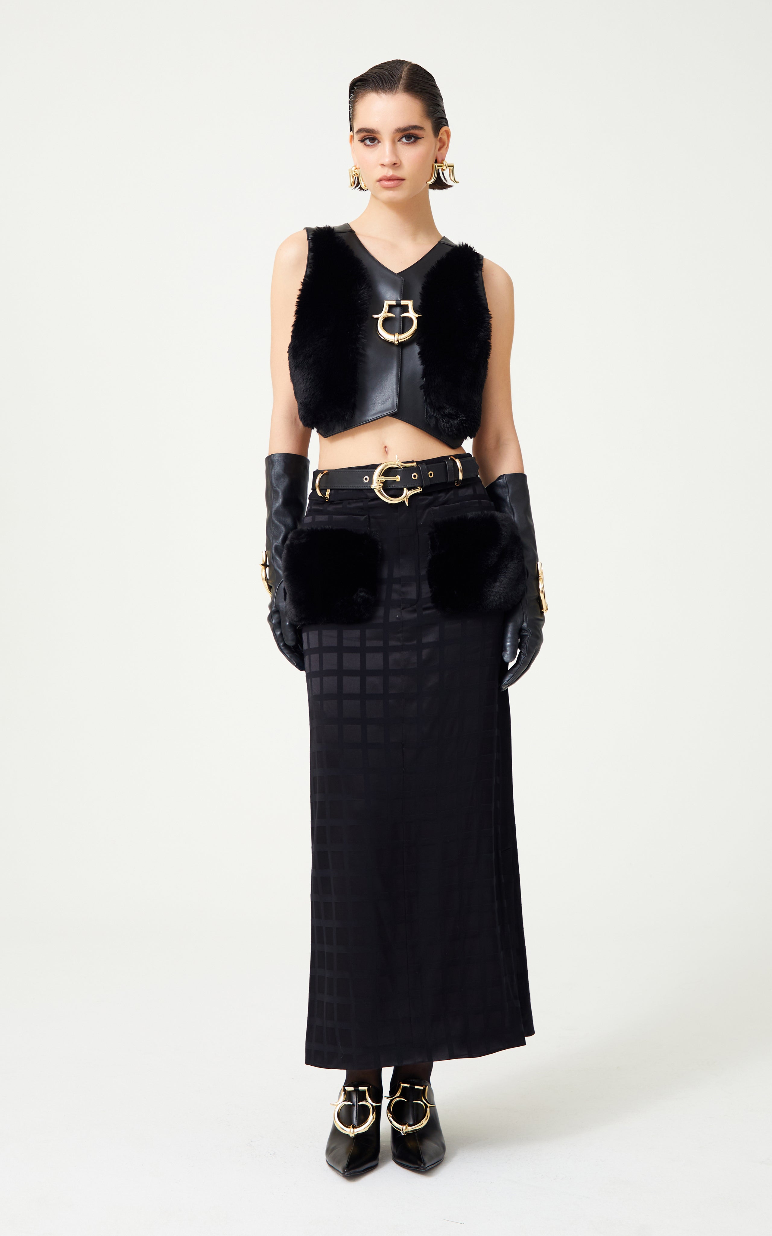 Black Satin Maxi Skirt With Gold Buckle Detail