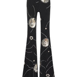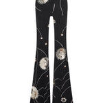 Black Sequined Jersey Flare Pants With Patent Flowers