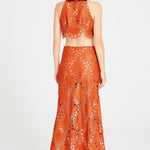 Brick Lace Skirt with Gold Accessory Details