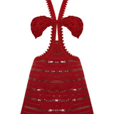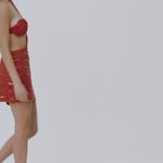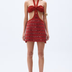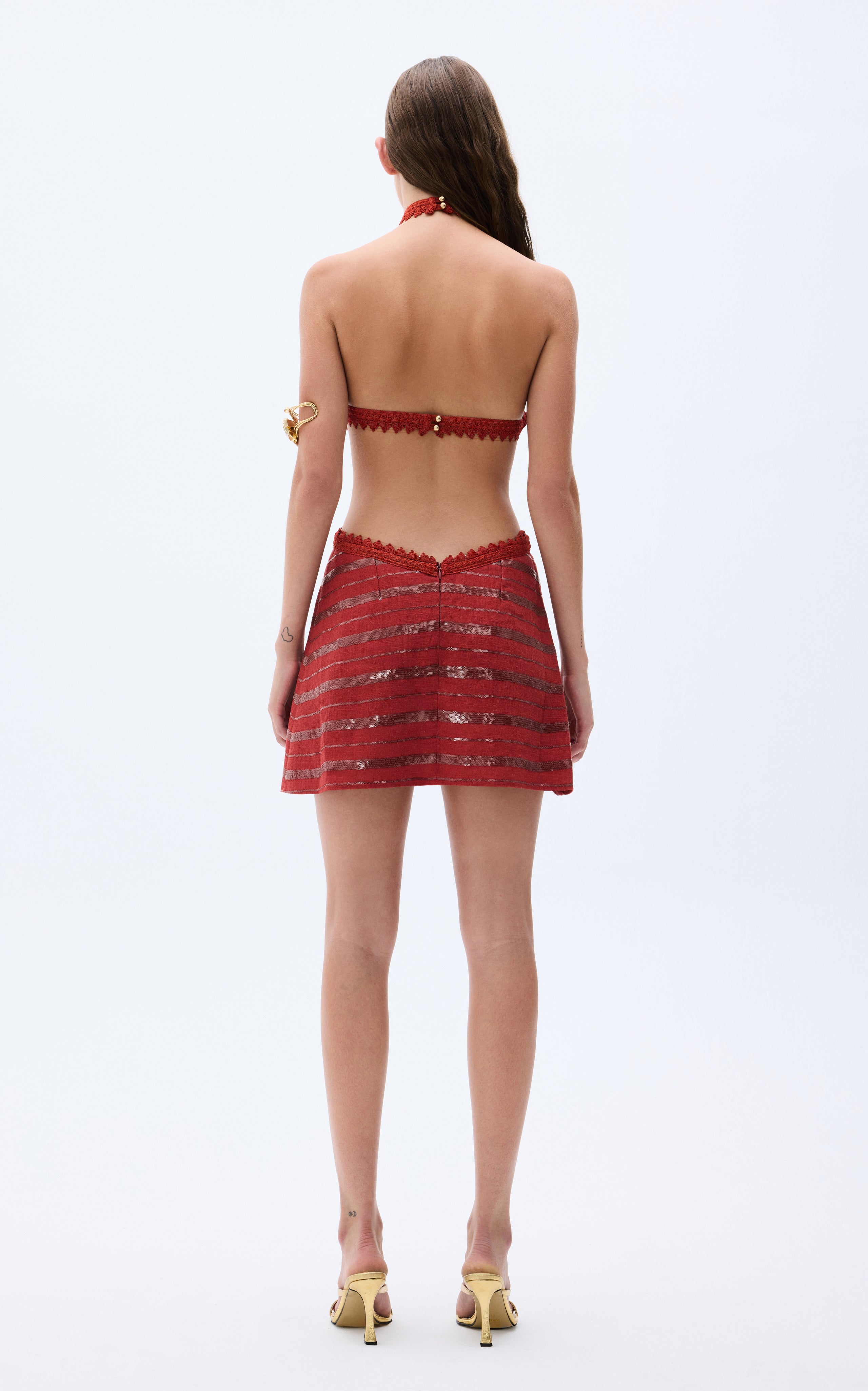 Brick Linen Mini Dress With Sequined Stripes & Handmade Rope Detailed Bra