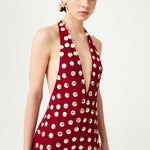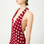 Burgundy Handmade Gold Polka Dot Detailed Silk Chiffon Jumpsuit