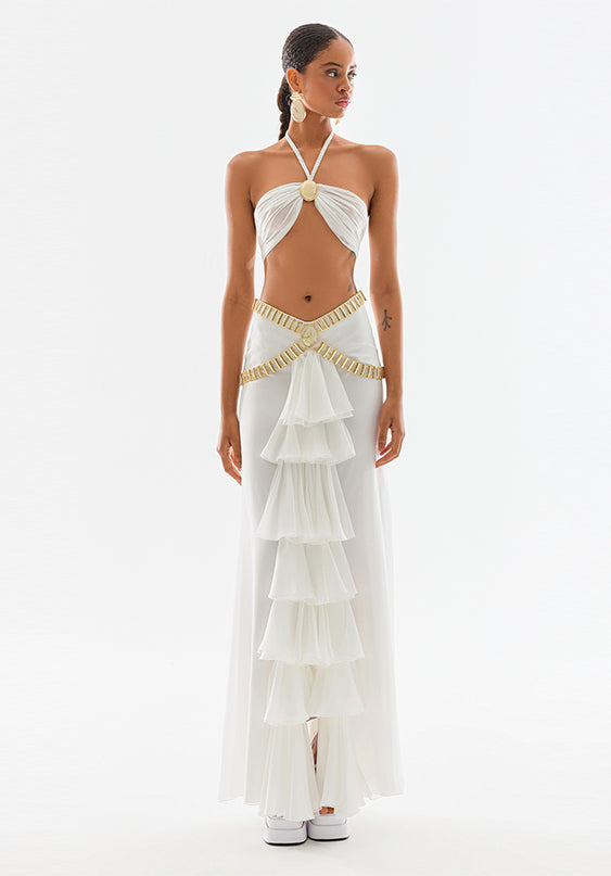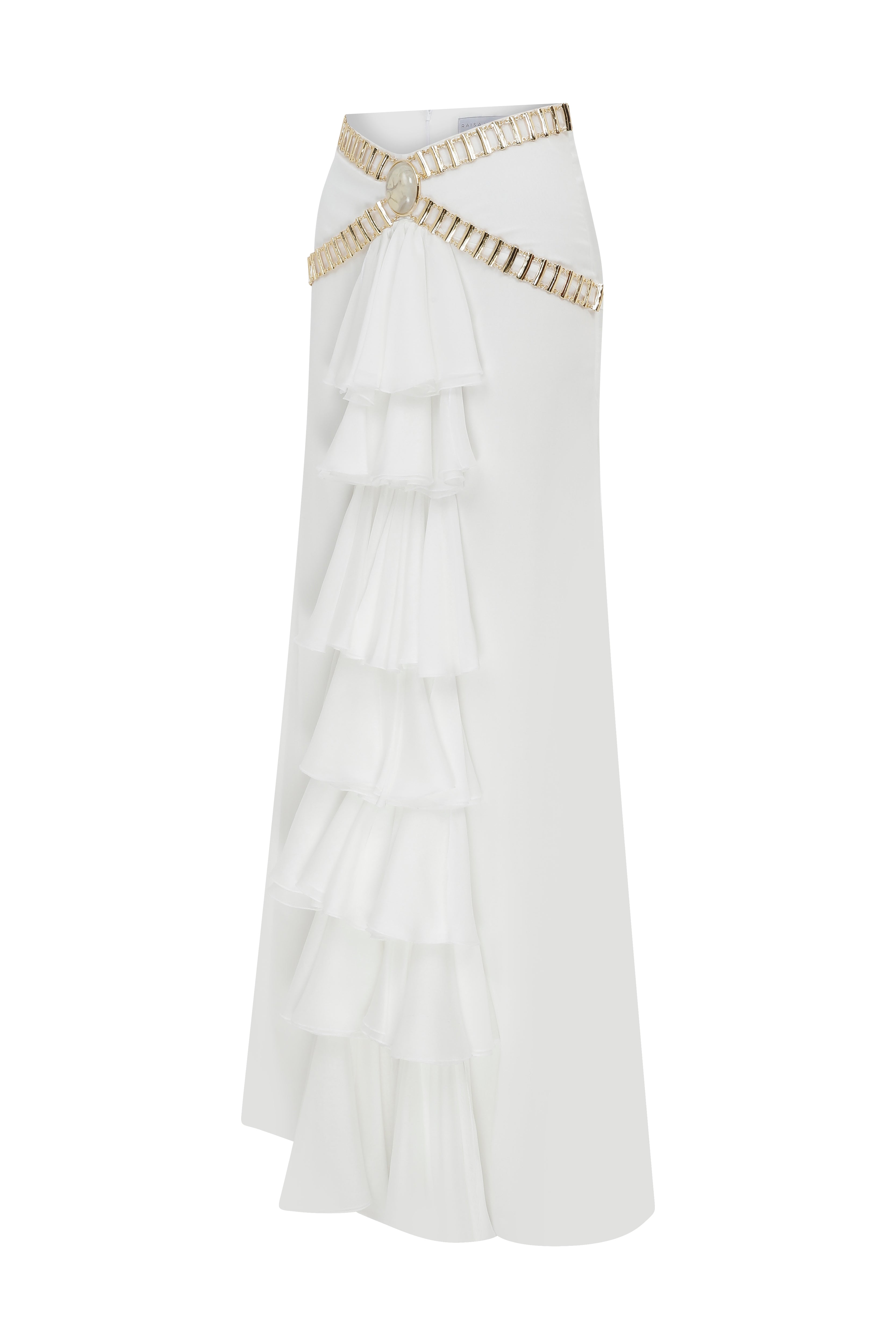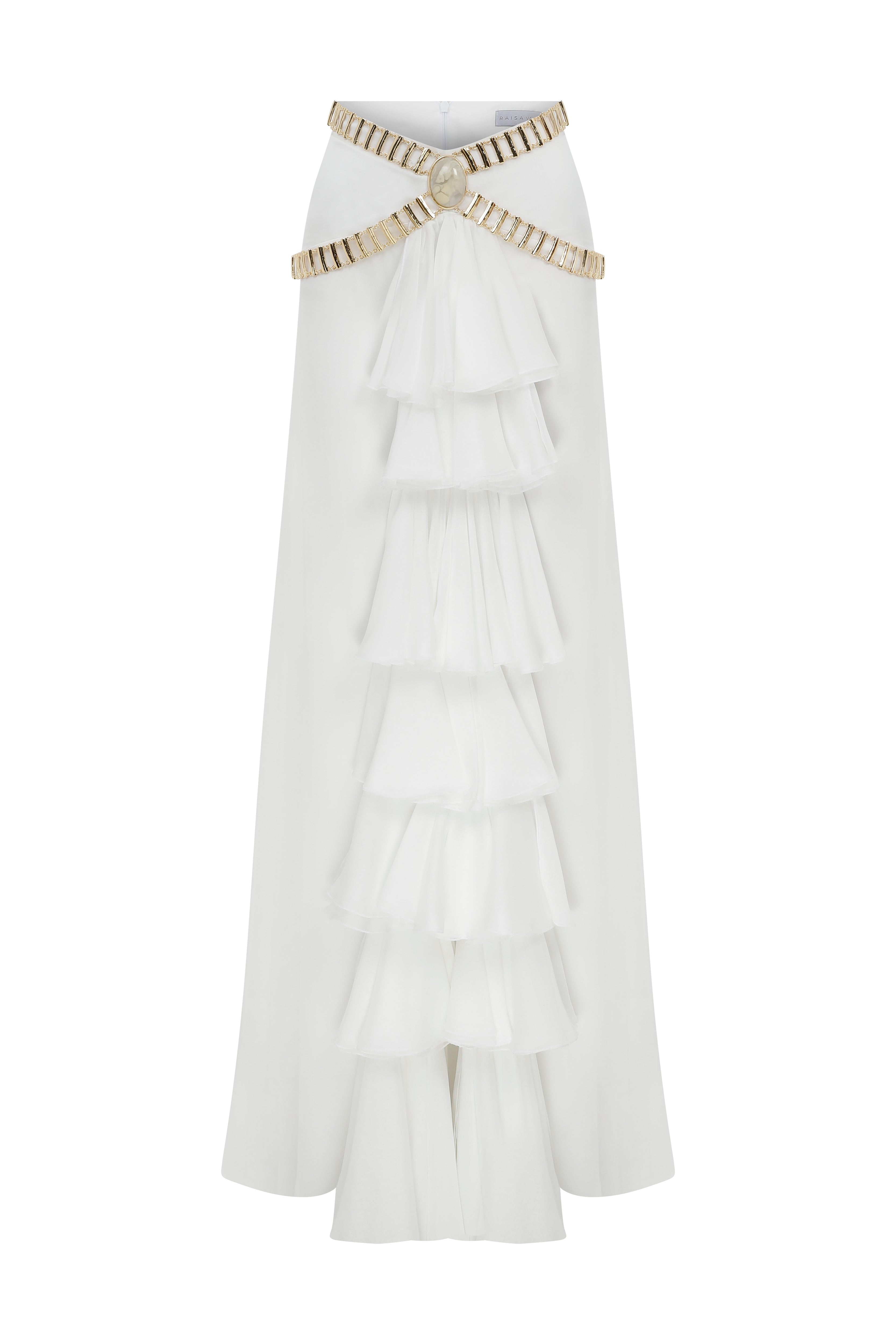 Chiffon Maxi Ruffle Skirt With Gold and Gem Details