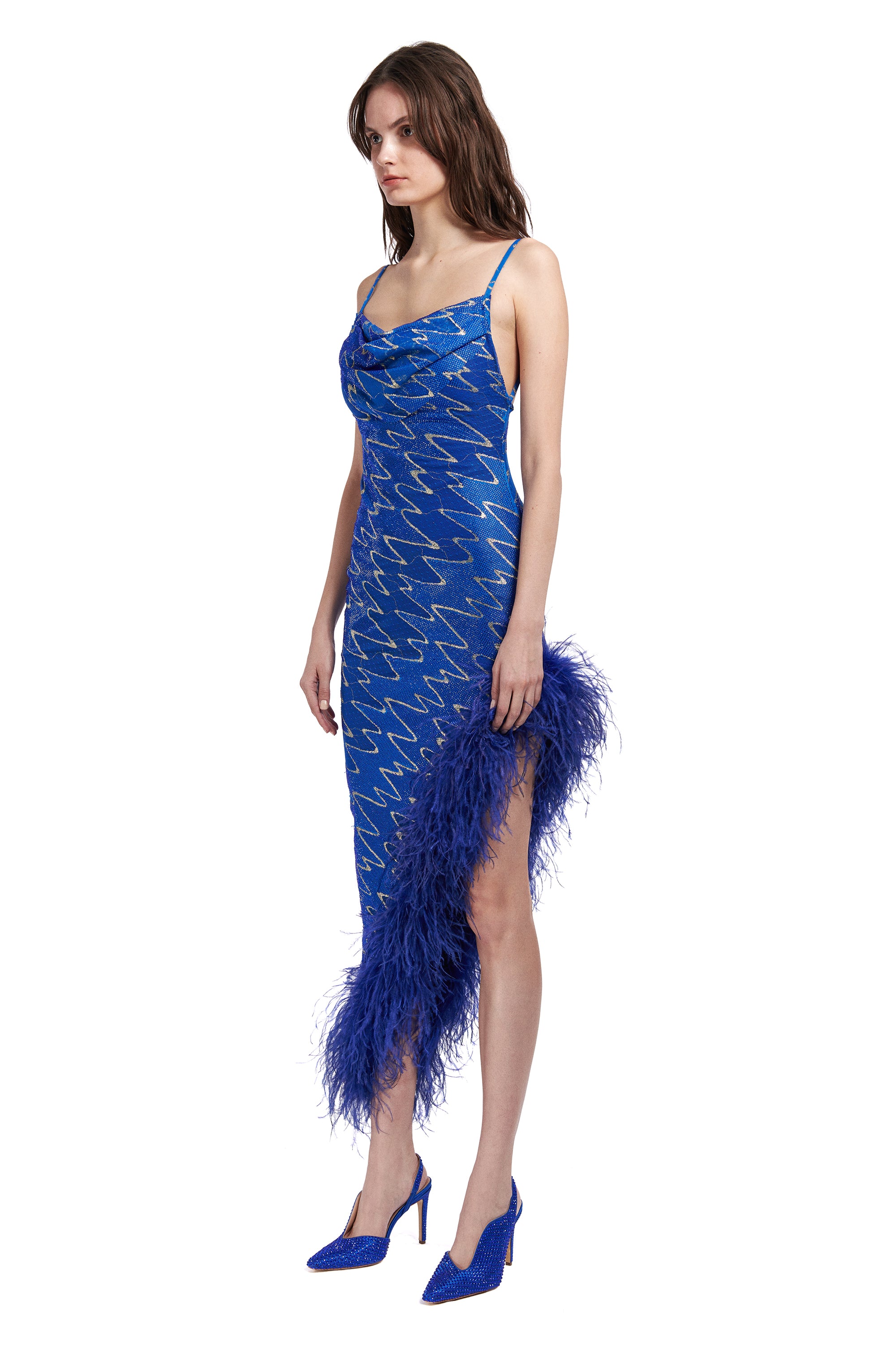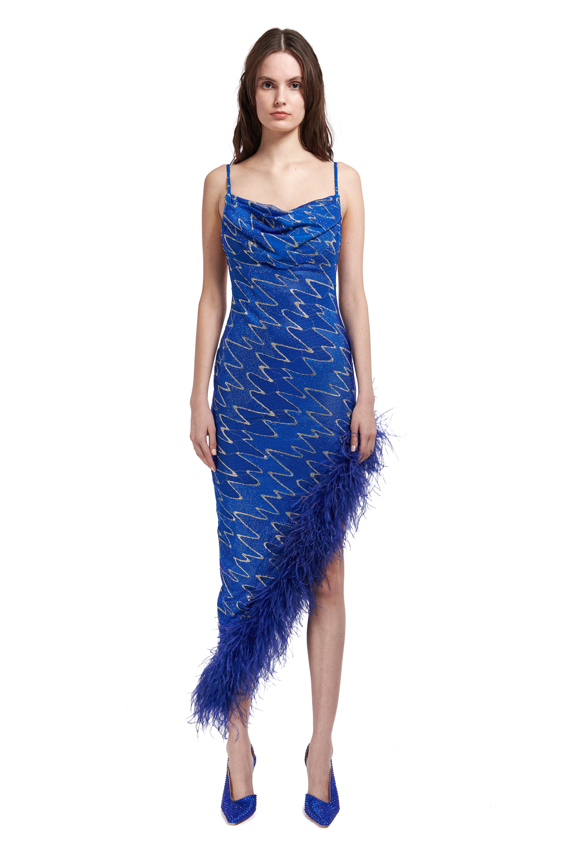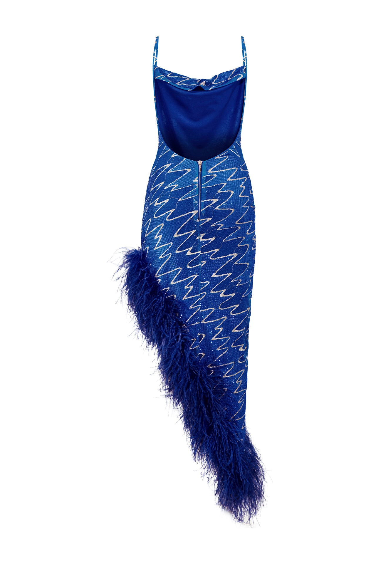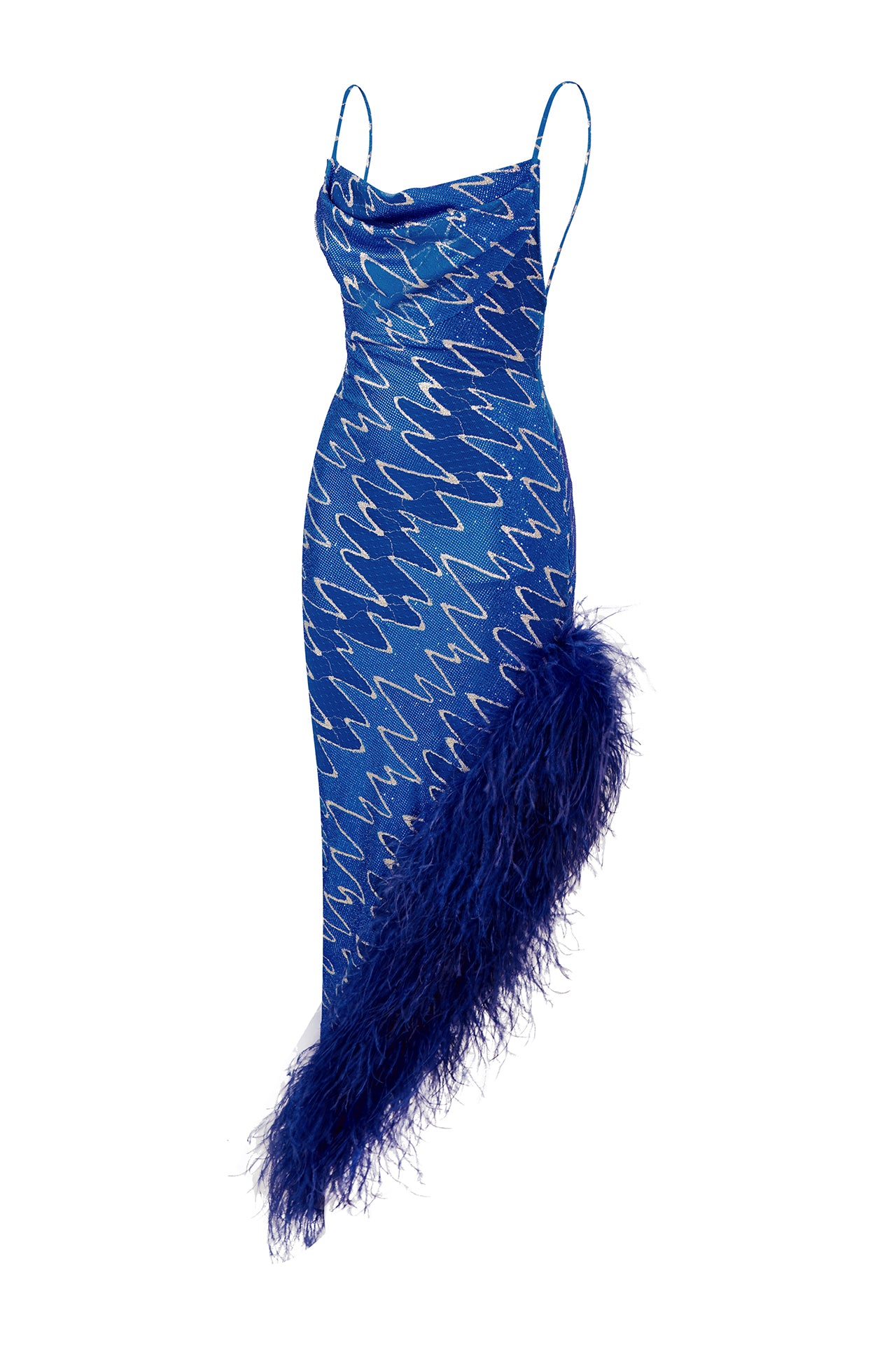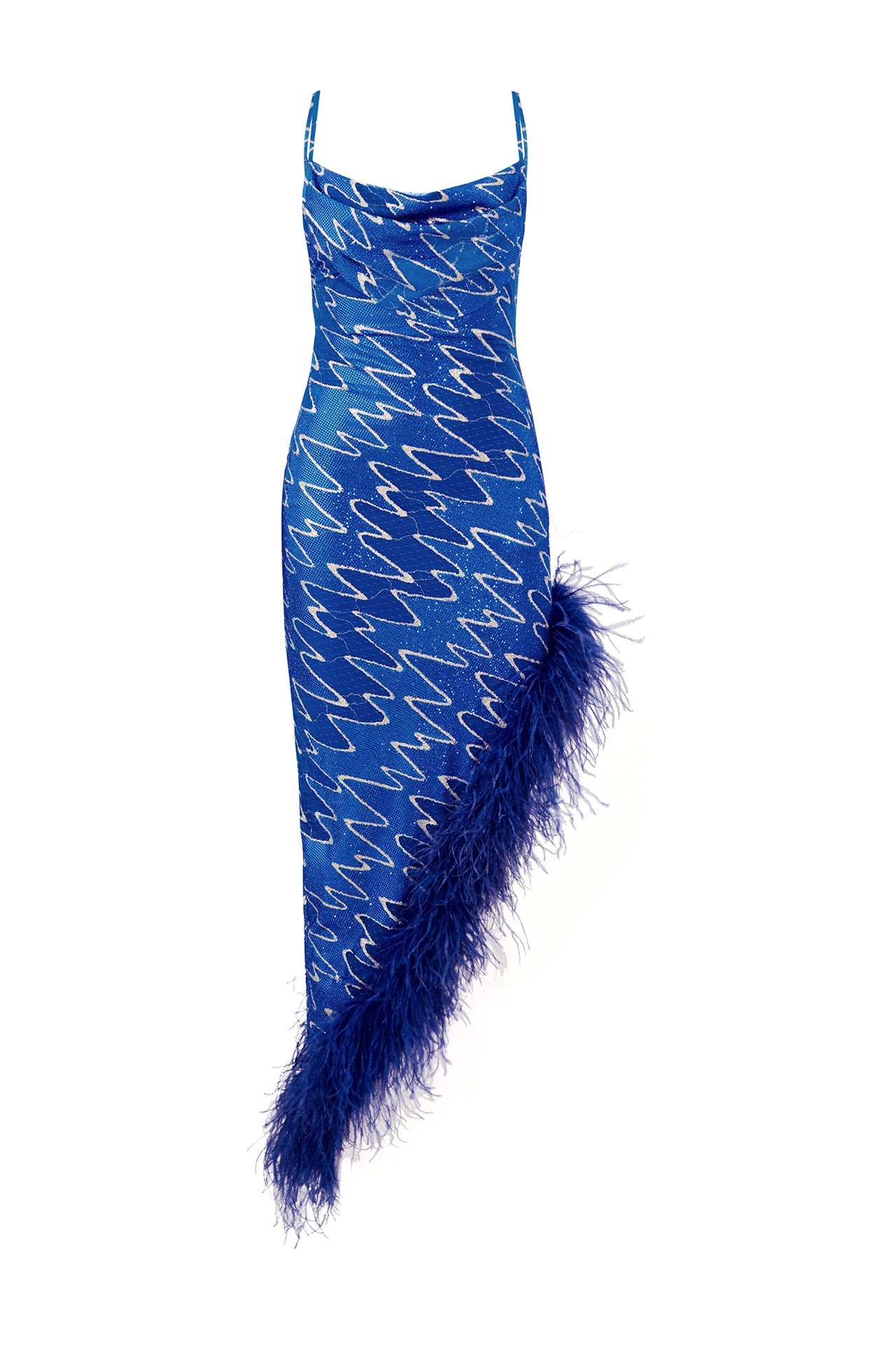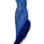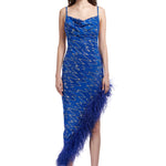 Crystal Embellished Asymmetrical Lace Zigzag Midi Dress