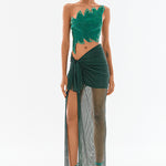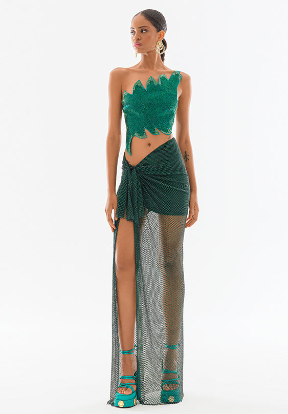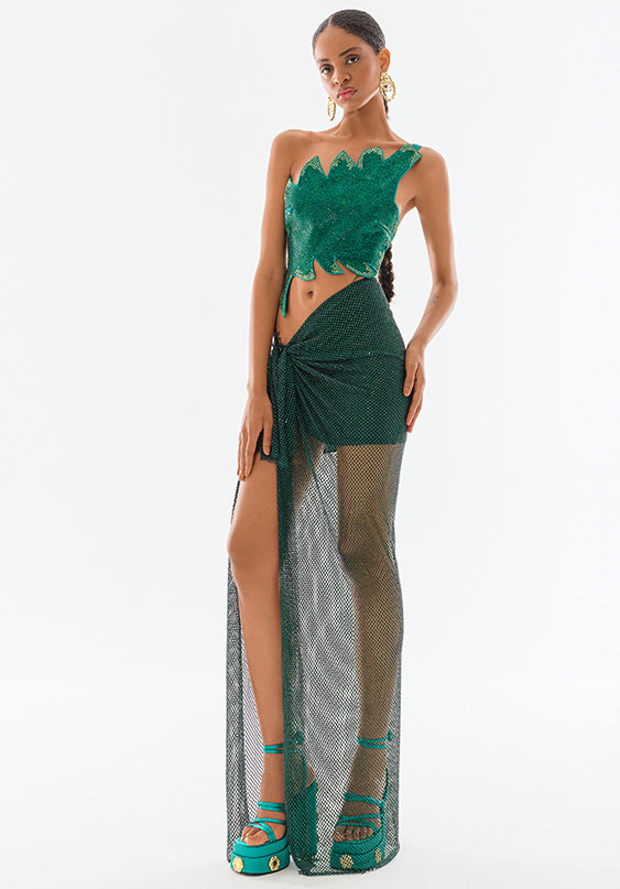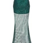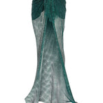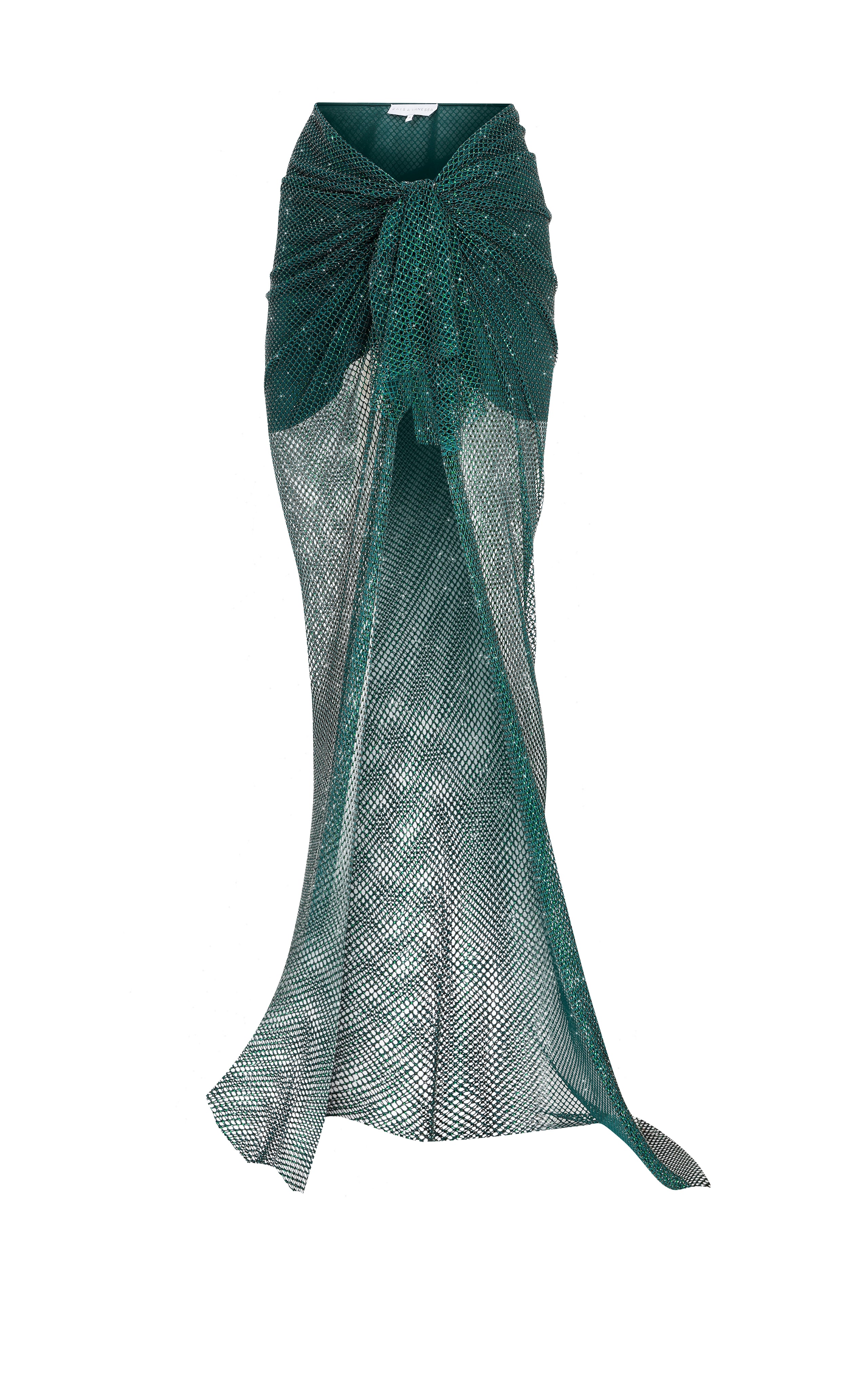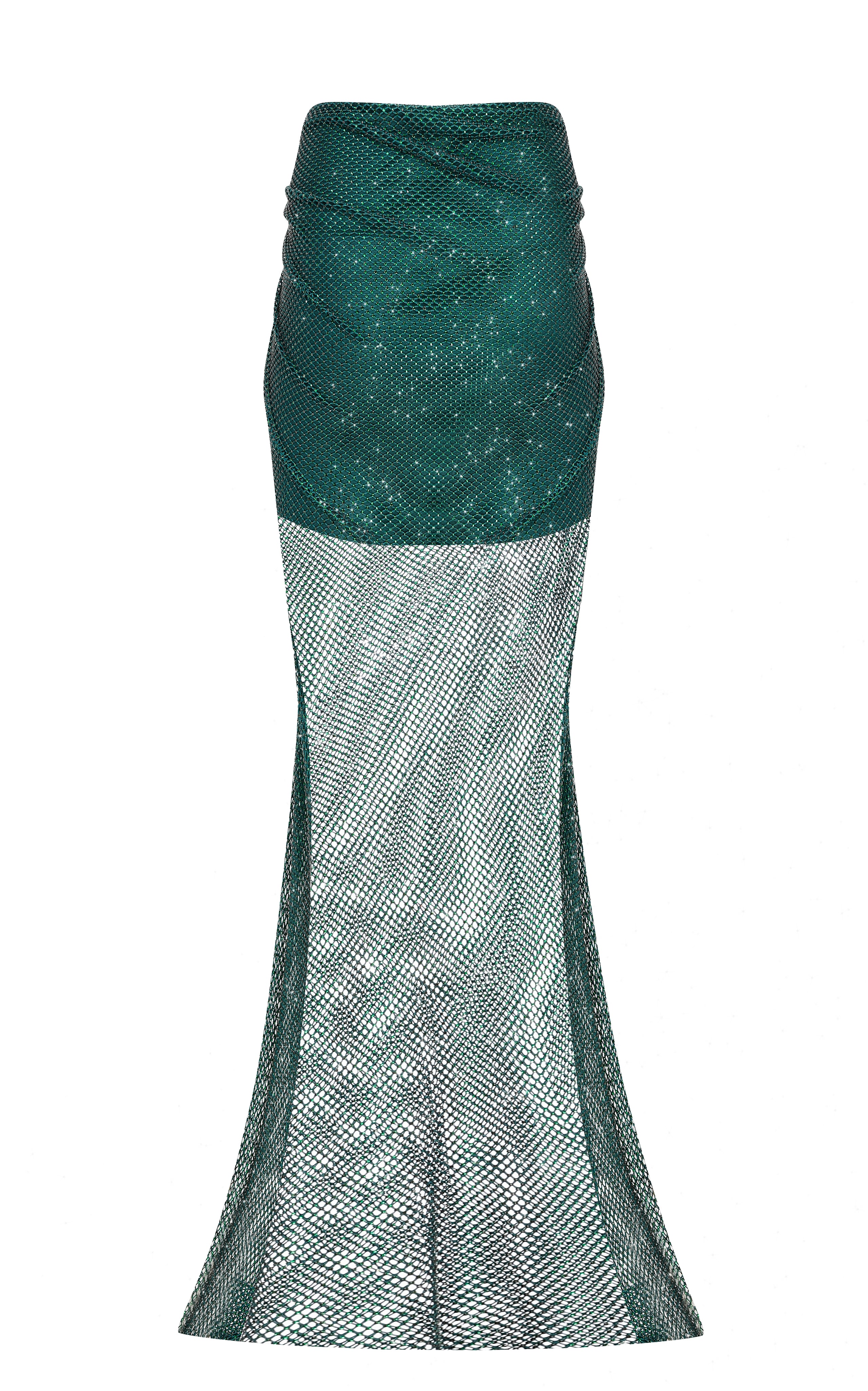 Crystal Embellished Fishnet Maxi Skirt With High Slit