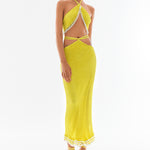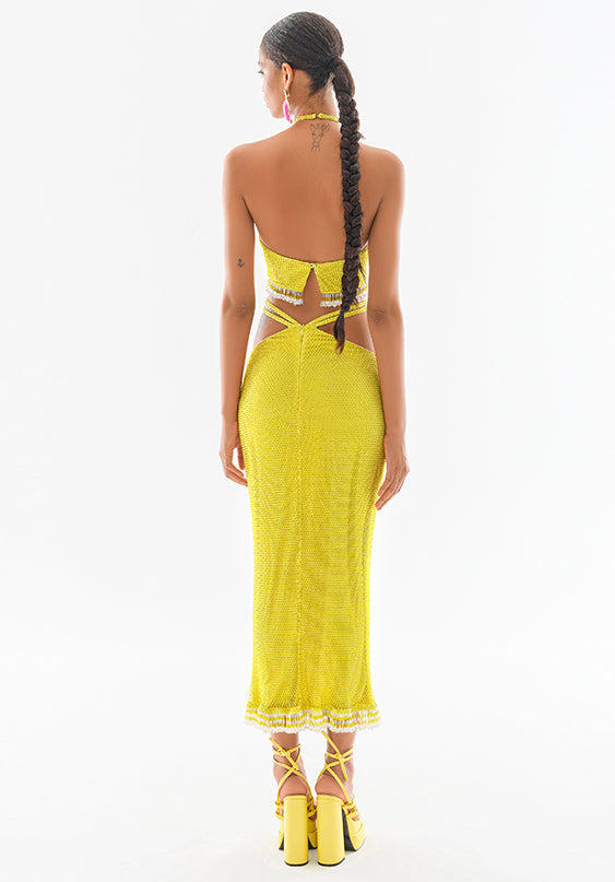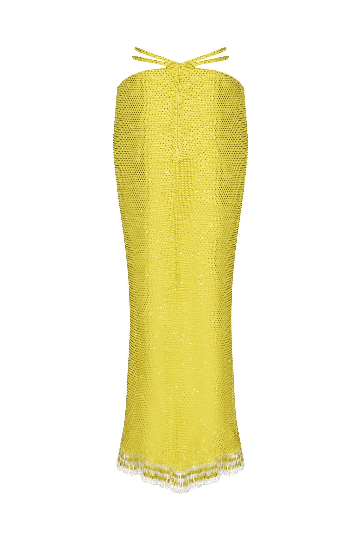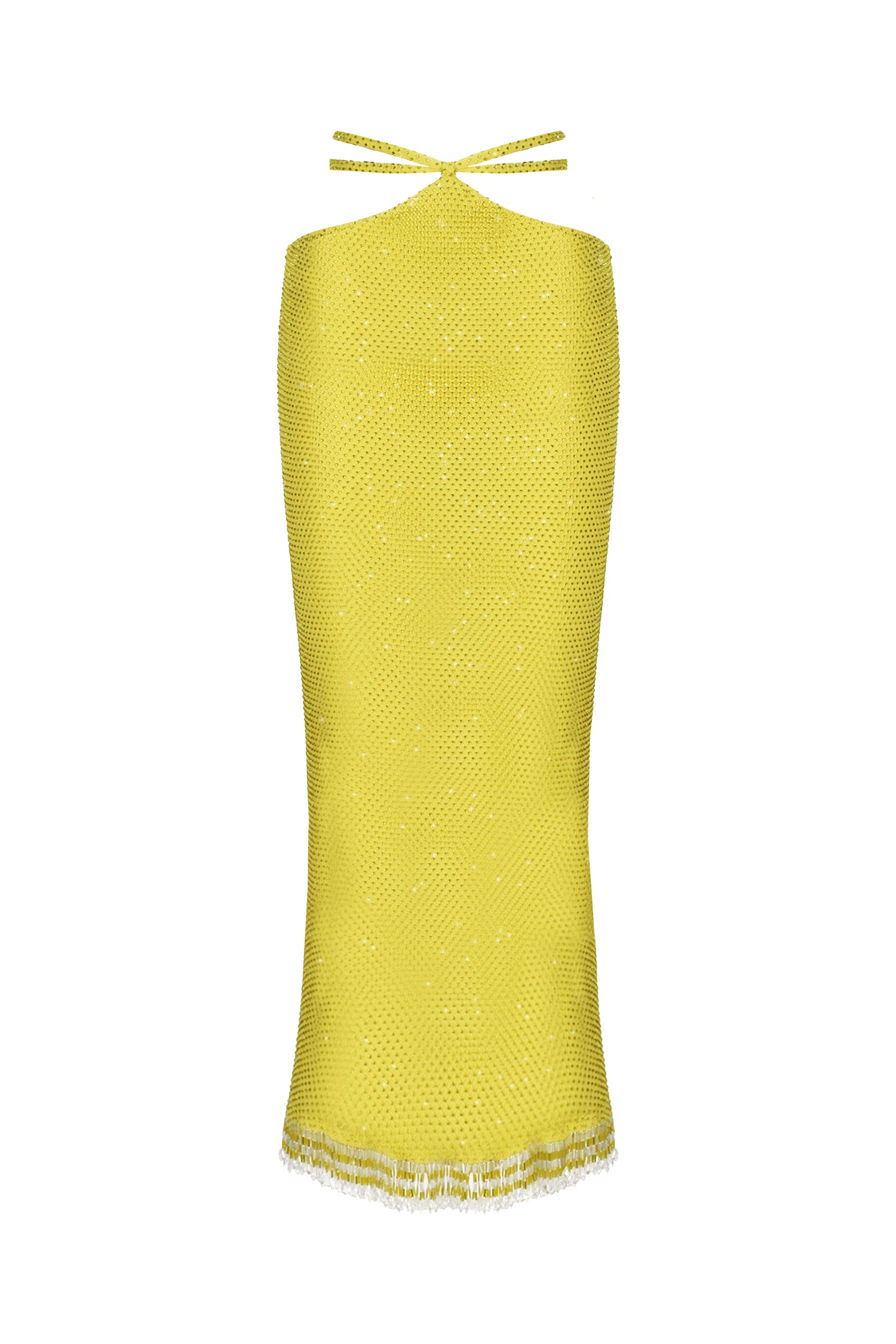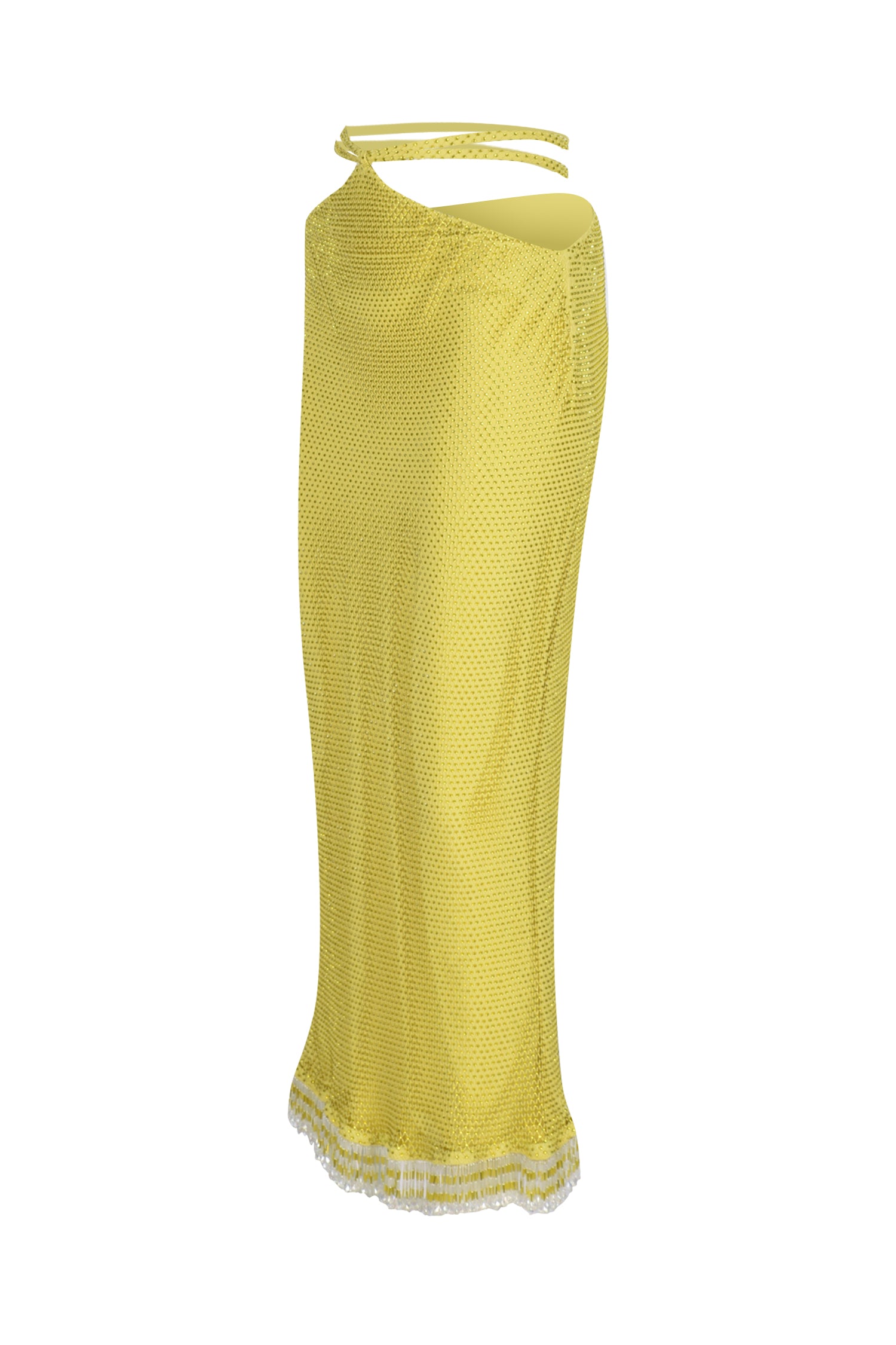 Crystal Embellished Midi Skirt With Crossed Straps And Beaded Fringe Details