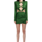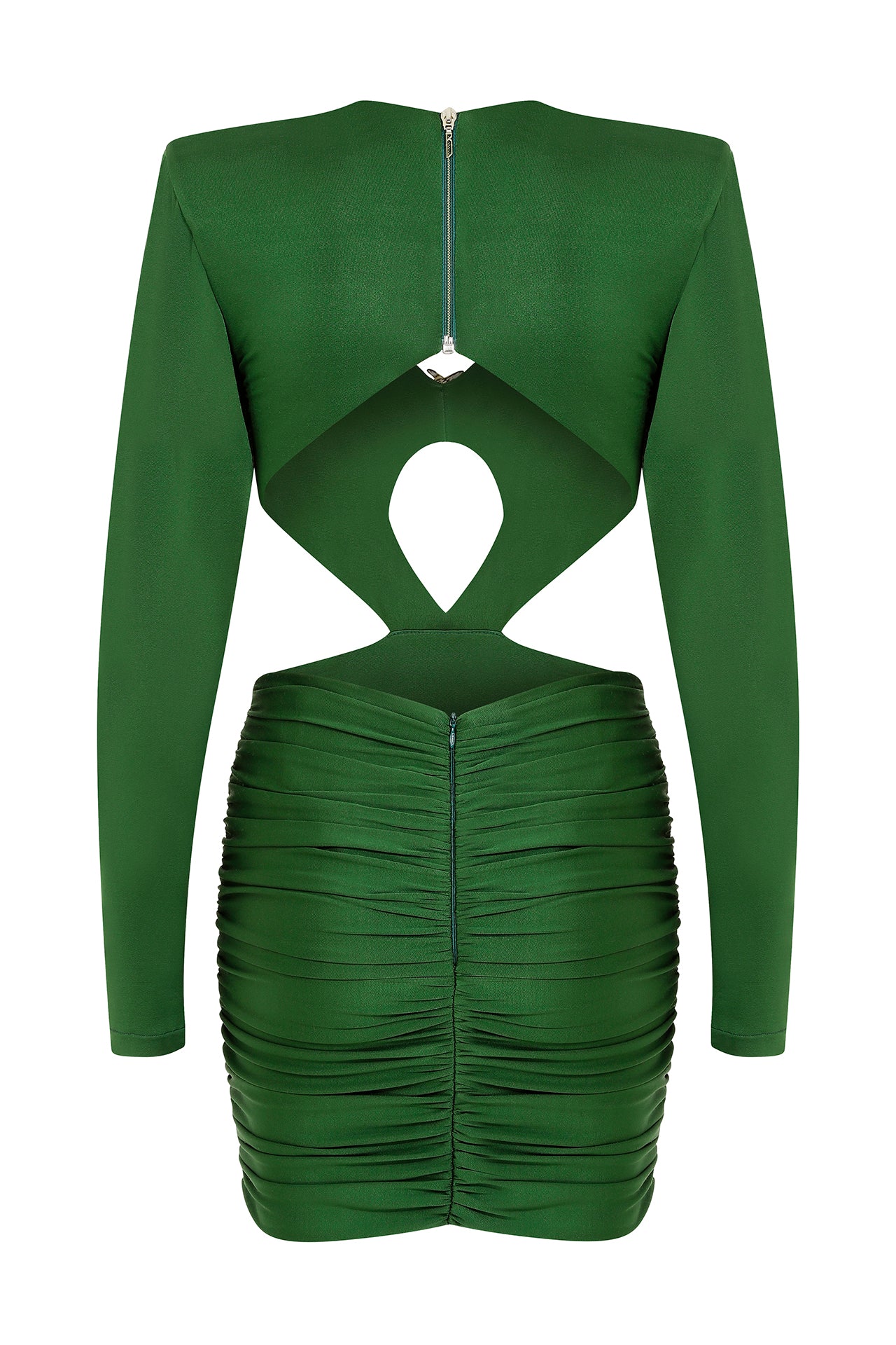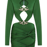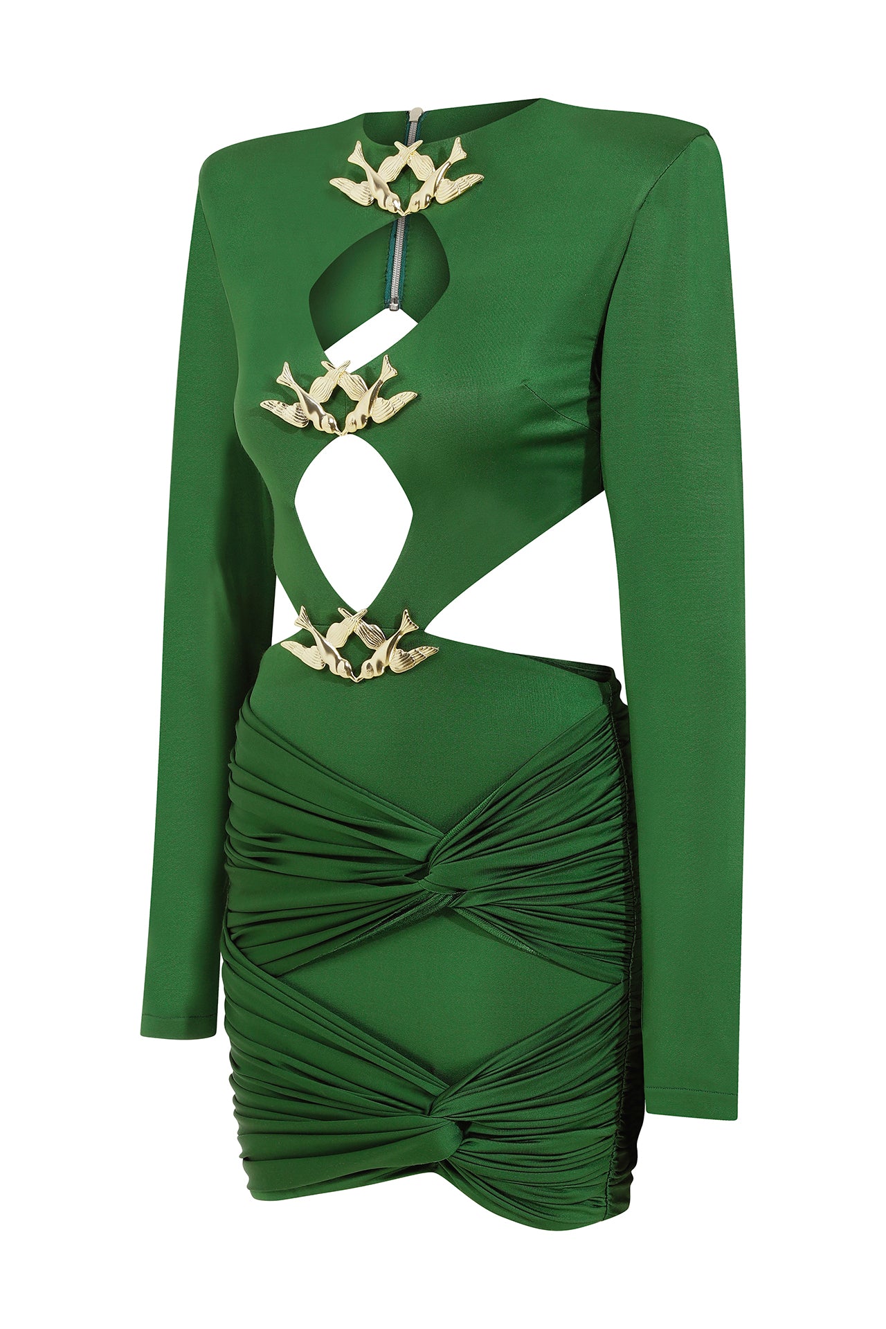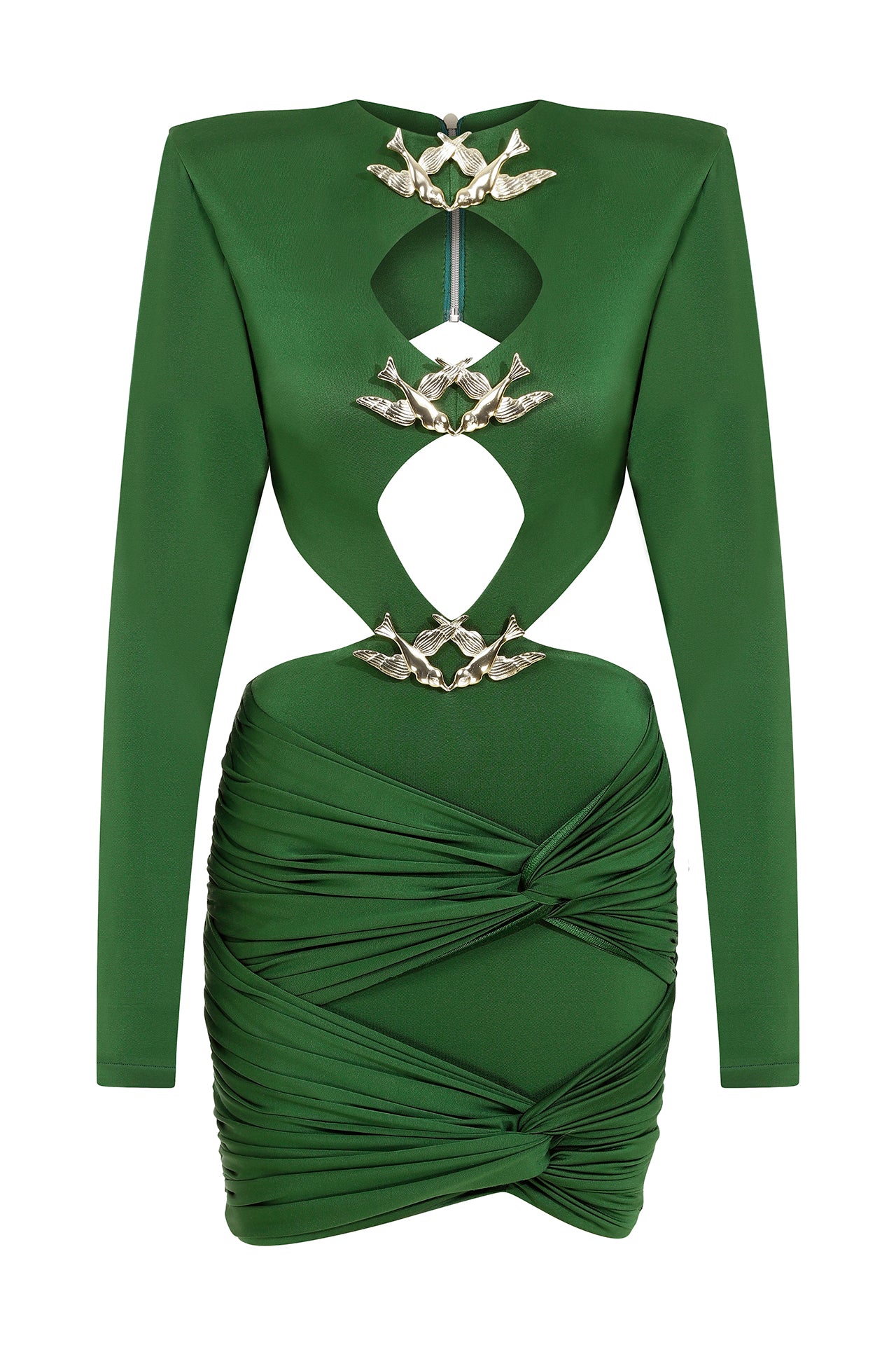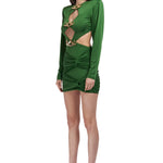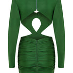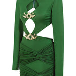 Cutout Long Sleeved Draped Mini Dress With Gold Buckles