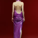 Degage Purple Sequined Maxi Dress with Halter Neck