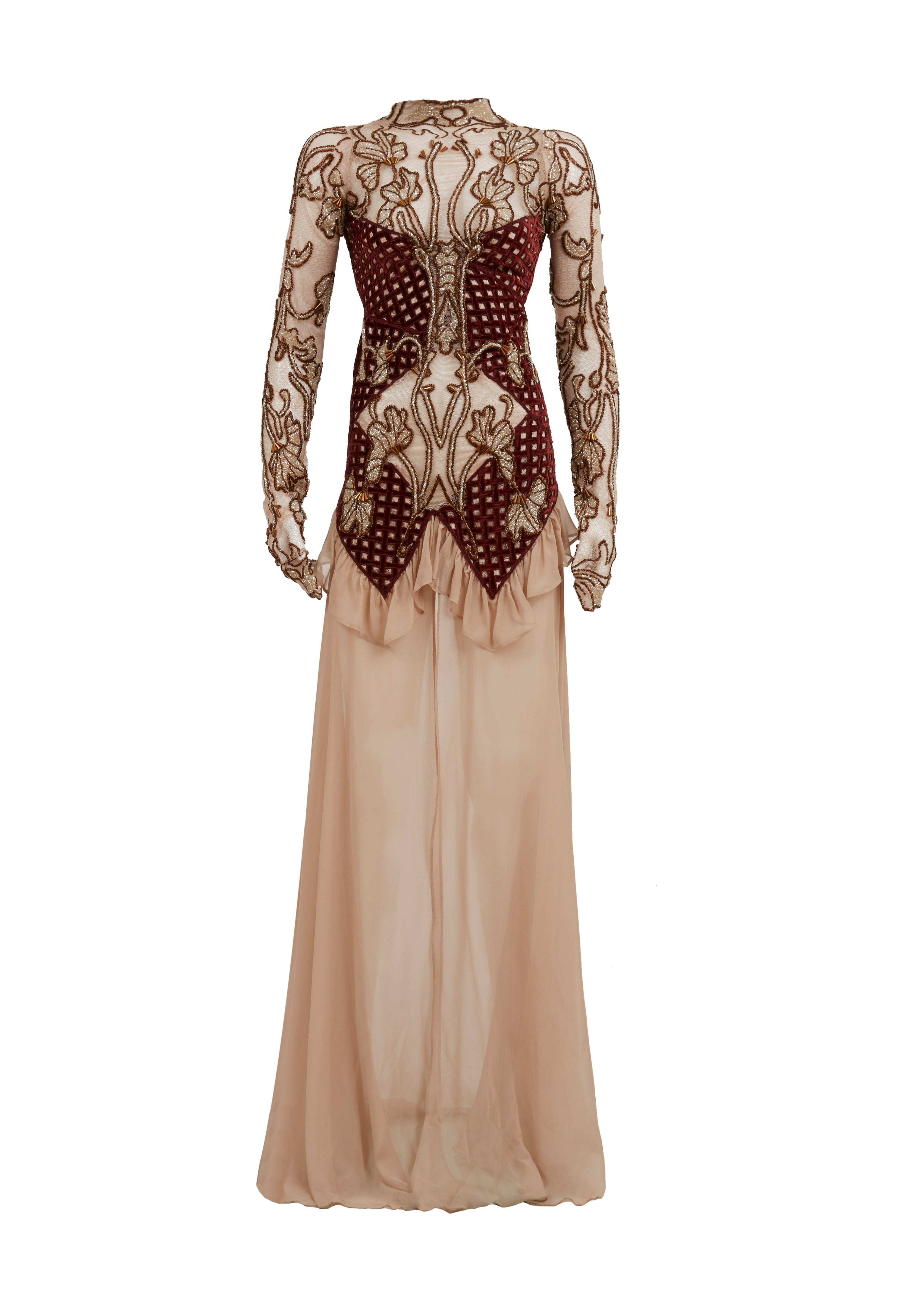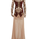 Embroidered Beige and Red Detailed Maxi Dress