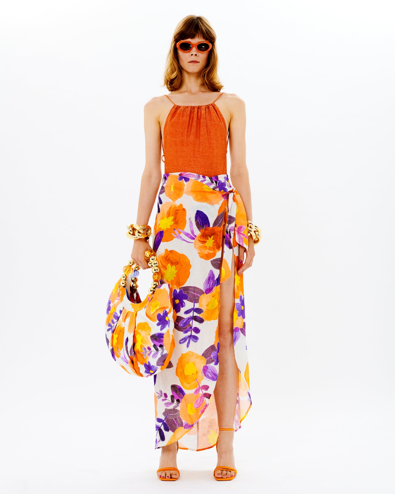 Floral Skirt With Slit Detail