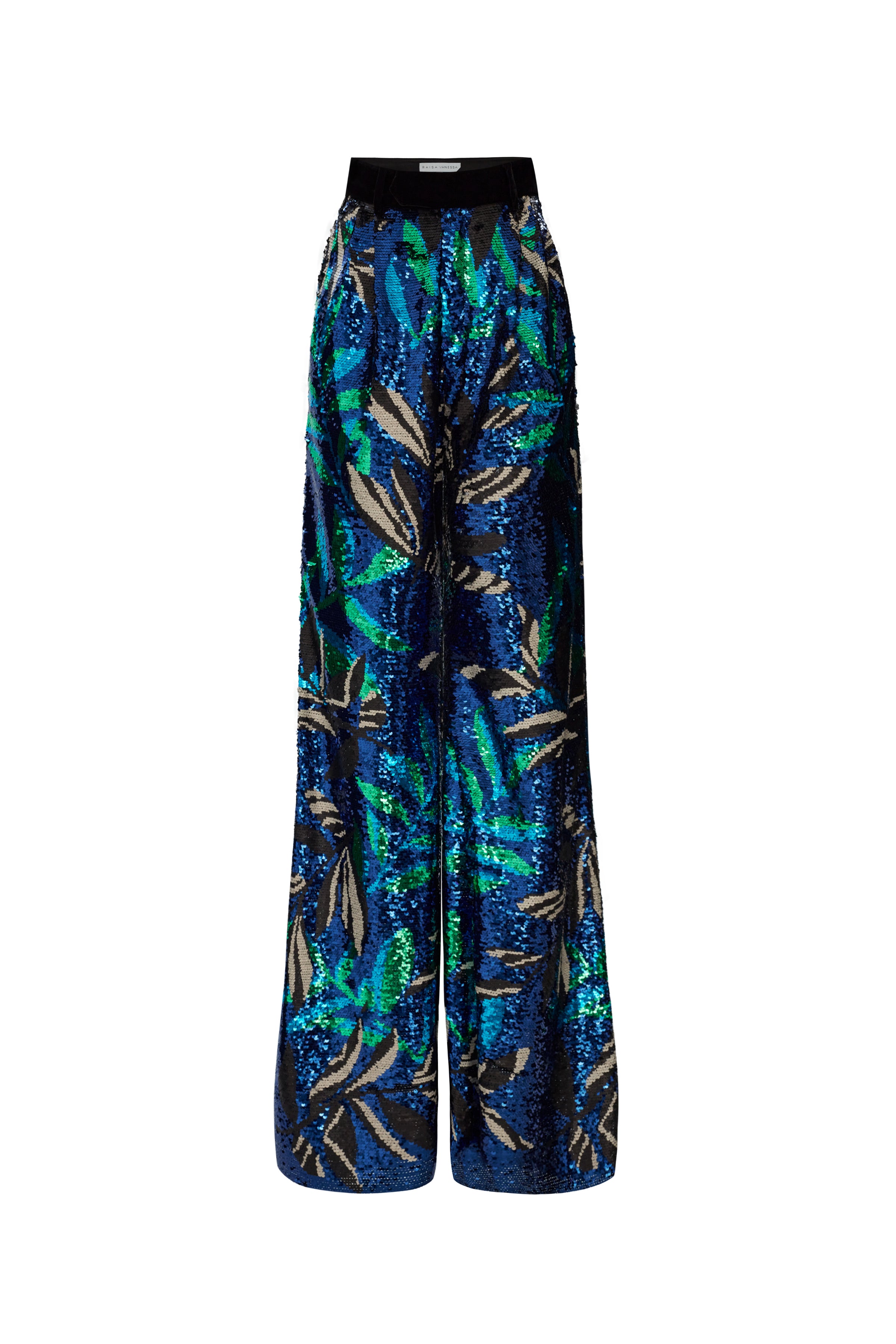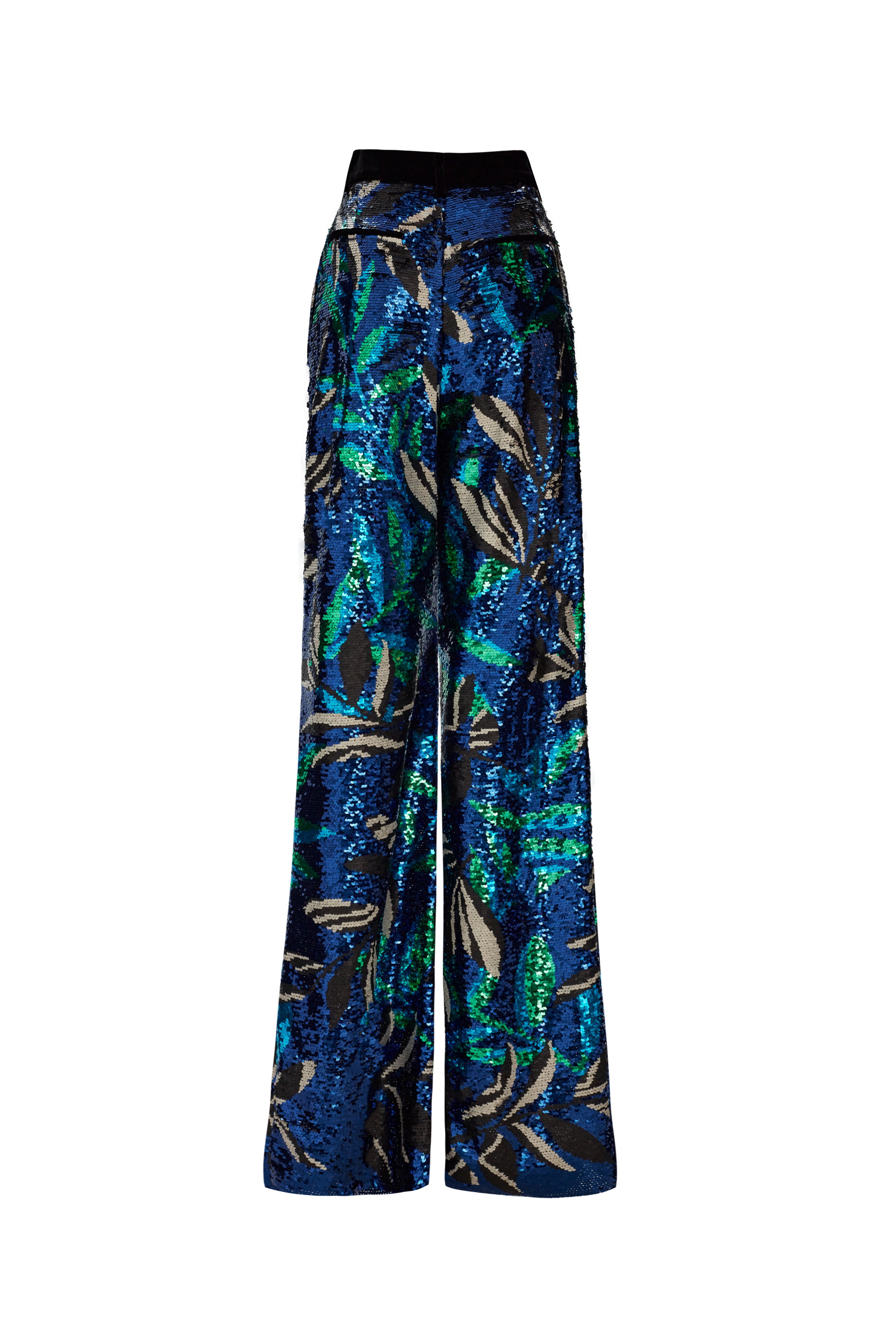 The Flower Patterned Sequin Woven Lycra Pants feature intricate floral patterns and shimmering sequins, offering a glamorous and eye-catching addition to your wardrobe.