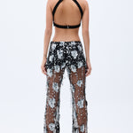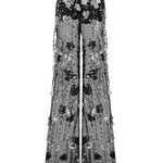 Flower Shaped Sequin Embroidered Black Net Flare Pants