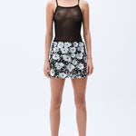 Flower Shaped Sequin Embroidered Black Net Mini Skirt