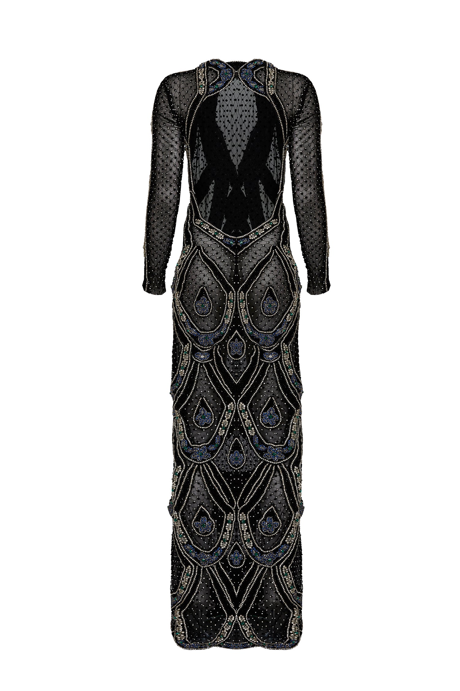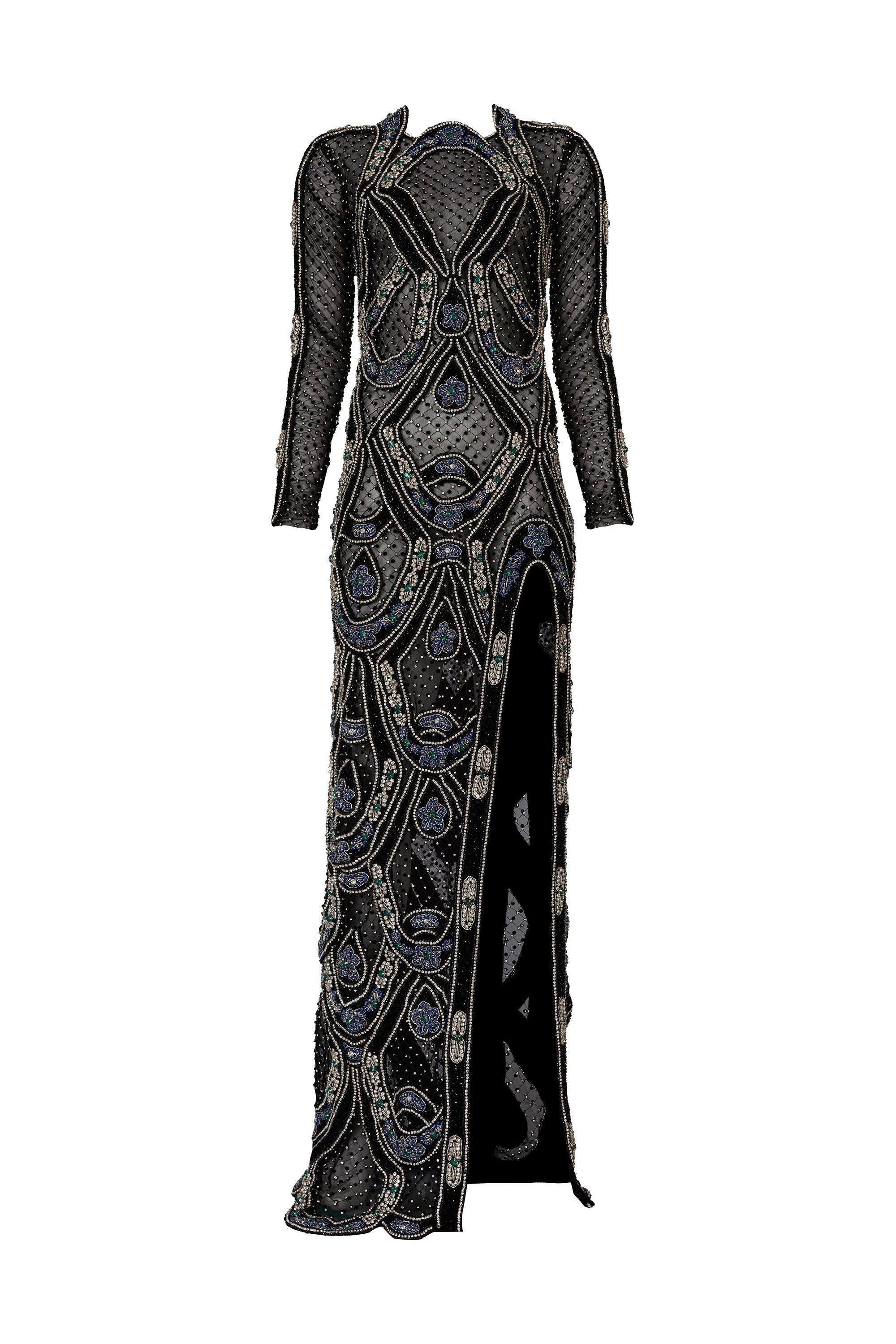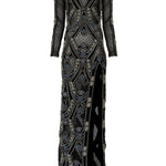 Full Embroidered Netted Velvet Long Dress