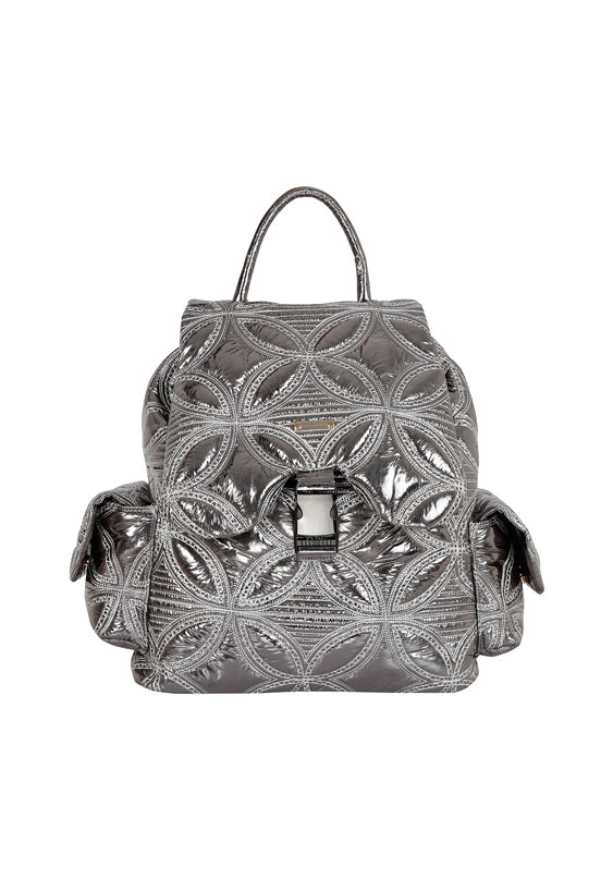 Patent Leather Embroidred Backpack