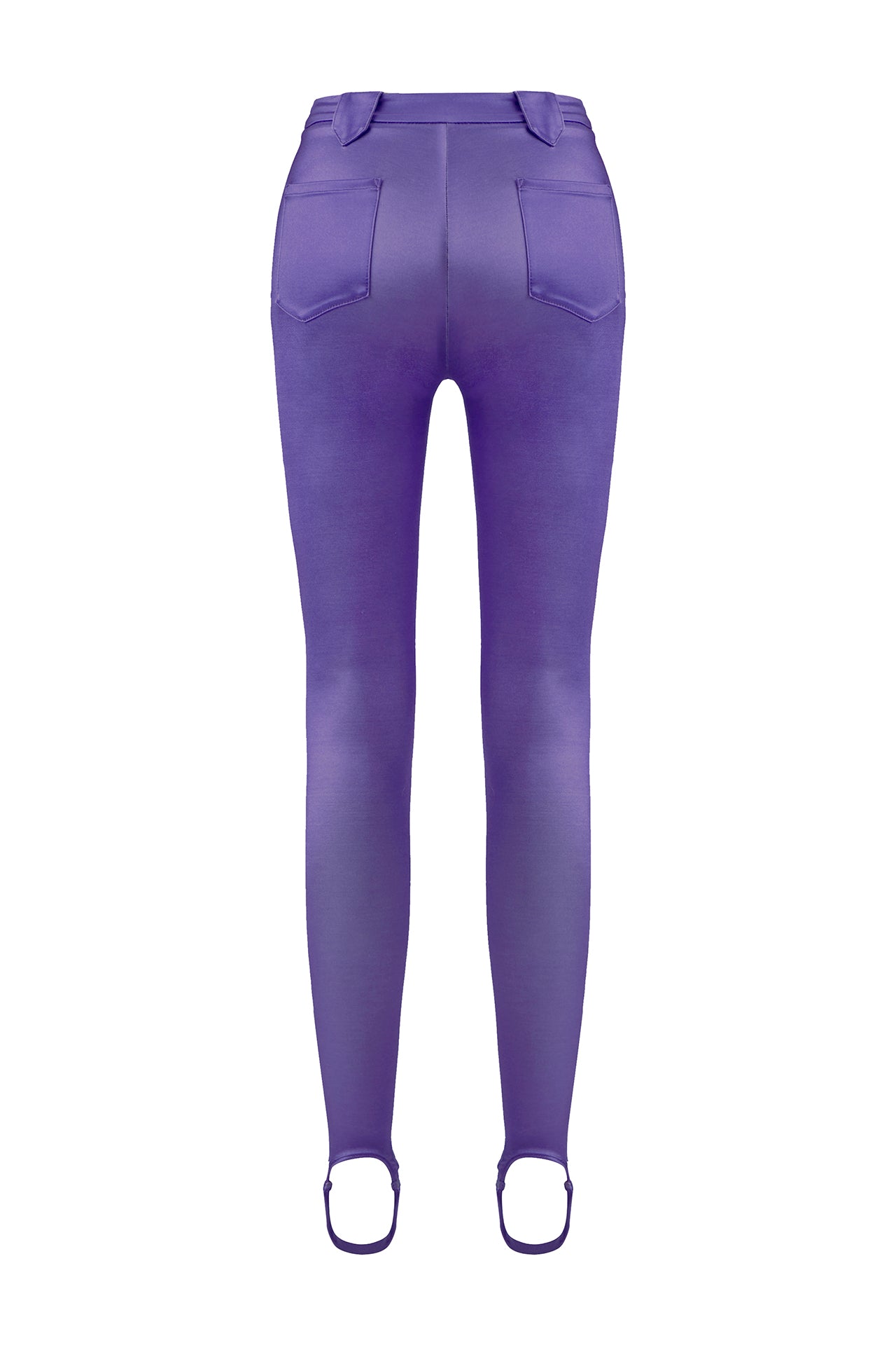 High-waist stretch pants crafted in a lustrous finish, featuring sleek stirrup hems and an open-toe cut that elongates the silhouette with modern edge.
