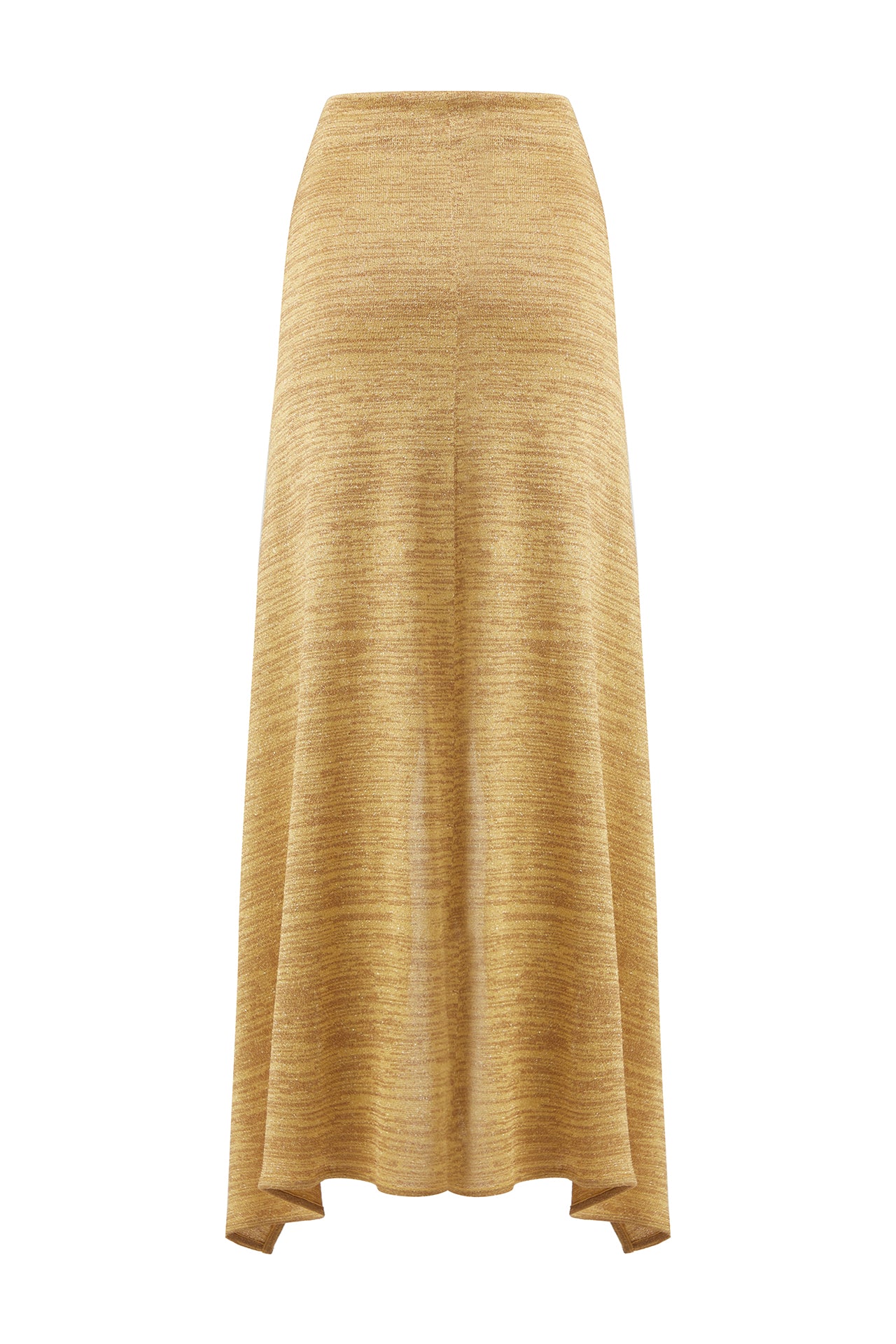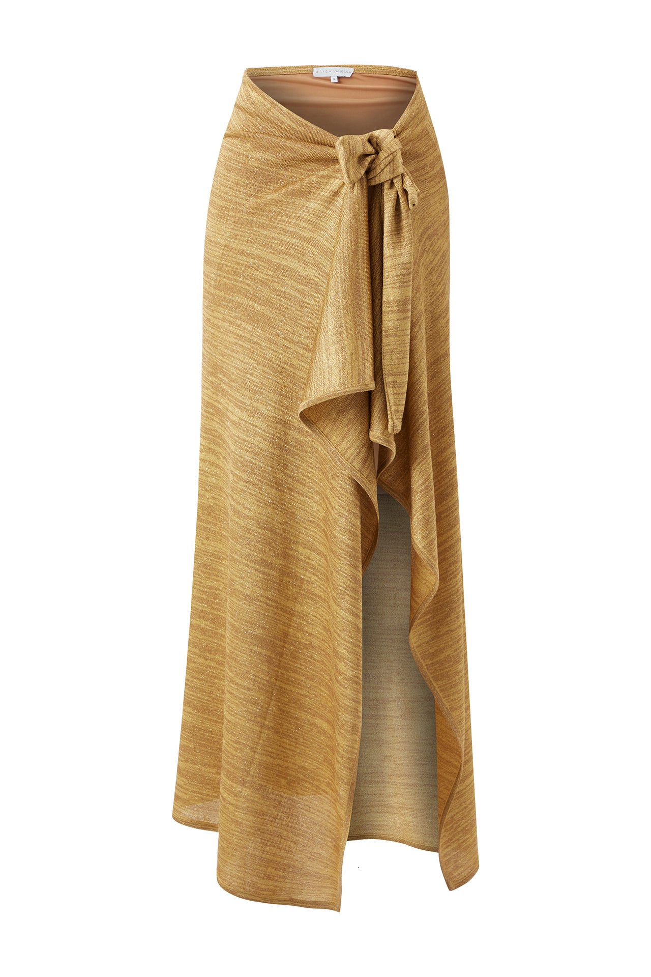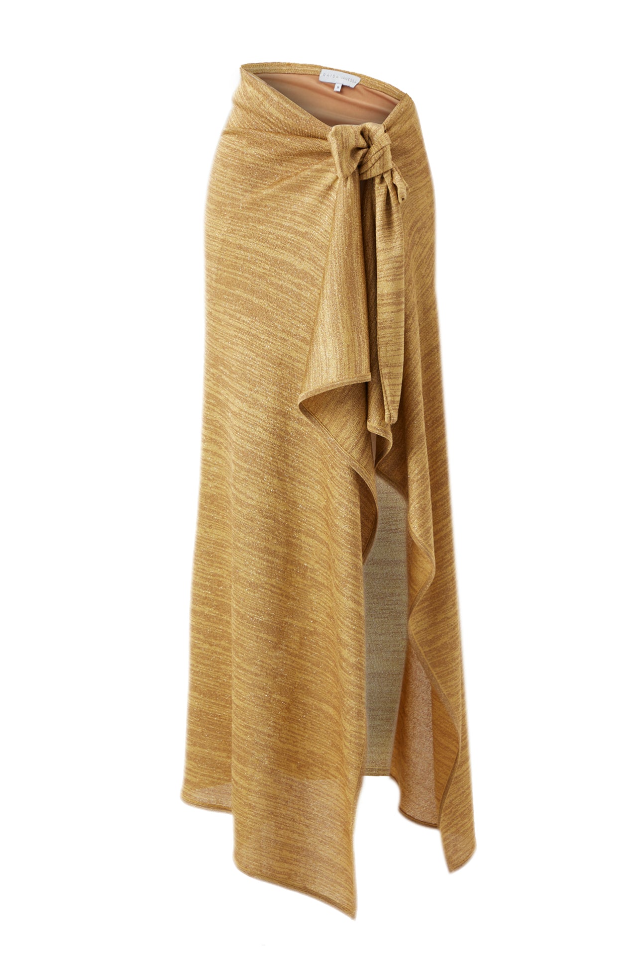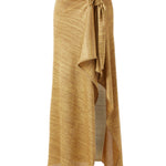 Glittered Knit Midi Skirt With High Slit and Bow Detail