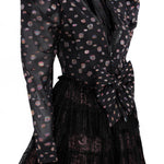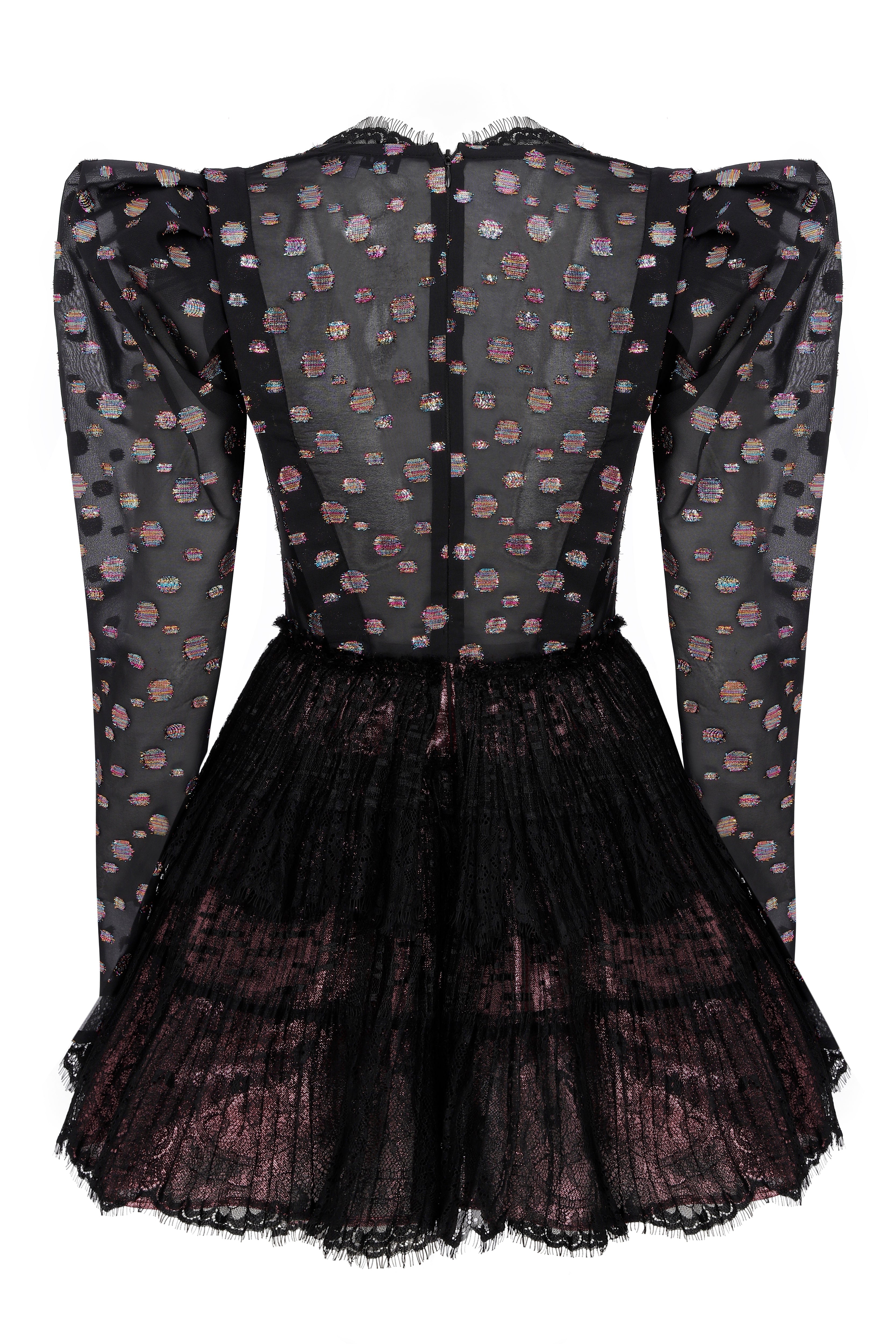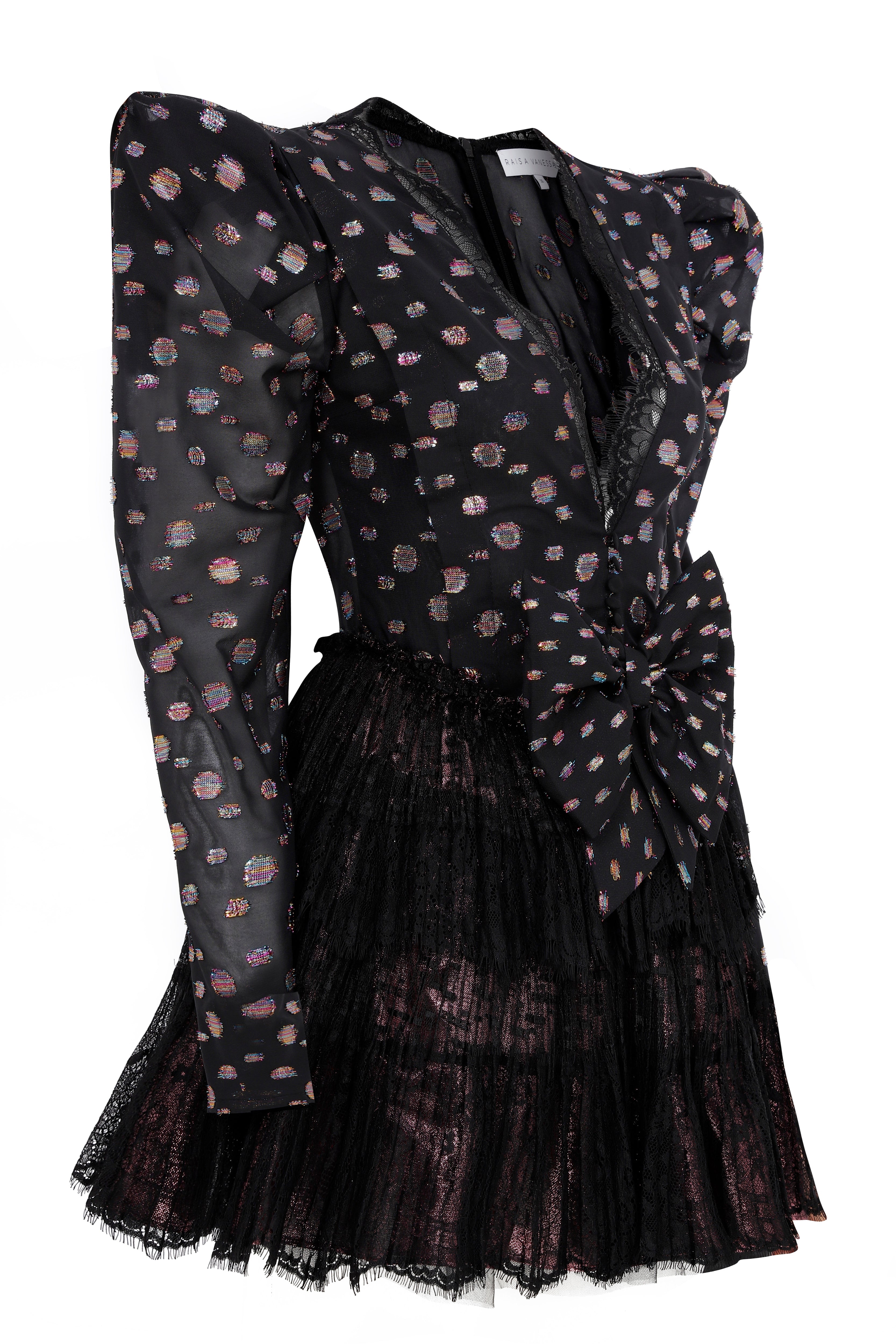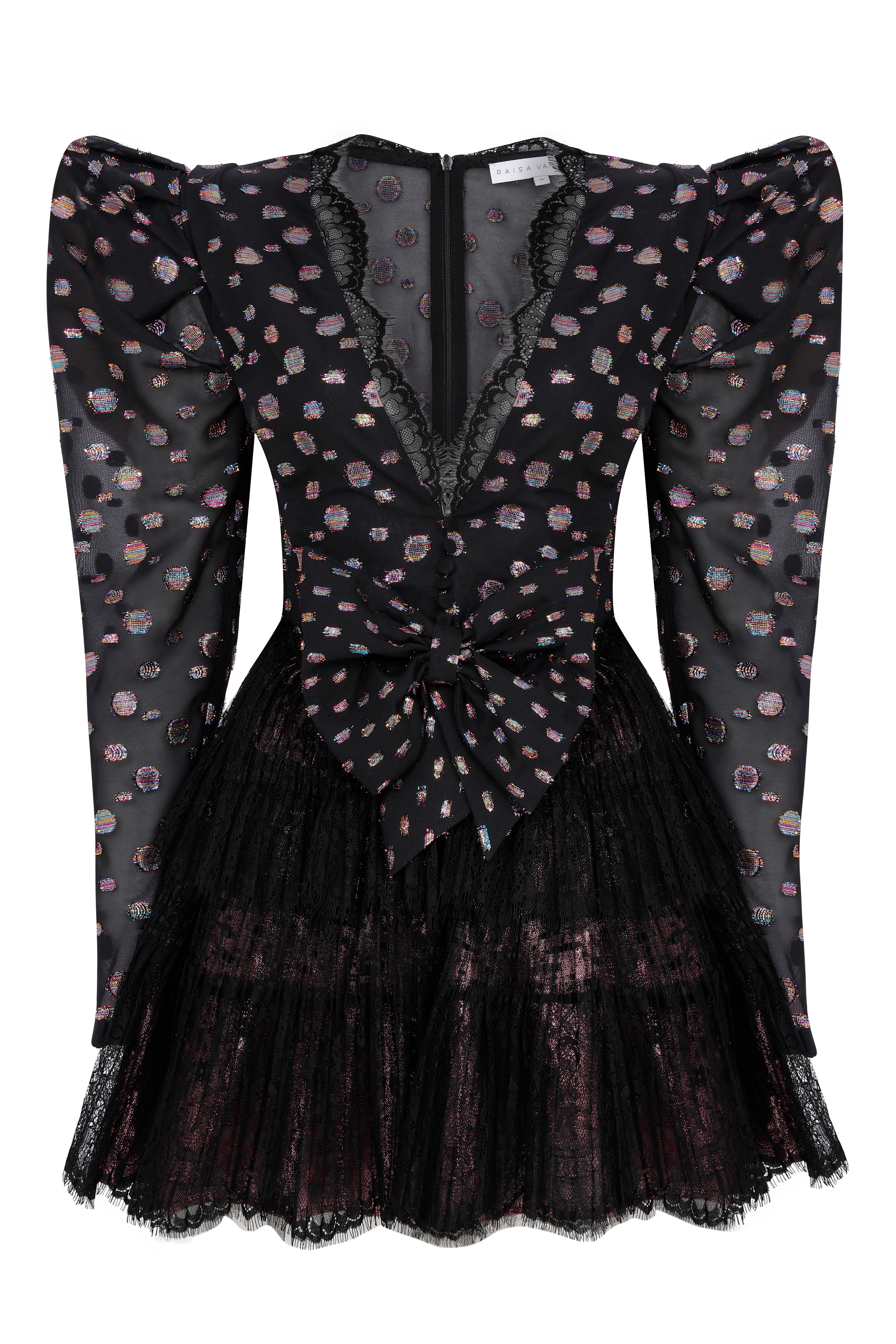 Glittered V-Neck Mini Dress with Lace and Bow Detail