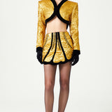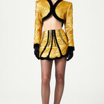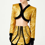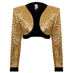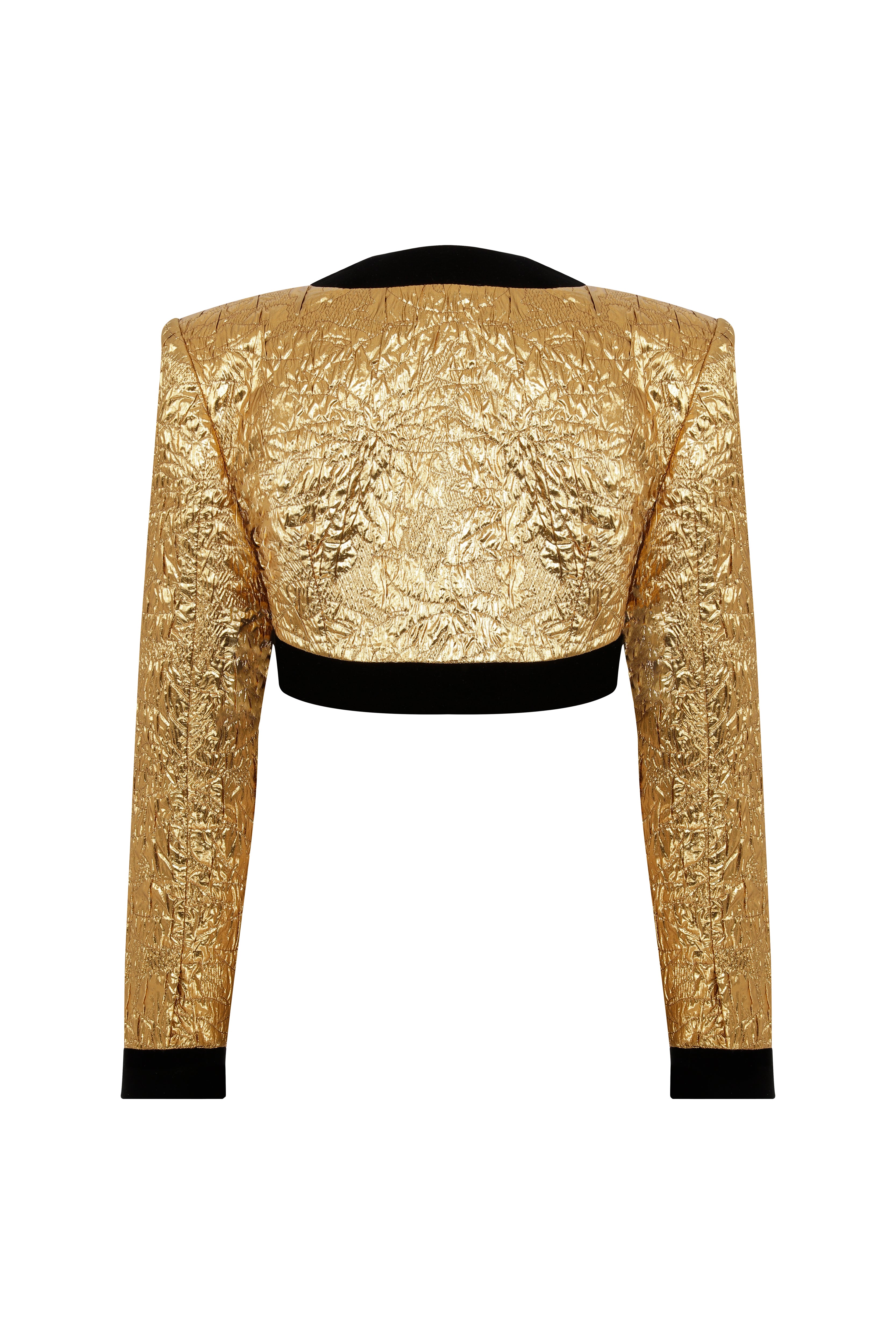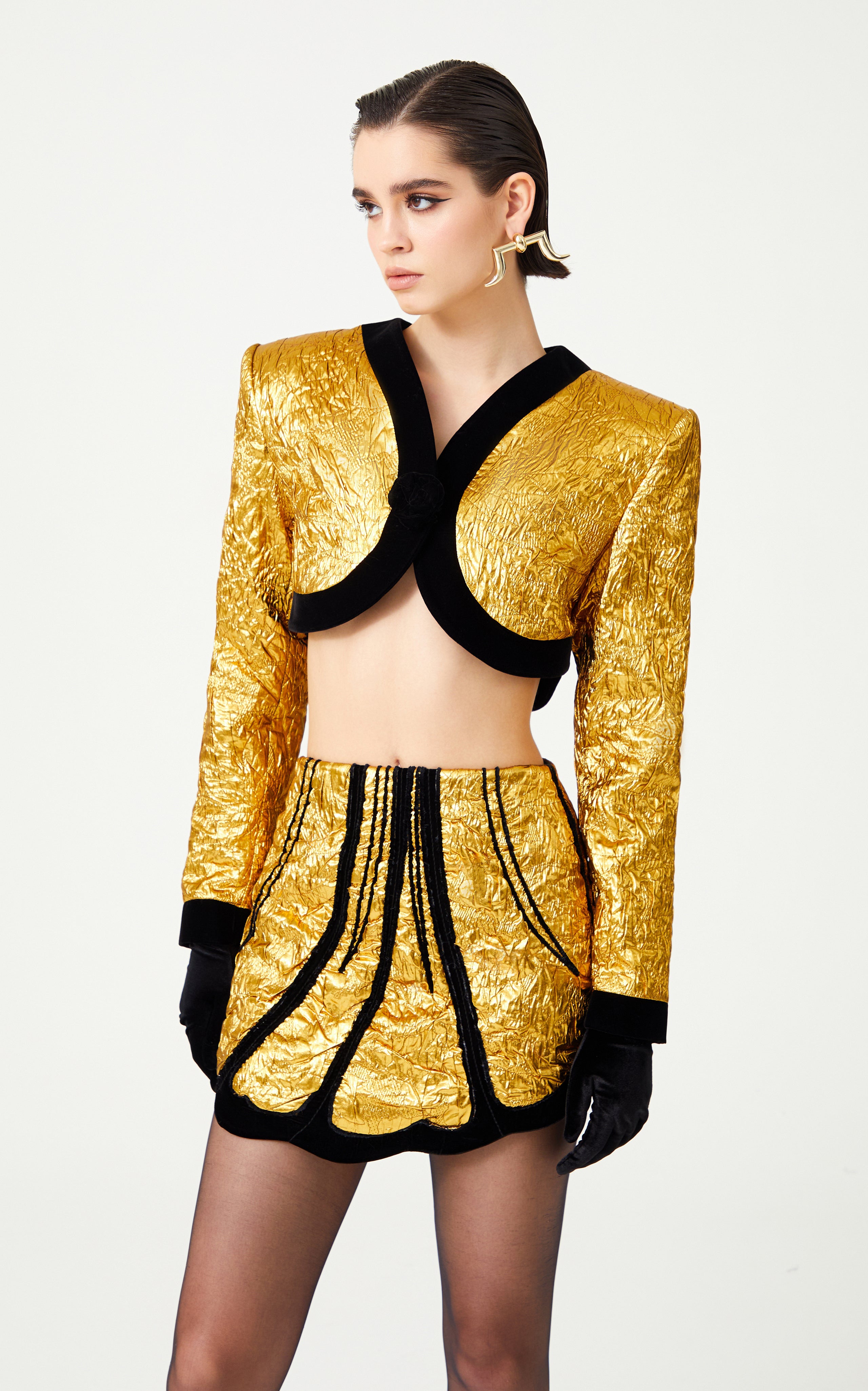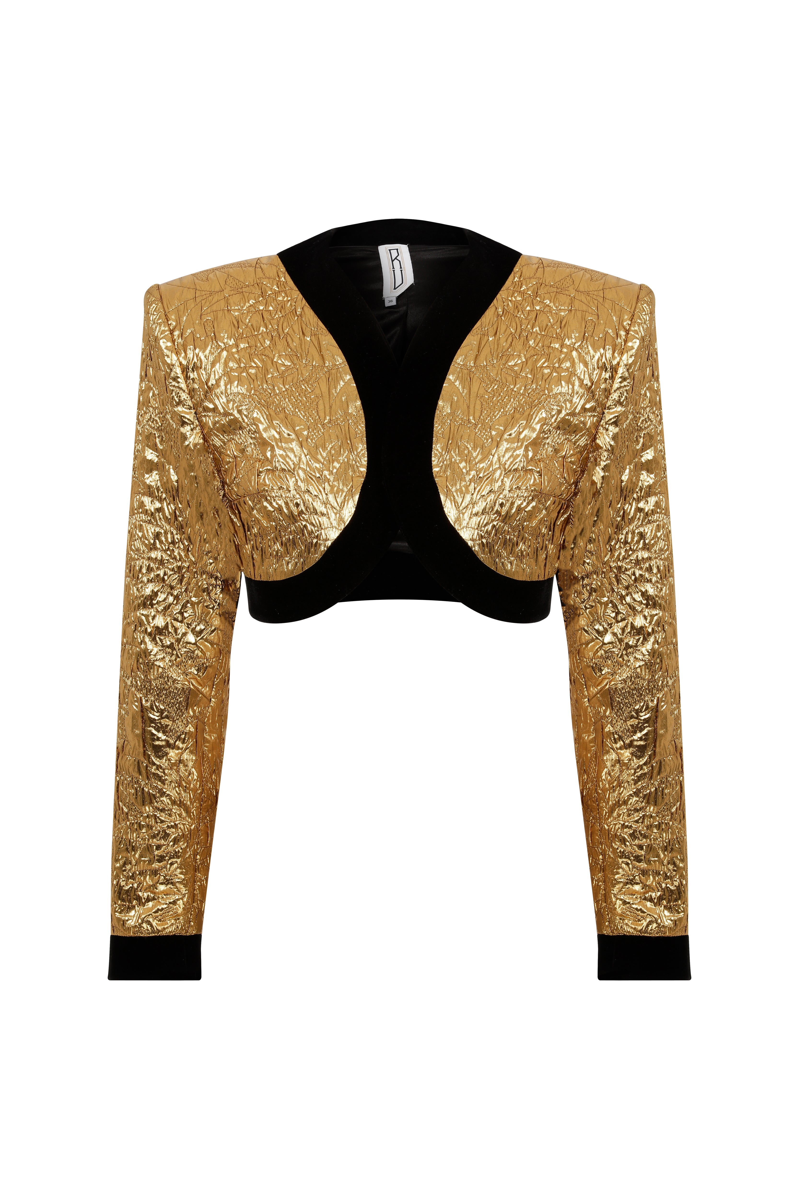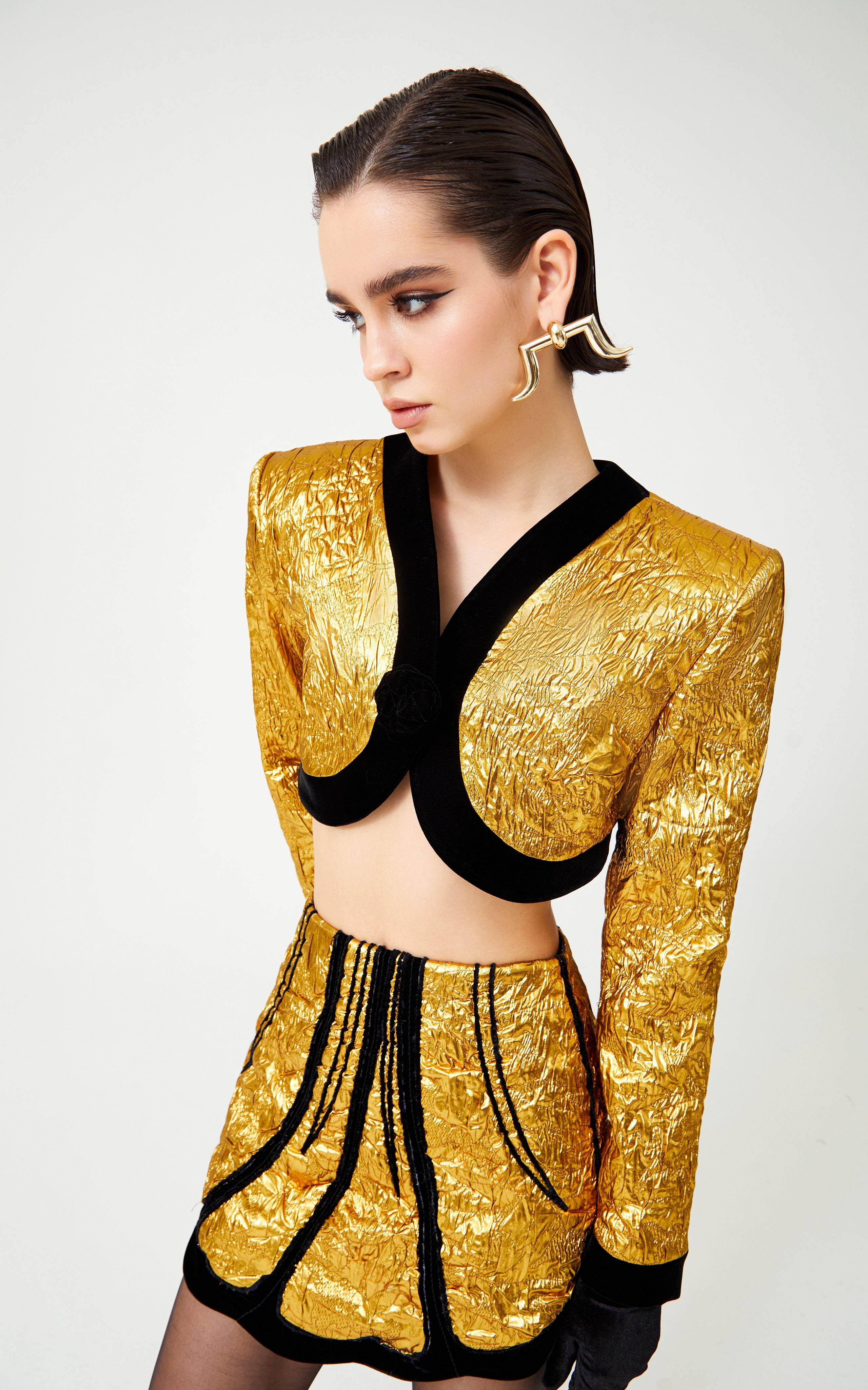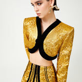 Gold Art-Deco Styled Mini Jacket With Black Velvet Details