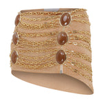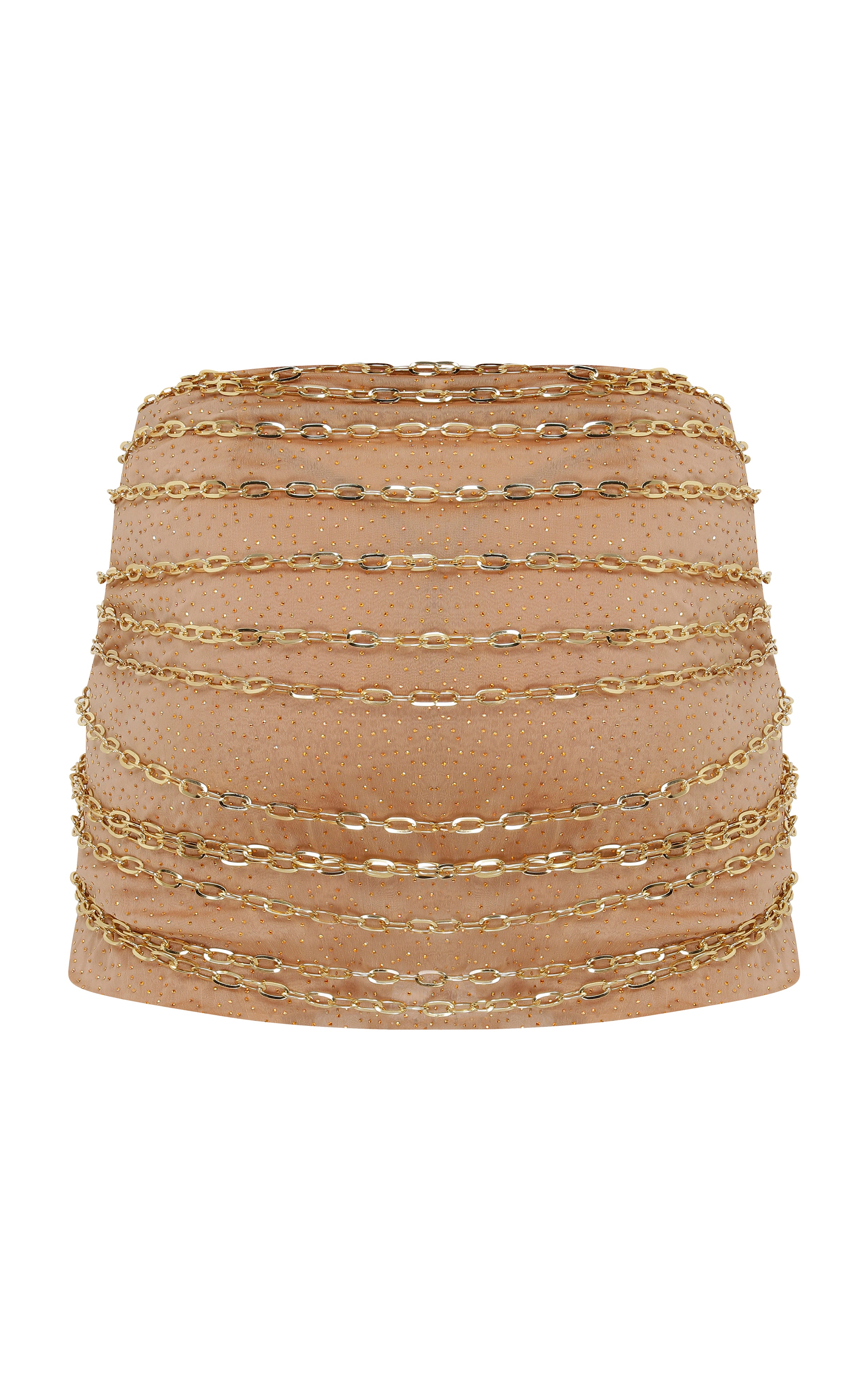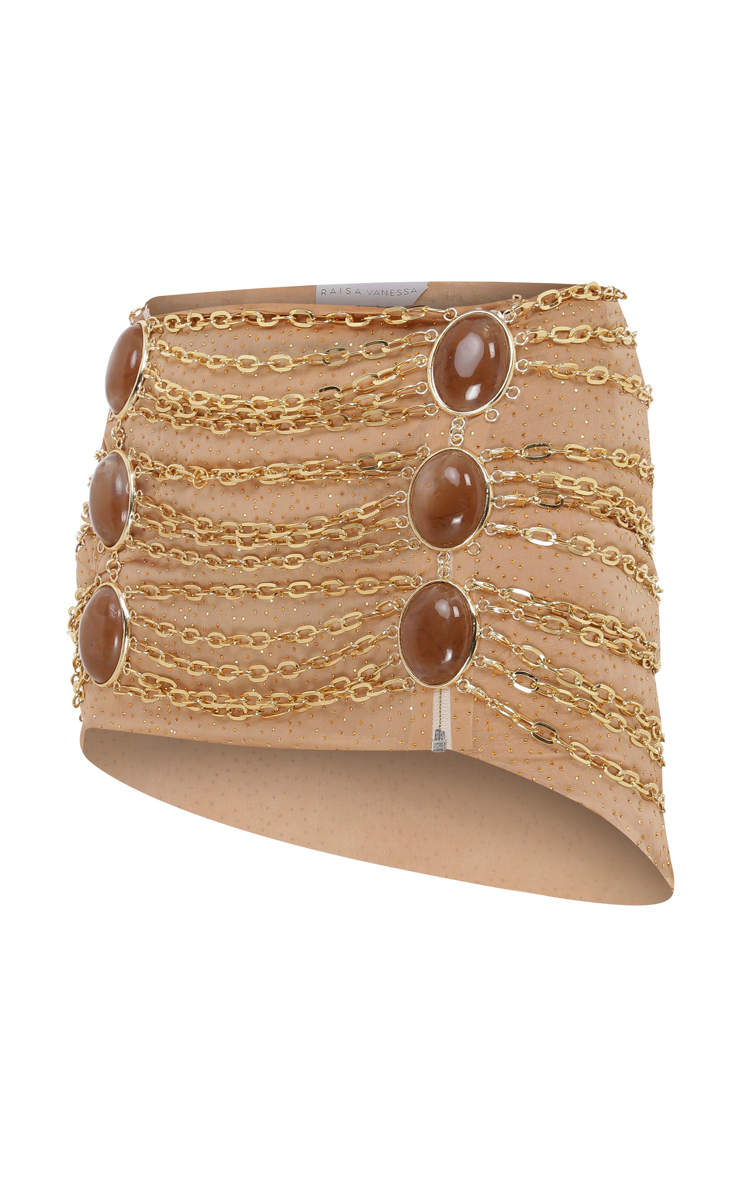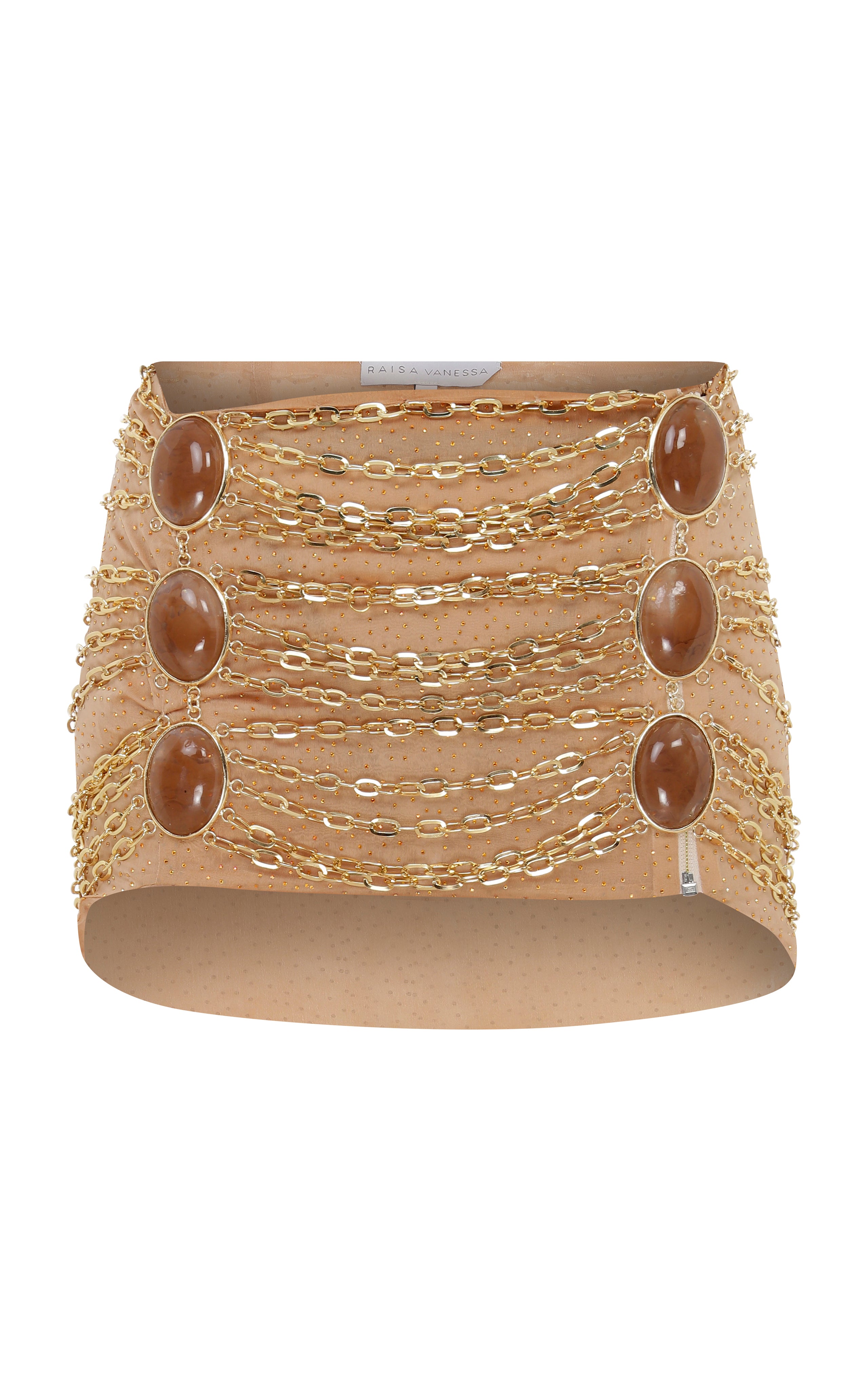 Gold Chain and Rhine Stone Chiffon Mini Skirt With Gemstone Details