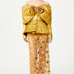 Gold Guipure Polka Dot Embroidered Maxi Skirt With Mini Lining