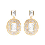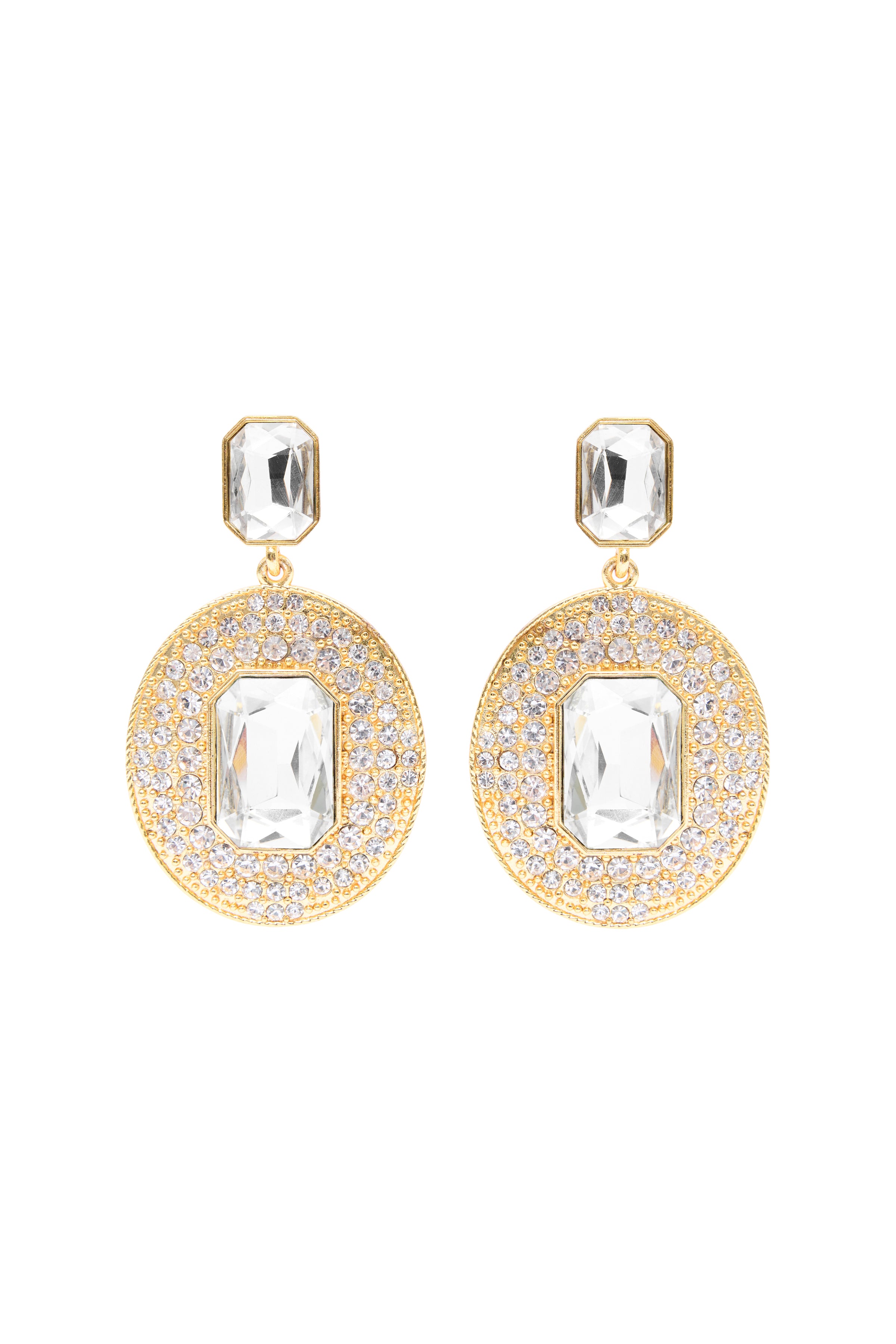 These gold metal earrings combine the warmth of a golden base with the brilliance of crystals and silver stones. A striking fusion of tones for elevated glamour.