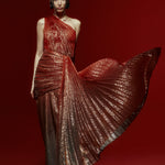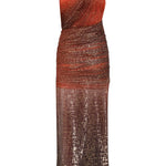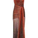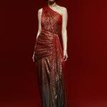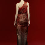 Gradient Shimmering Draped Midi Dress With One Shoulder