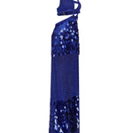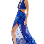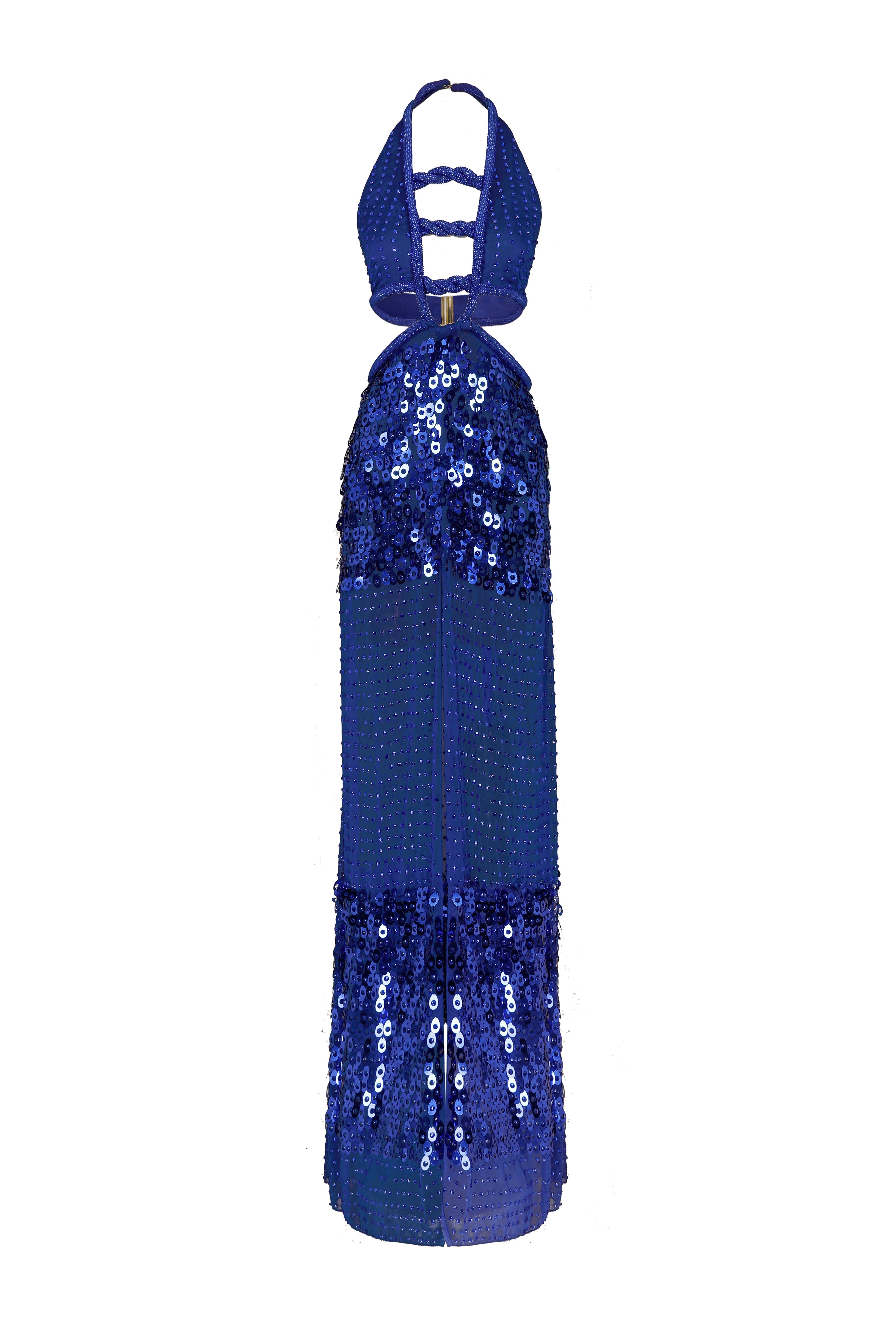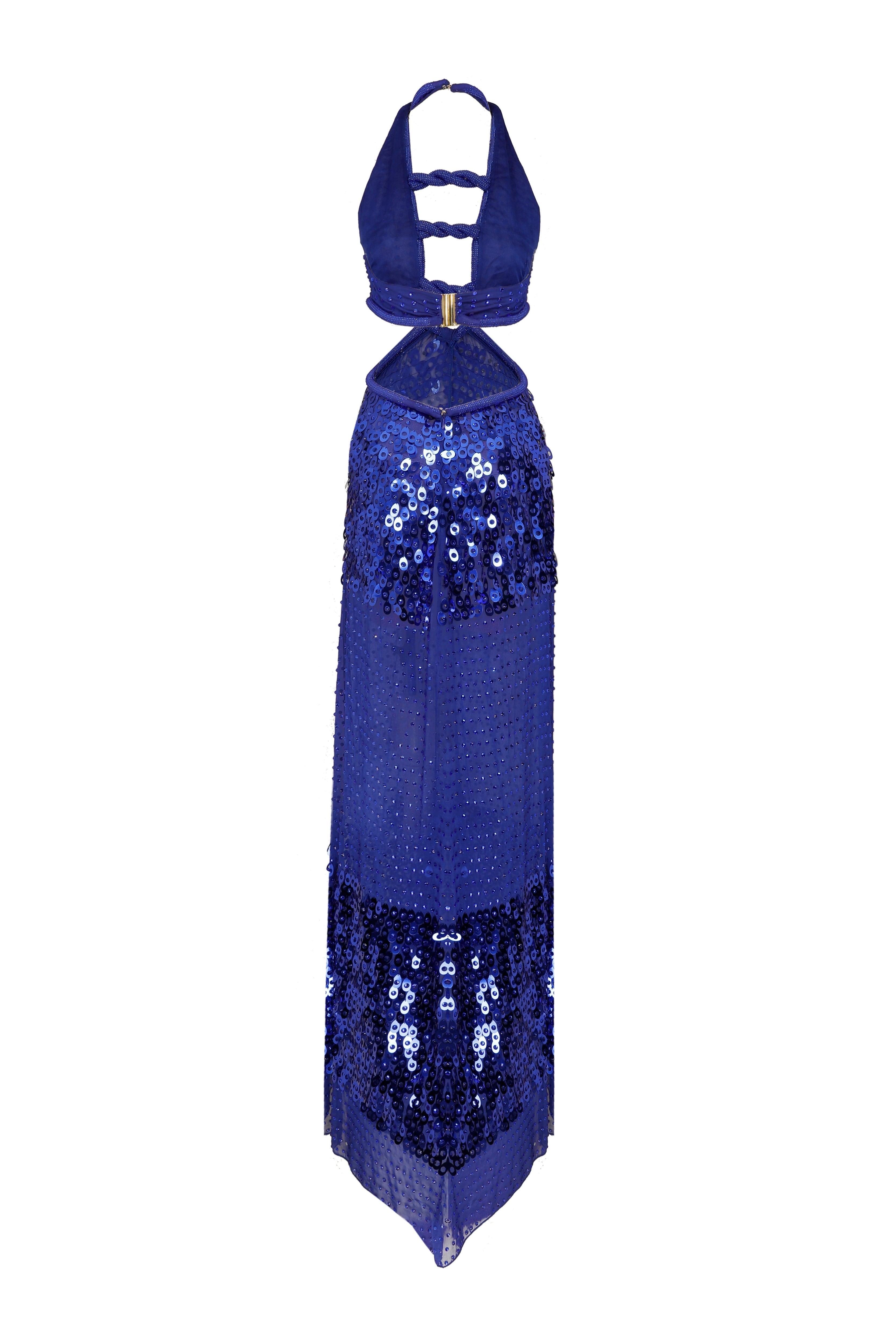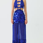 Halter Neck Crystal Embroidery Chiffon Maxi Dress