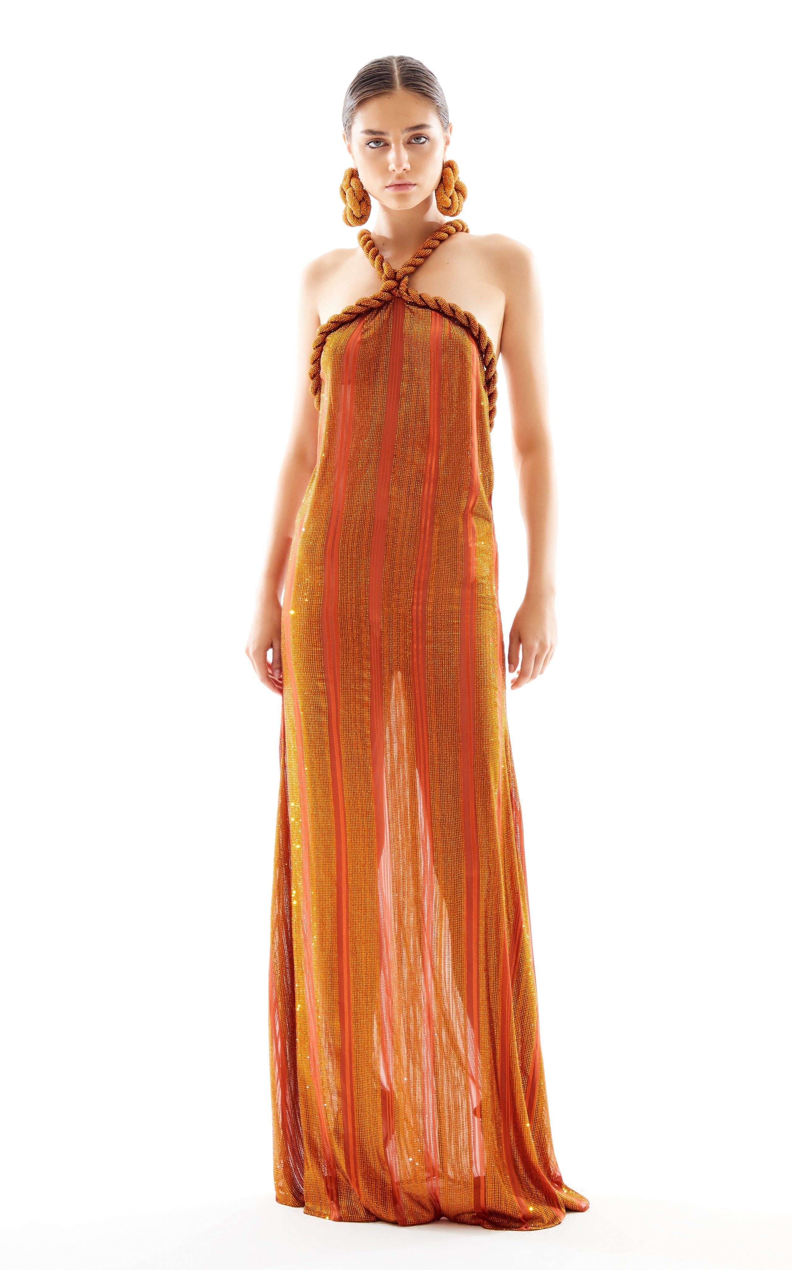 Designed with authentic colors decorated with sparkles, this dress is finished with a cross back detail.