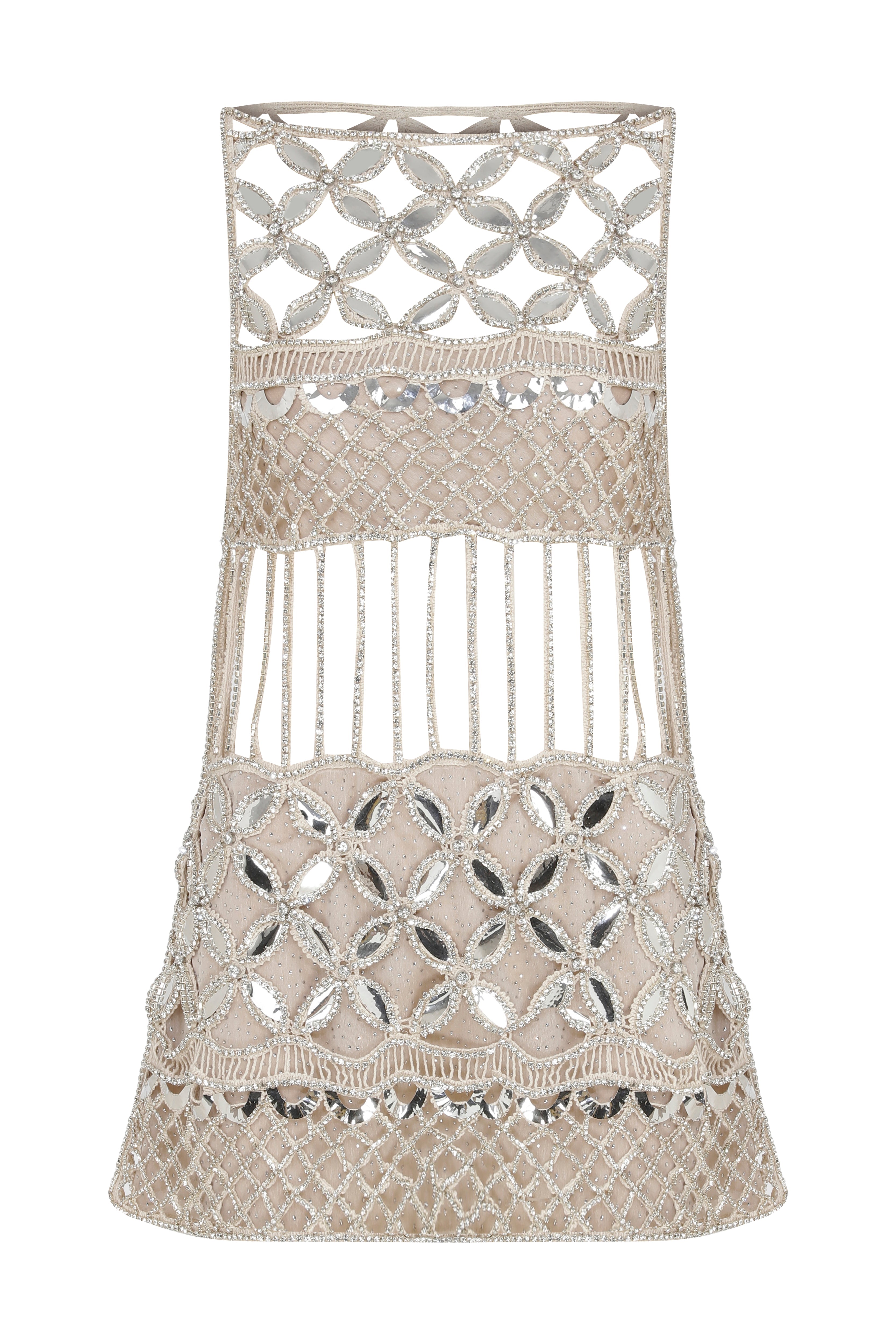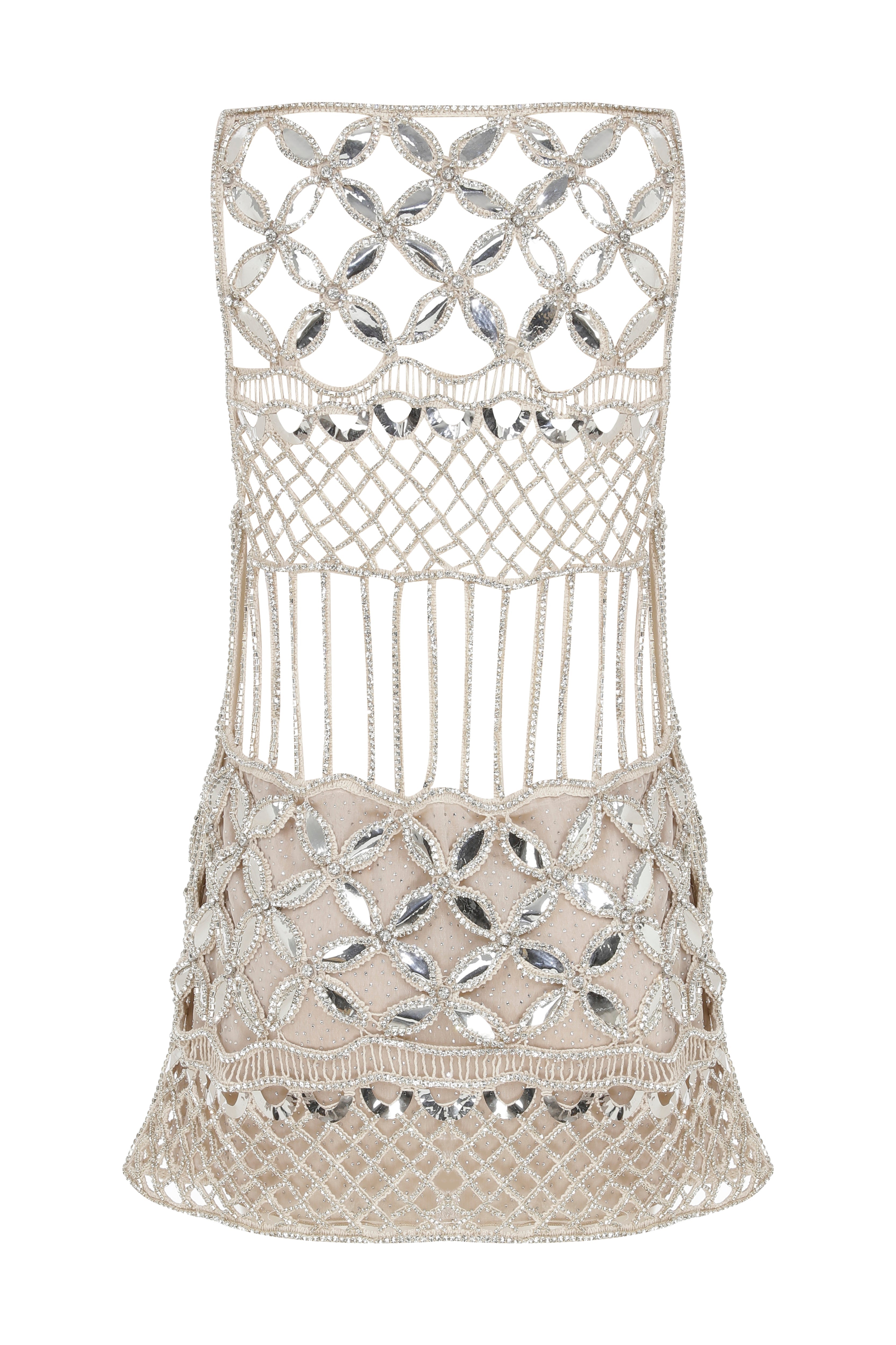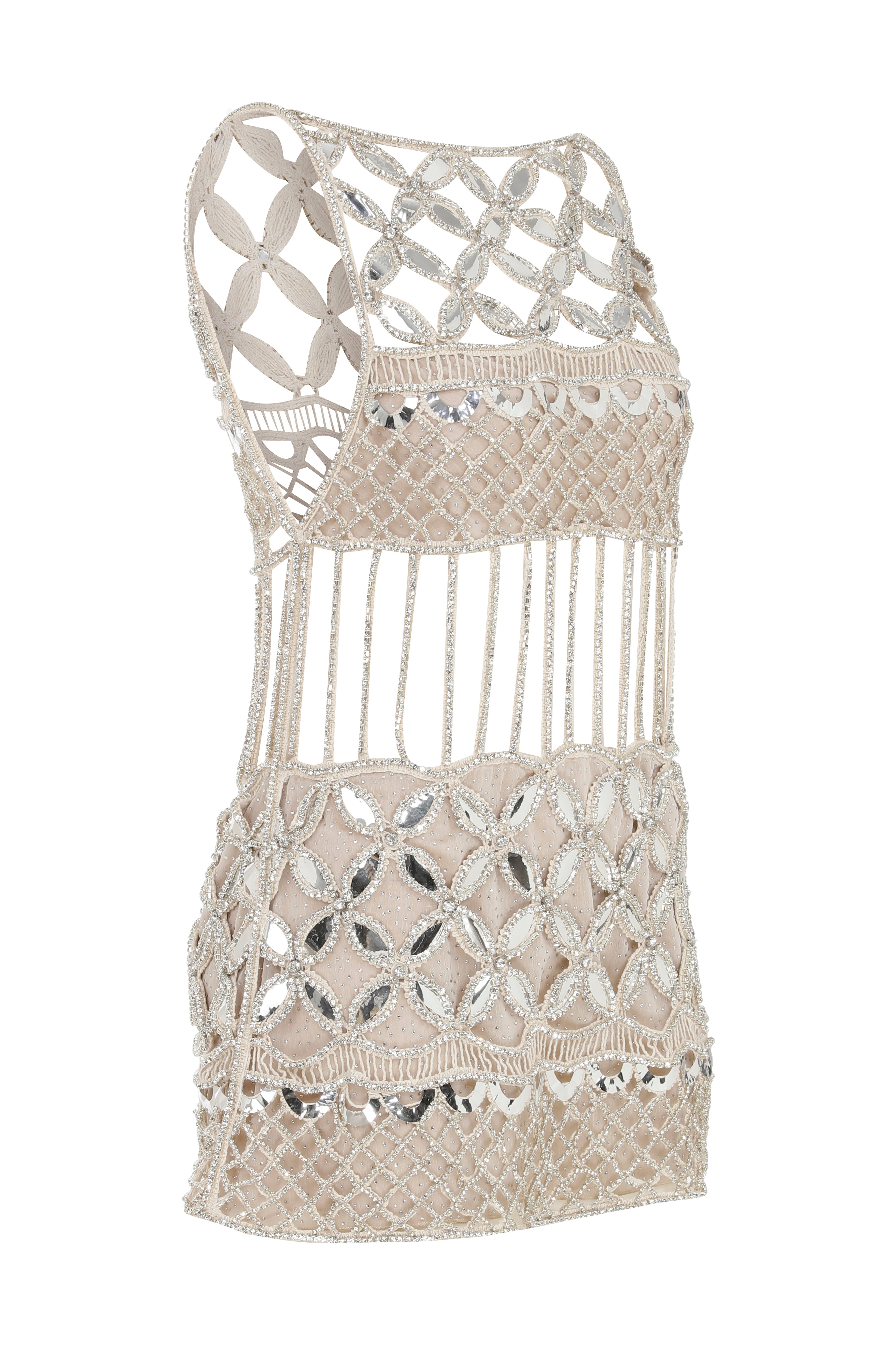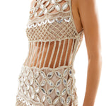 Hand Embroidered Crystal Embellishement Mini Dress with Hologram Details