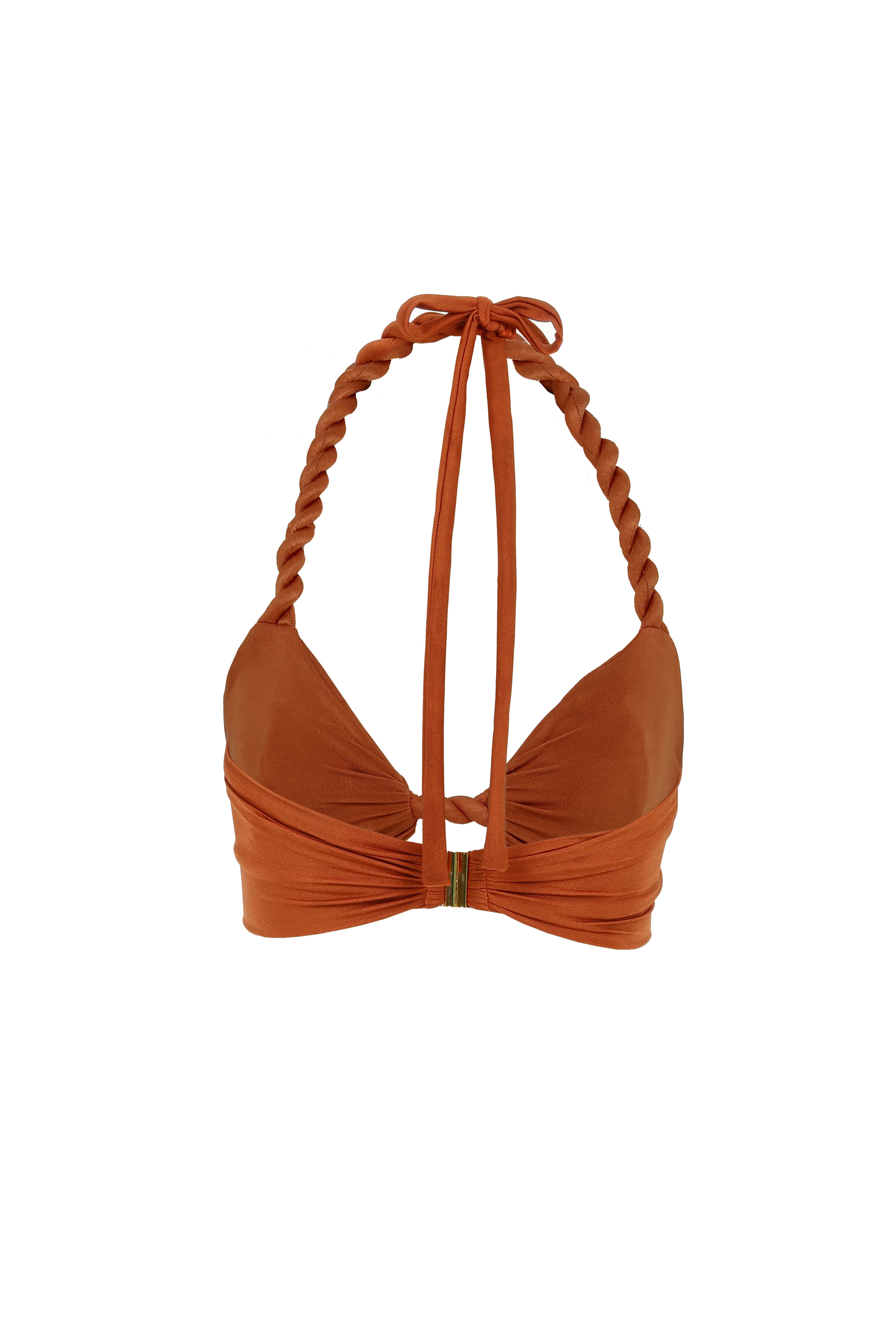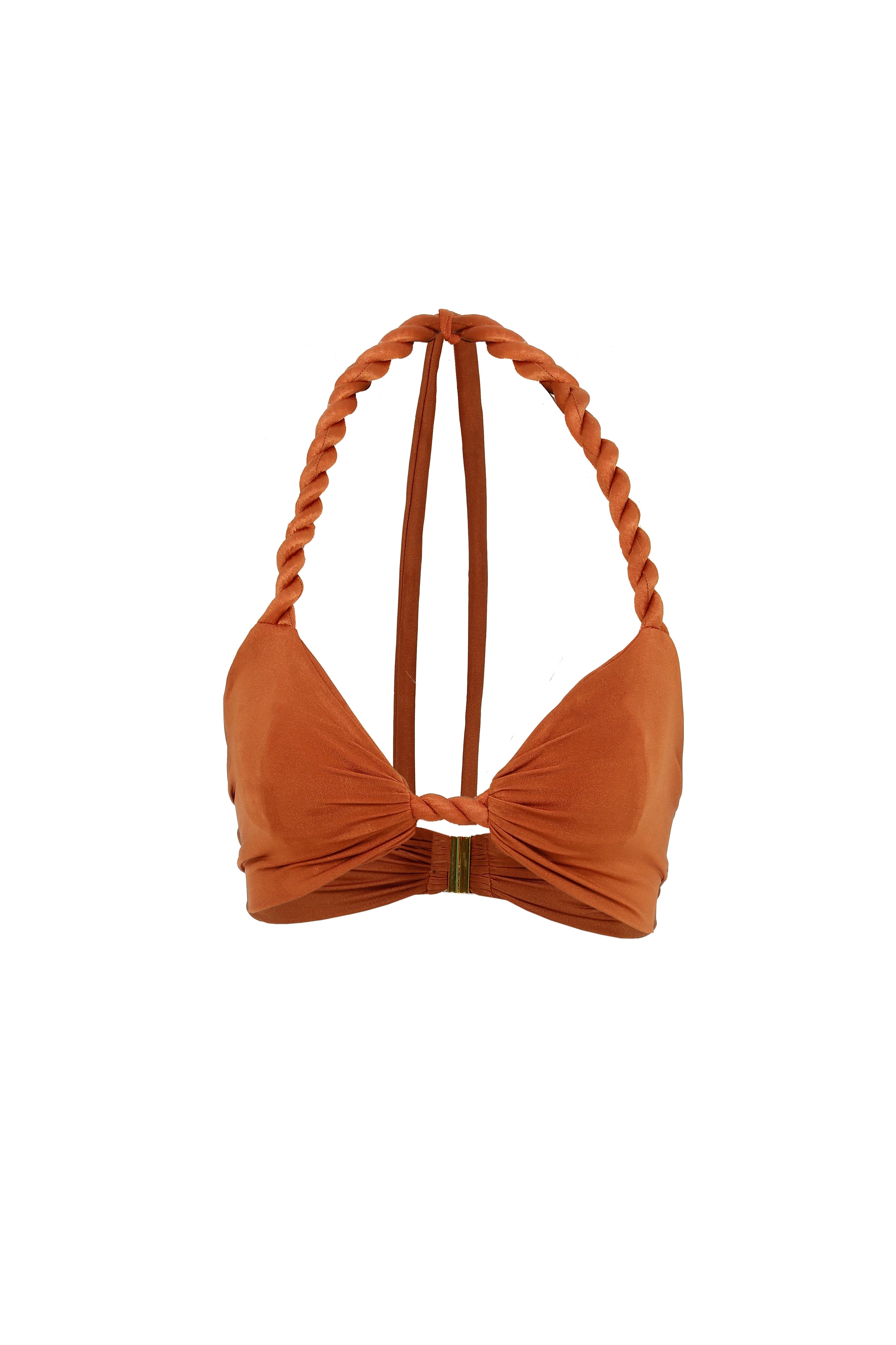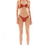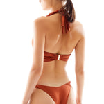 This bikini set features a hip-skimming bikini bottom and a halter neck bikini top.