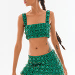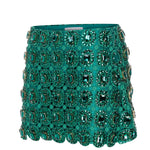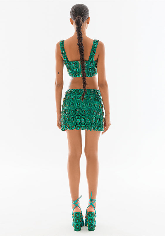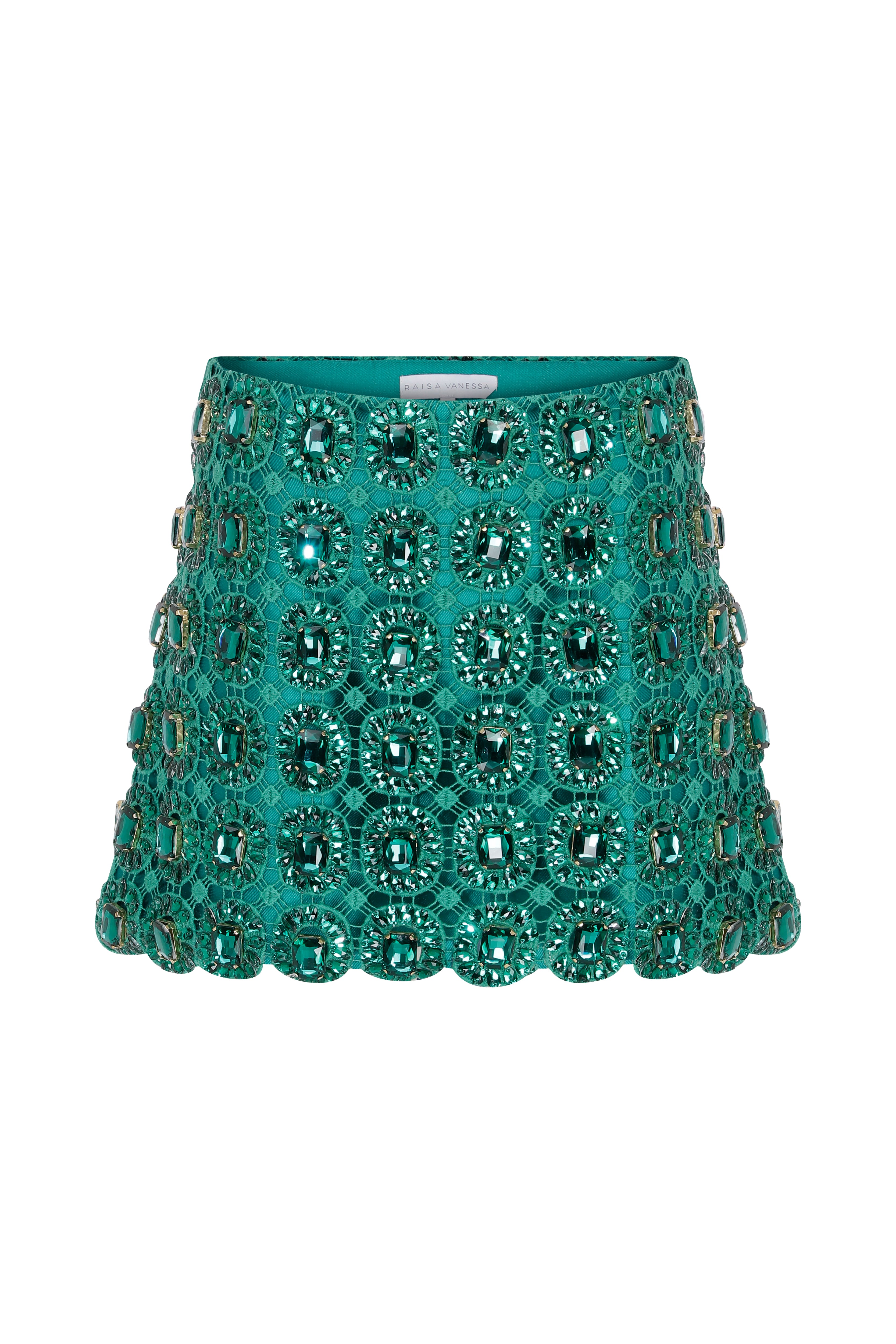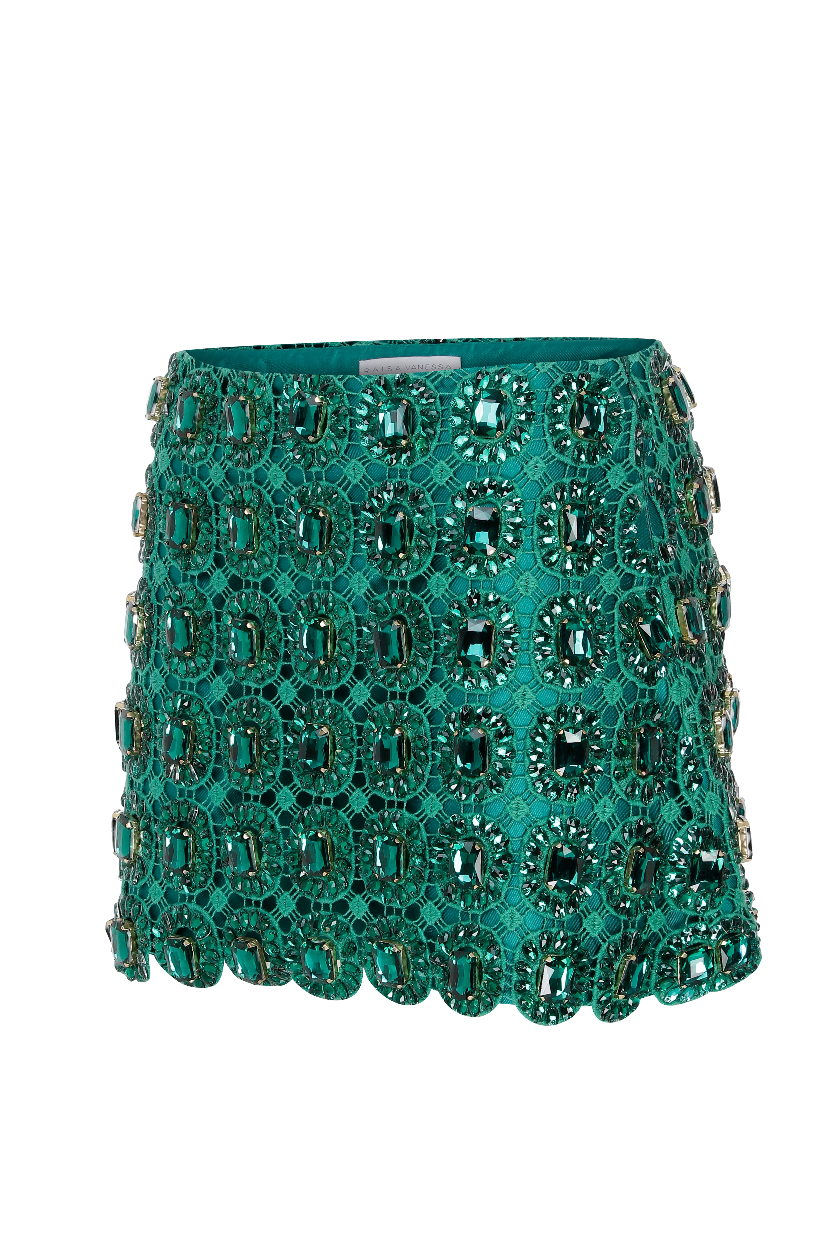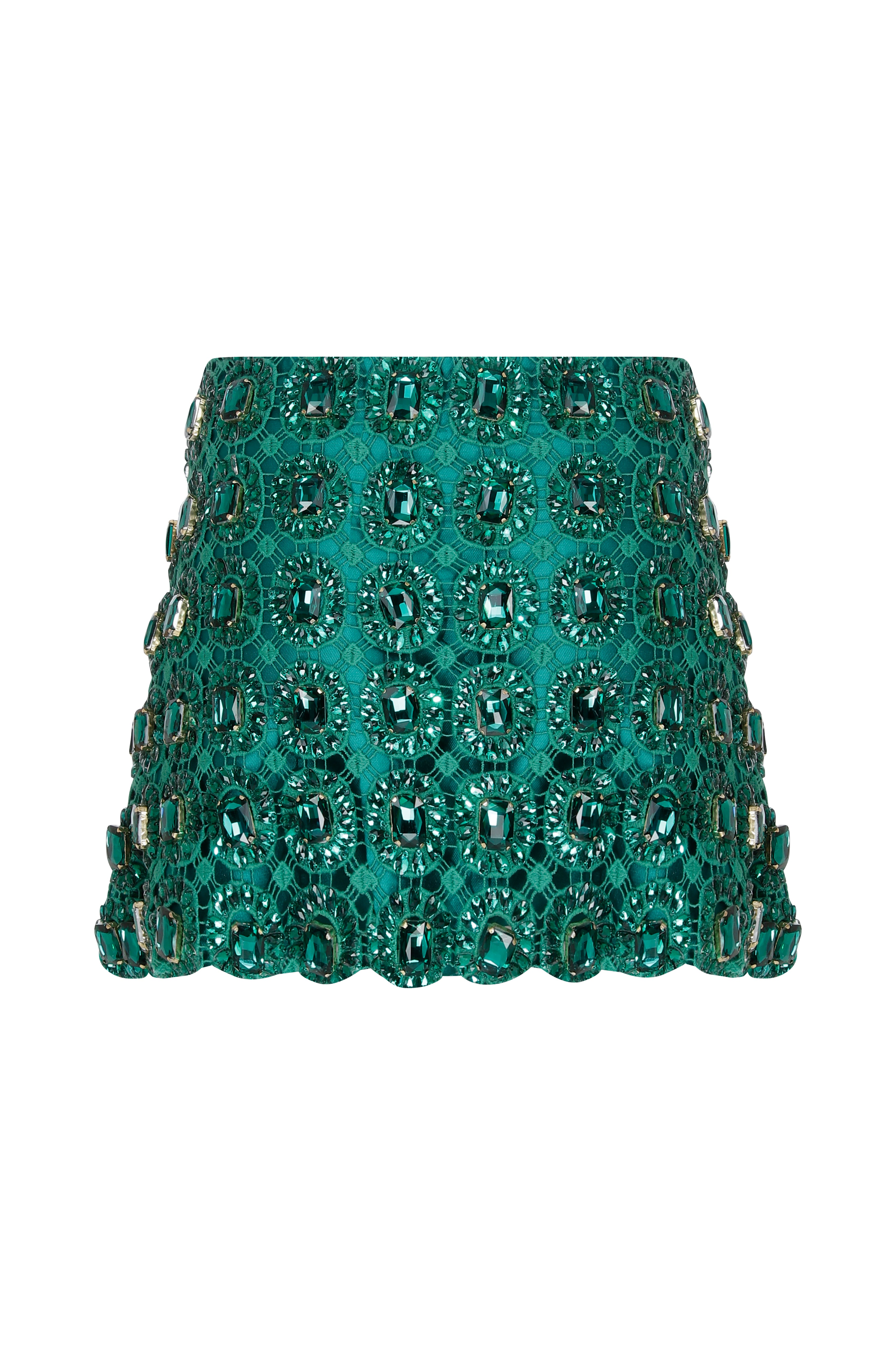 Hand Embroidered Mini Skirt With Crystal-Embellishments