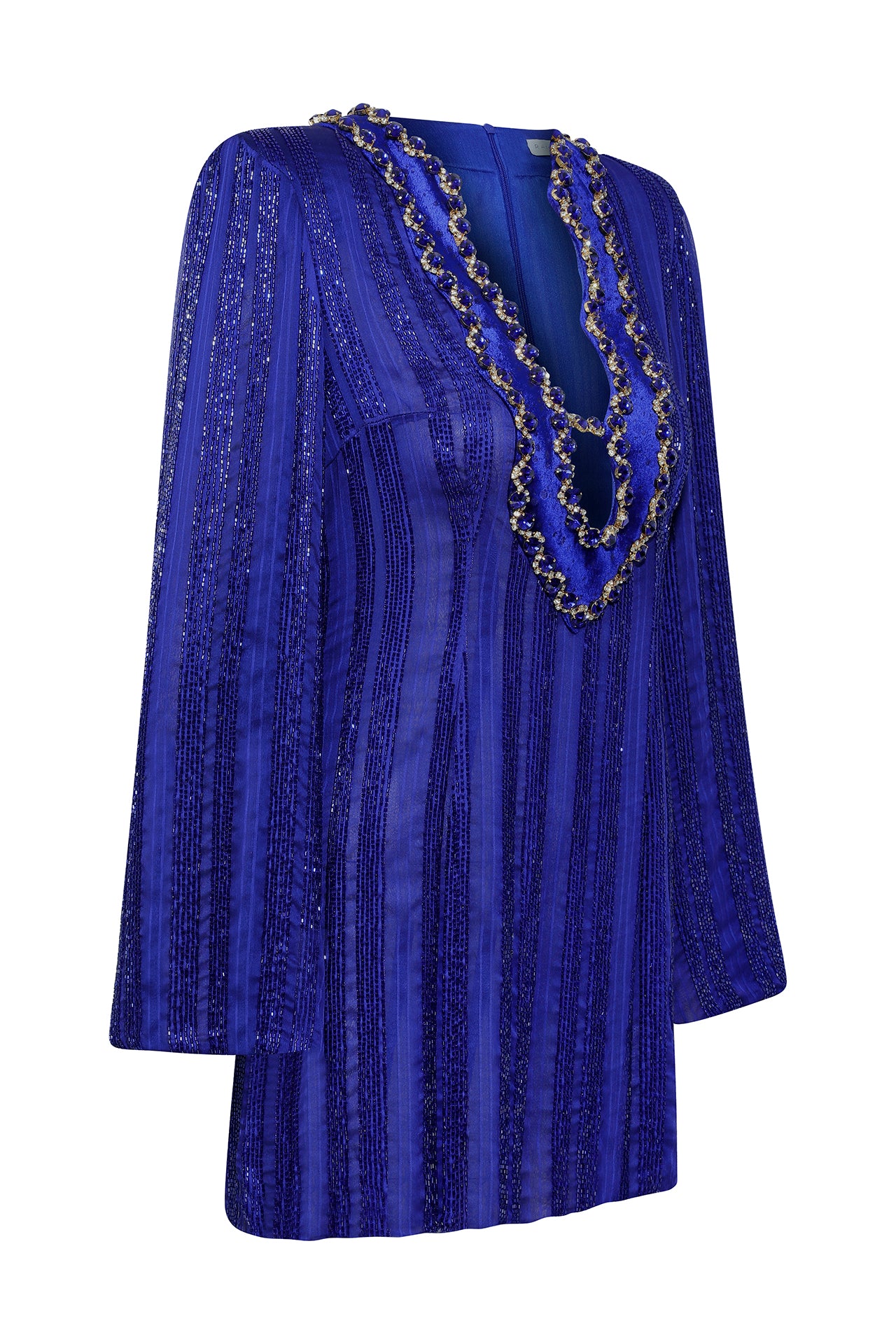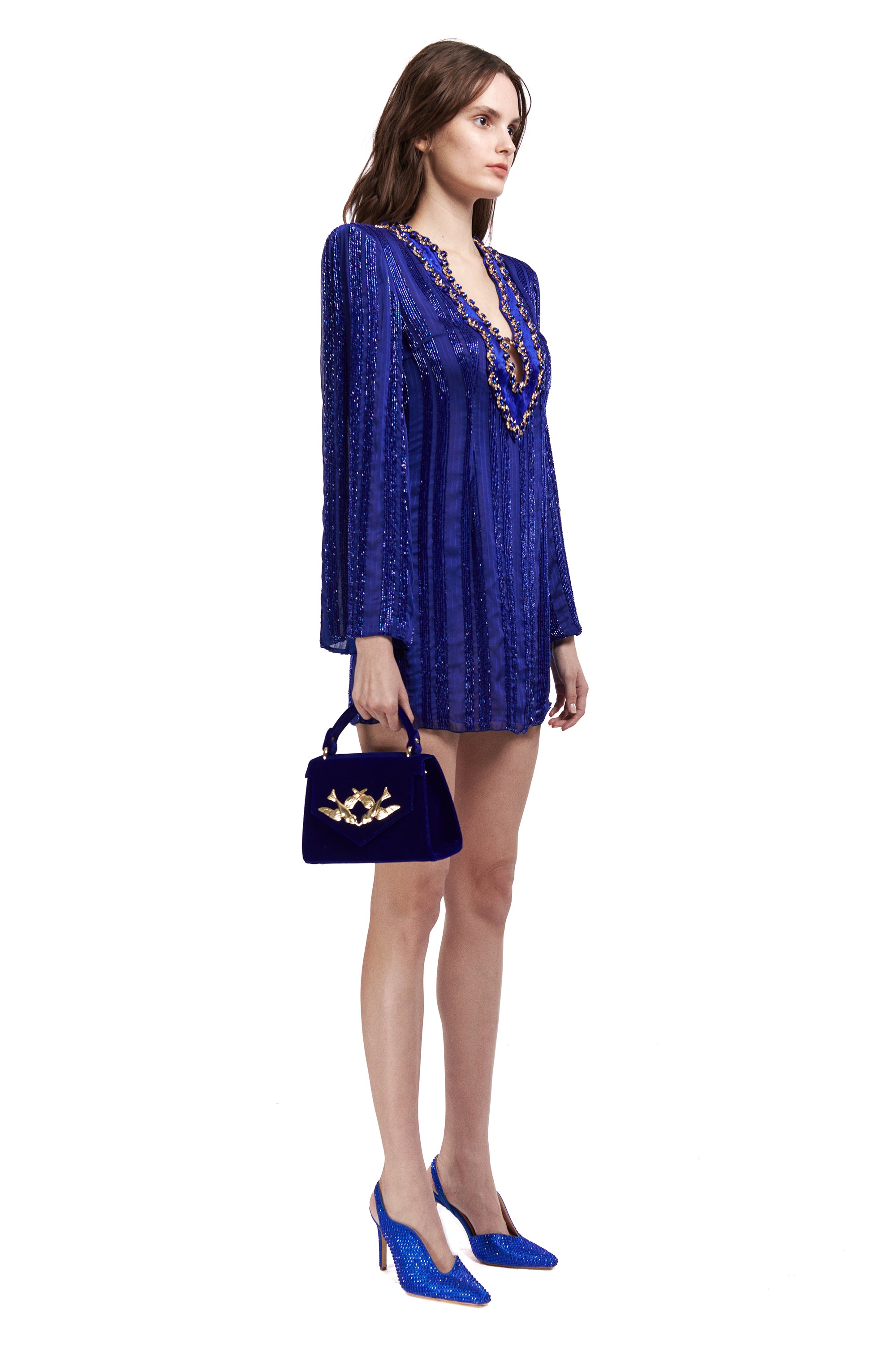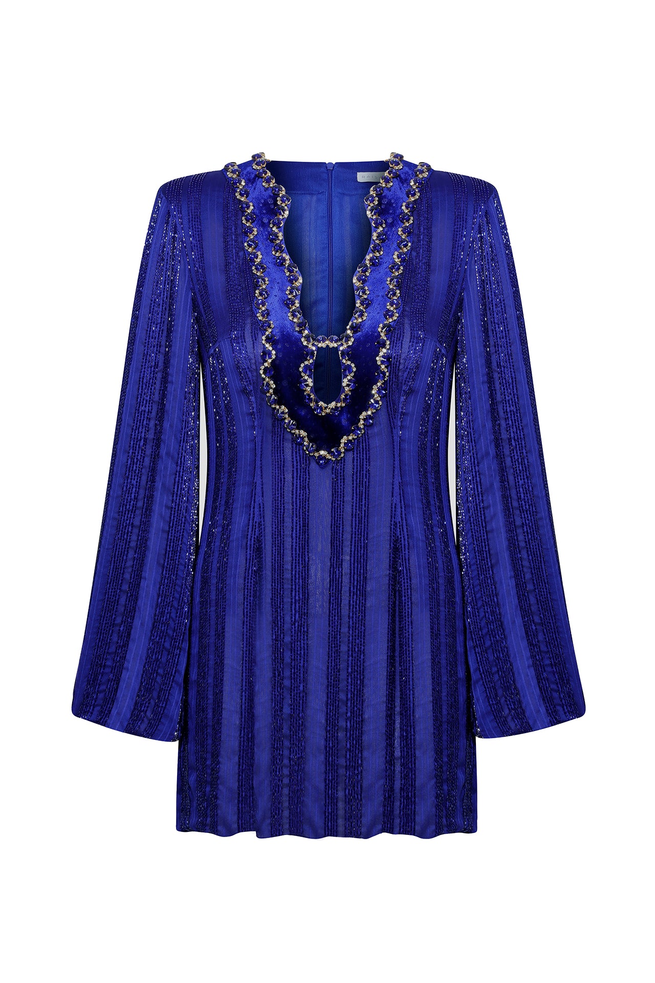 Hand-Made Crystal Embellished Chiffon Mini Dress