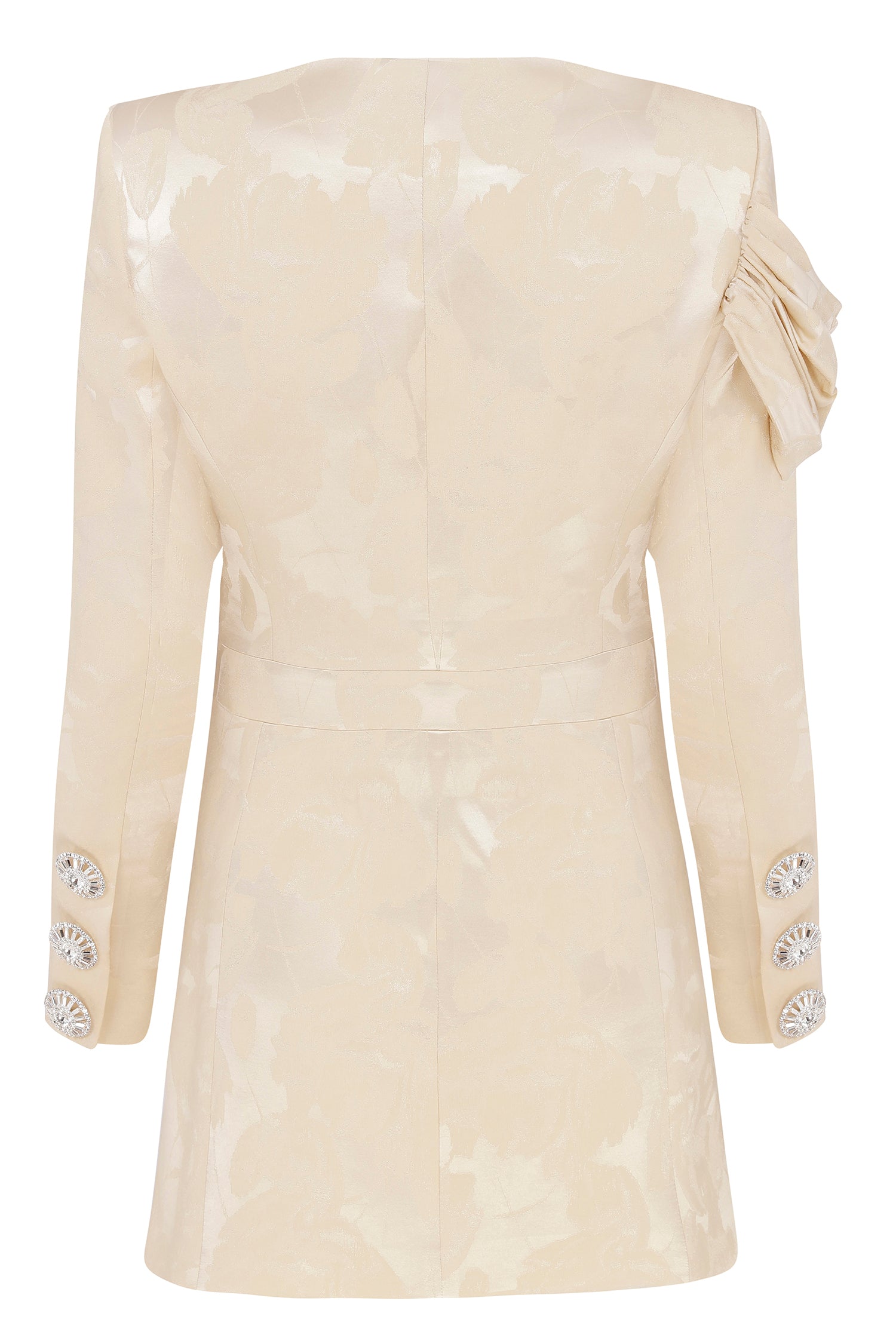 High Waist Jaquard Draped Mini Dress with Crystal Buckle Details