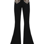 These flare trousers are decorated with embroidery on the front.