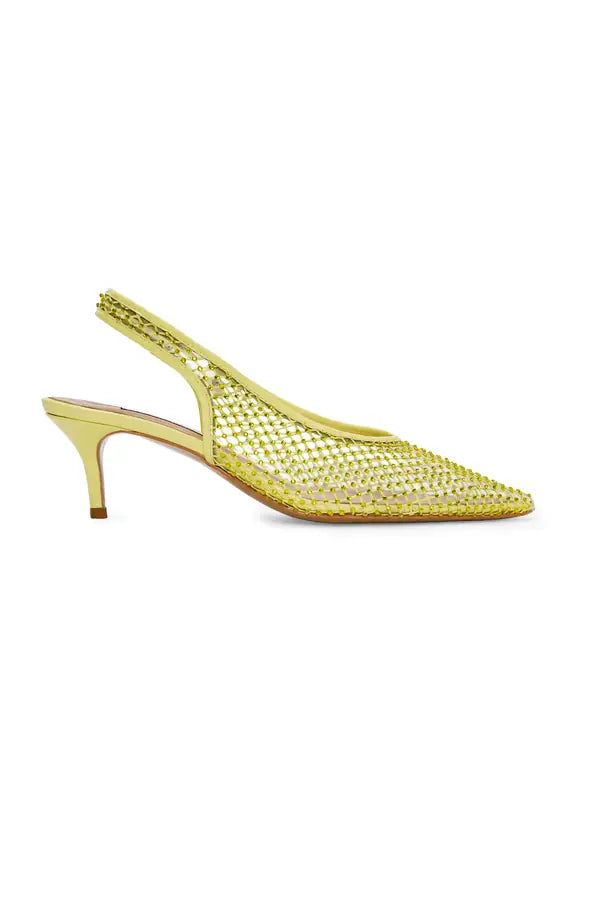 Kitten Heels With Yellow Crystal Fishnet Details