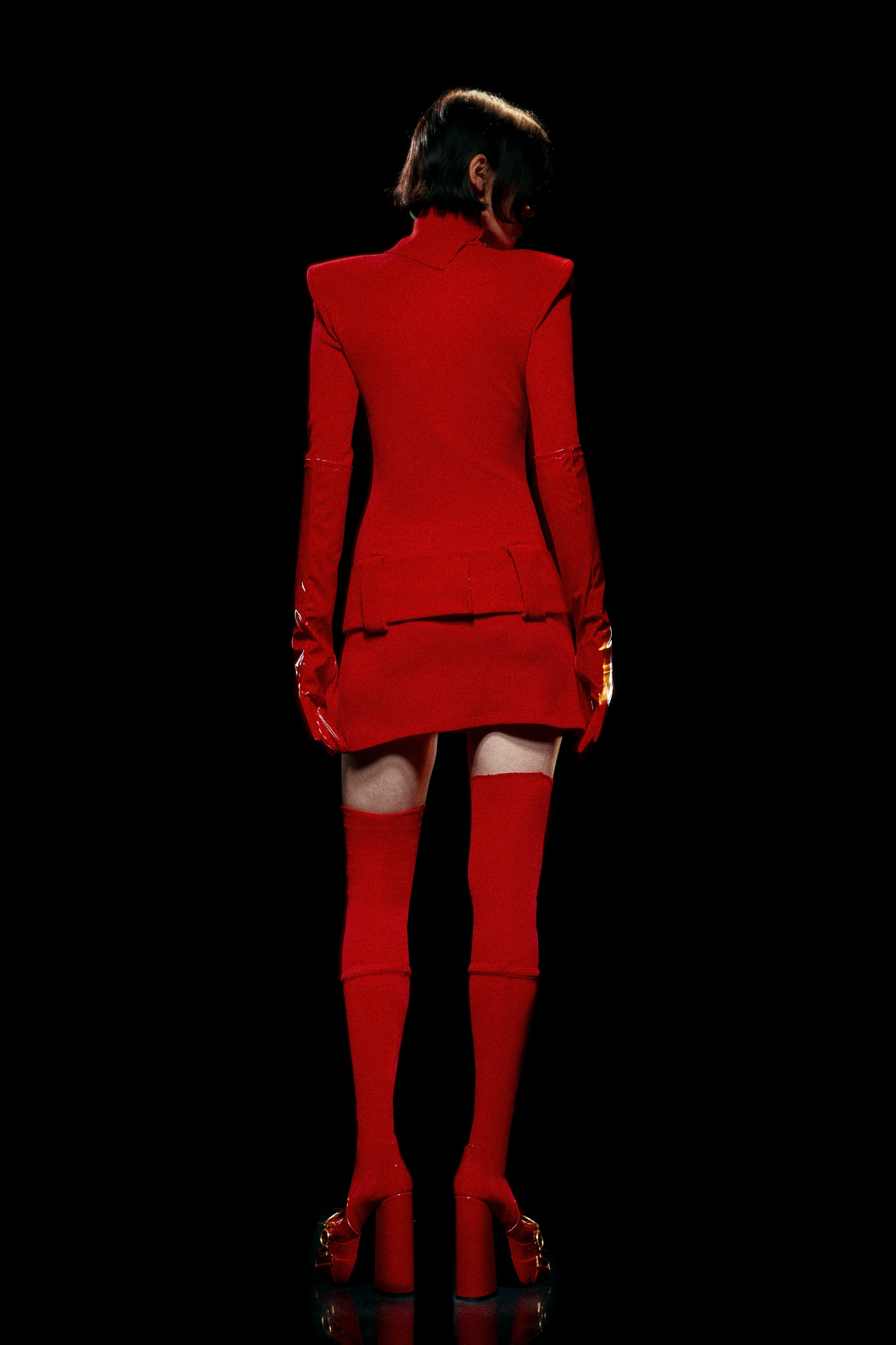 Red mini knit dress but not a regular one.