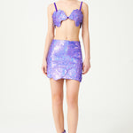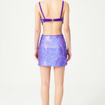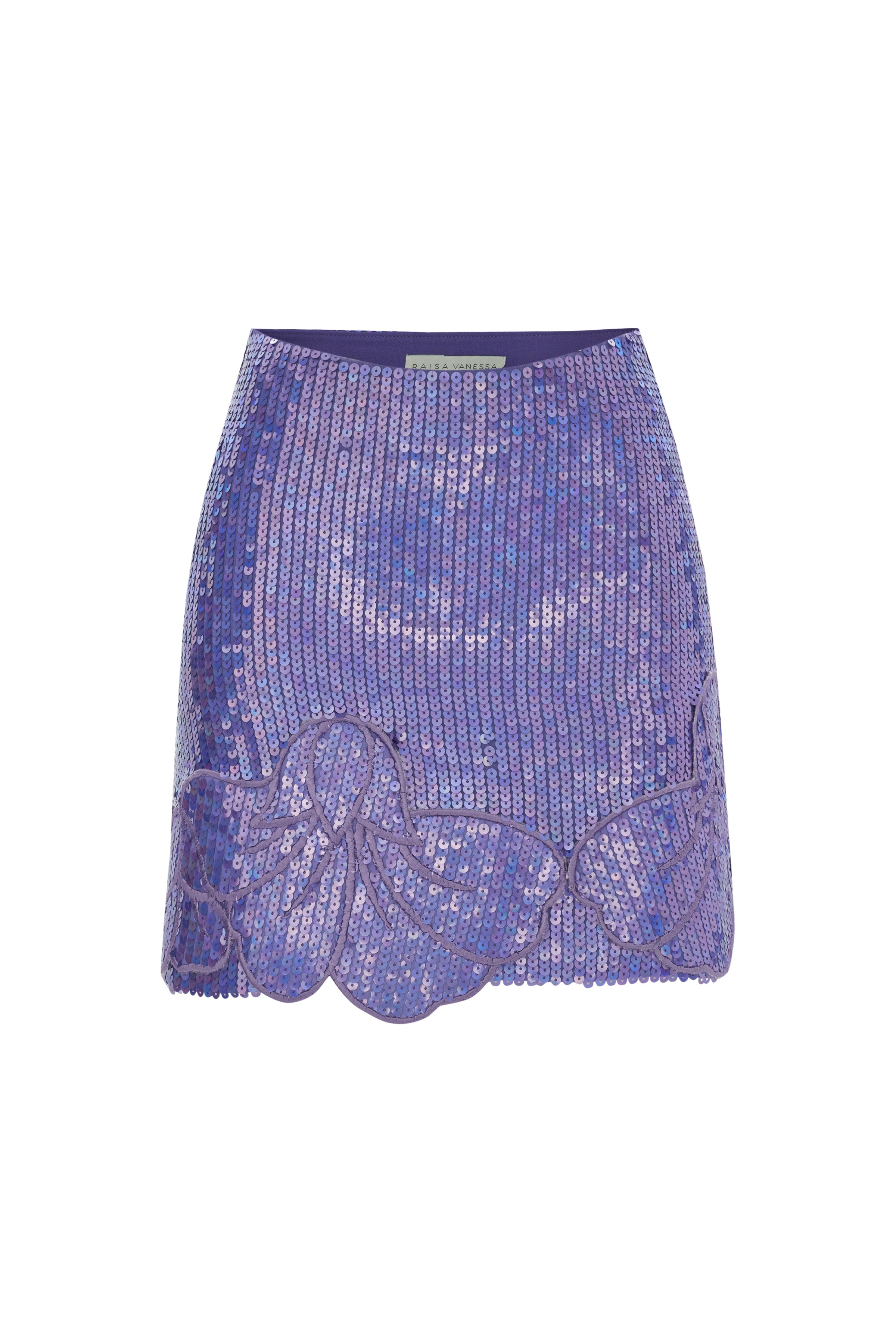 Lilac Sequin Embellished Flower Brouded Mini Skirt